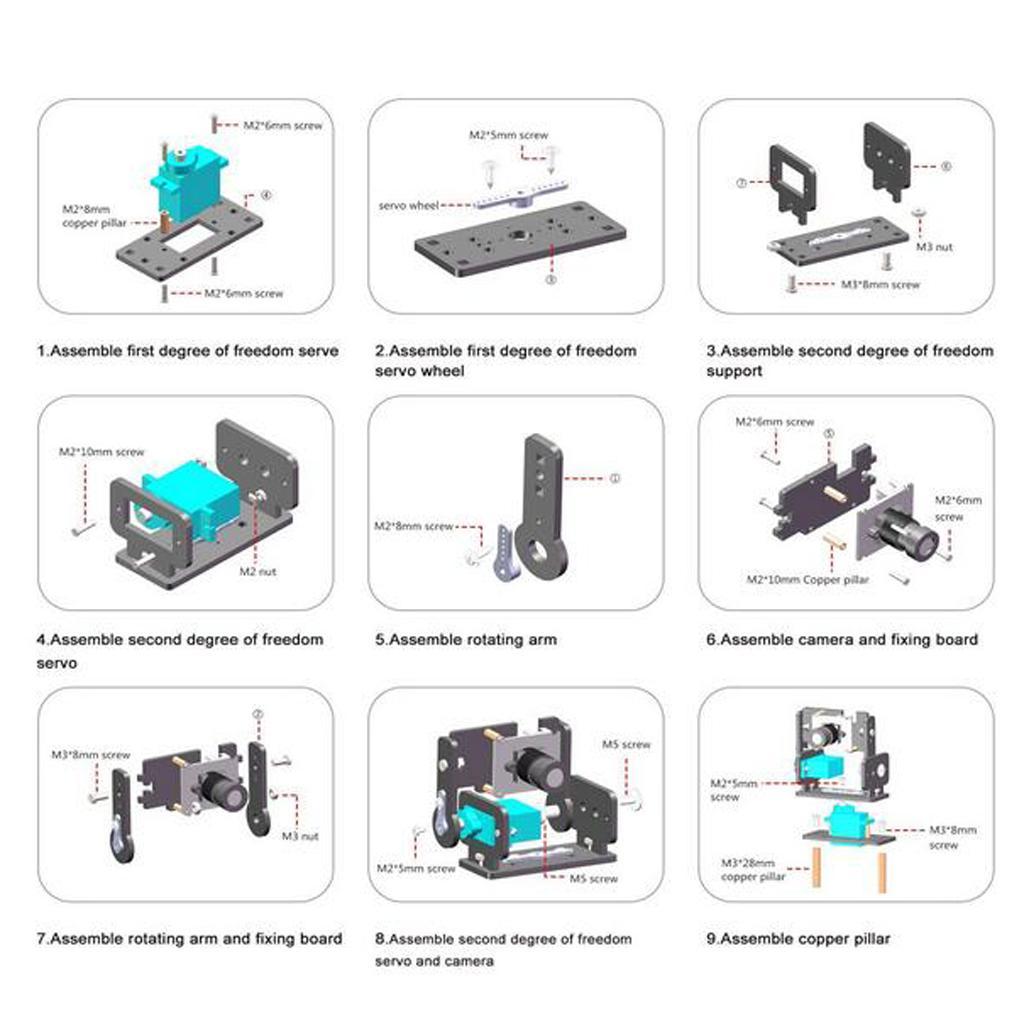 Simple Installation : The camera module pan-tilt kit assembly is very simple with our detailed assembly steps. It adopts USB2.0 interface,biding farewell to the tedious connection methods.