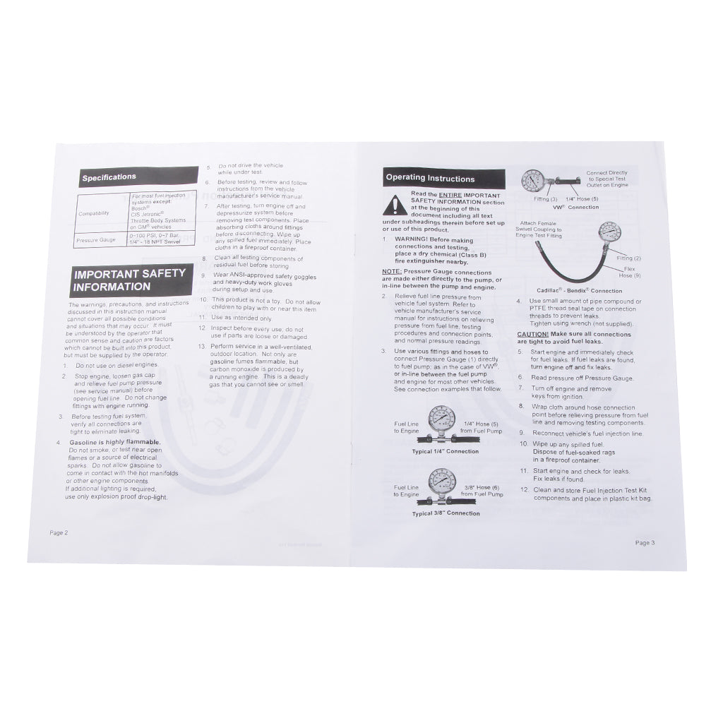 • Test gasoline fuel pump pressure on most fuel injection equipped vehicle.