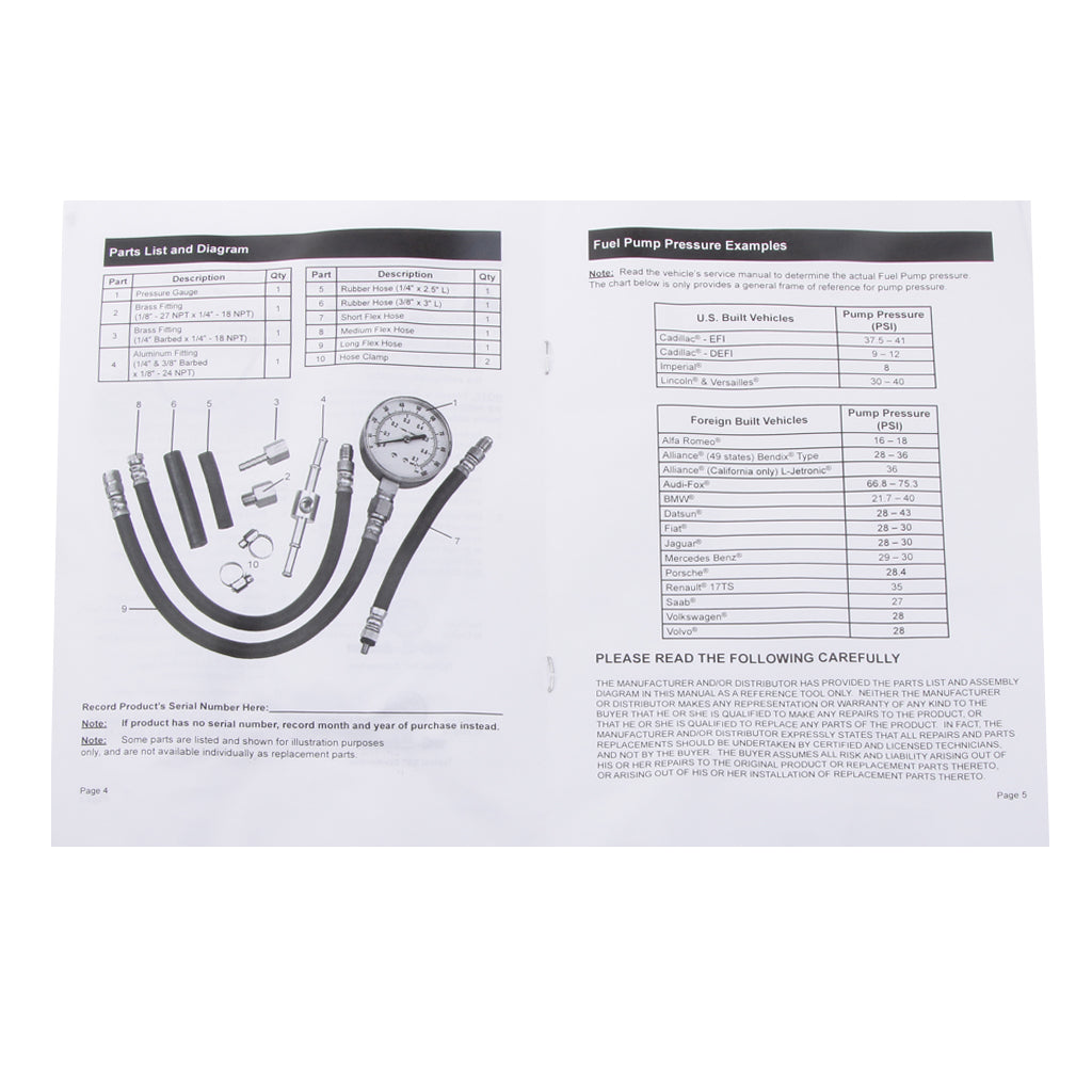 Car Fuel Injection Pump Pressure Gauge Tester Gasoline Tools Kit 0-100 PSI