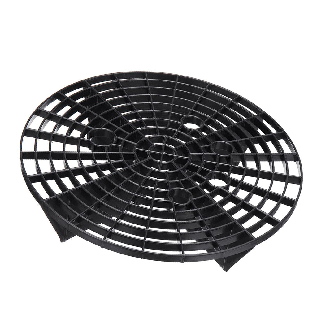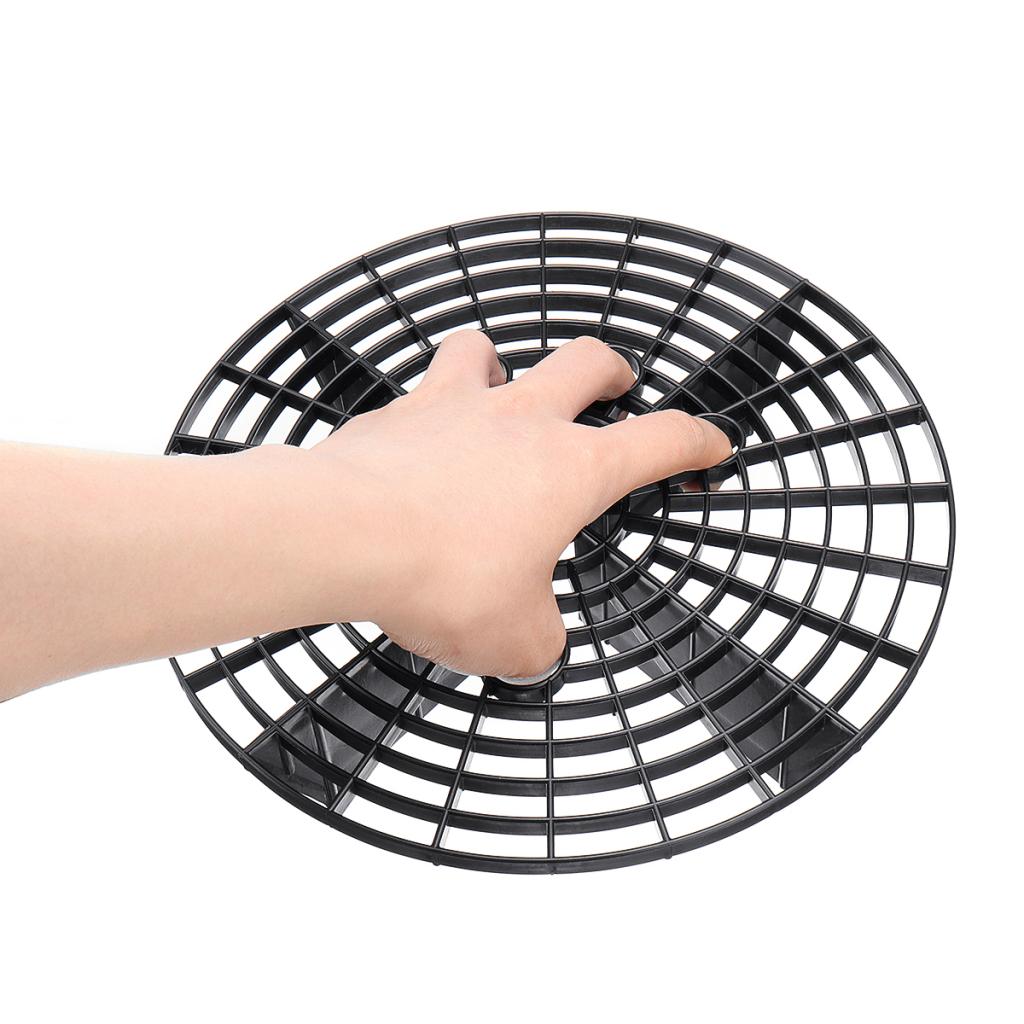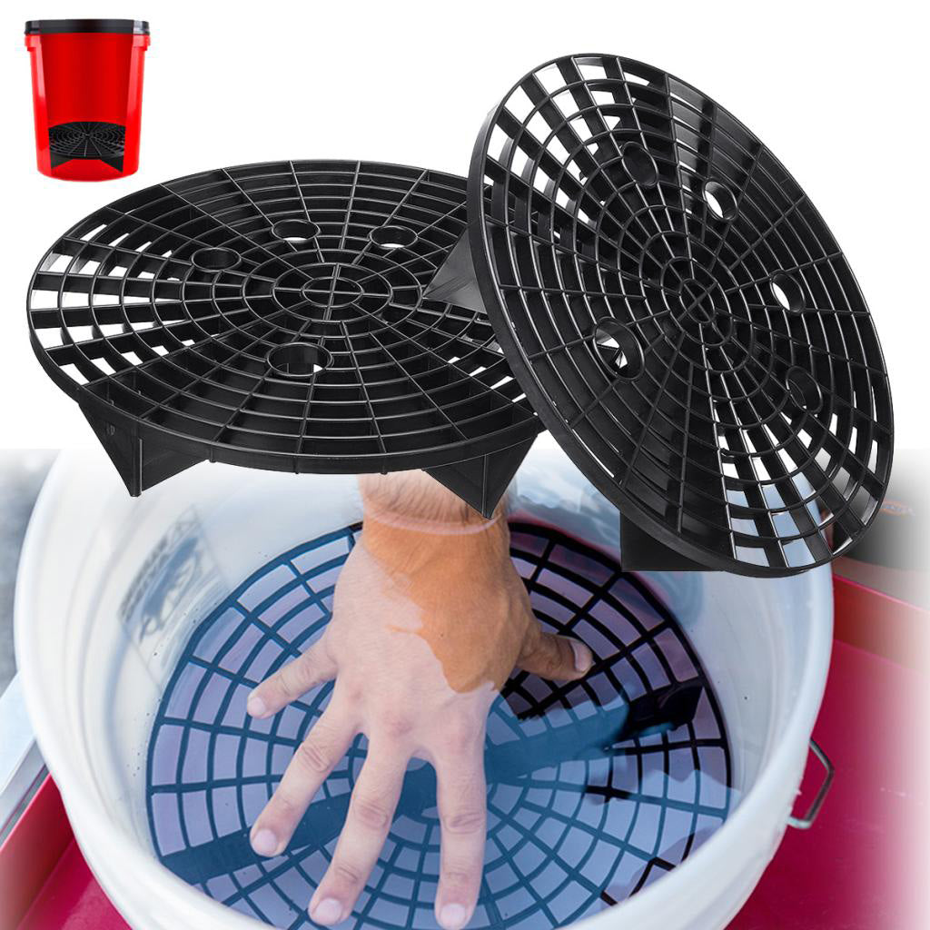The Grit Guards radial grid surface works by scraping dirt out of your mitt or sponge as four quadrants at the base of the Grit Guard calm the wash water and hold the grid at the bottom of the bucket.