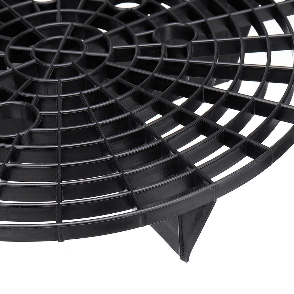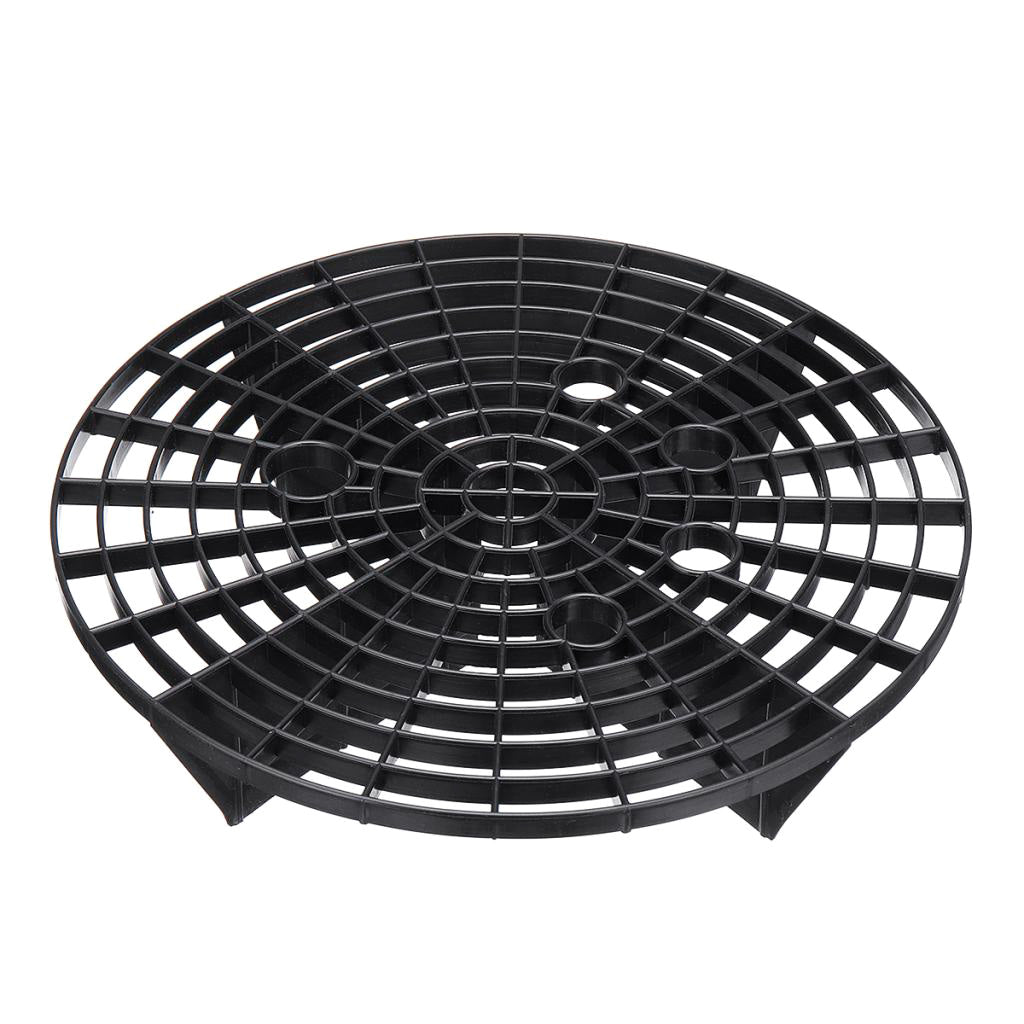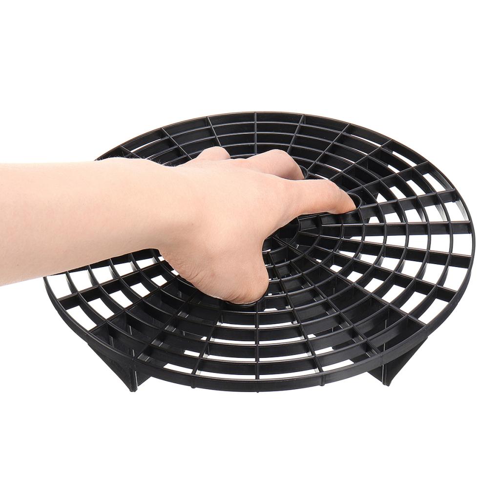 The Grit Guards radial grid surface works by scraping dirt out of your mitt or sponge as four quadrants at the base of the Grit Guard calm the wash water and hold the grid at the bottom of the bucket.