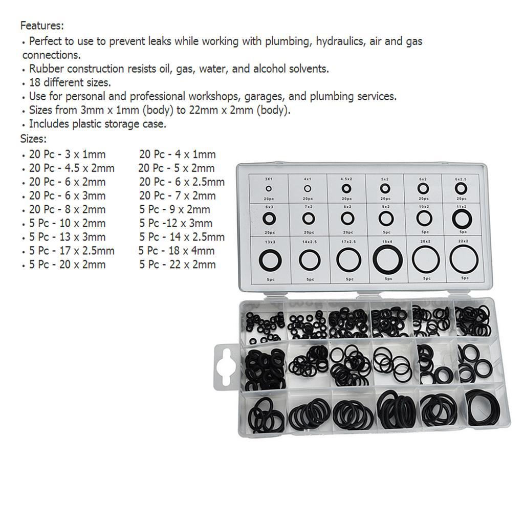 Kit Contains 18 popular O-Ring sizes, assortment O-Rings come in a convenient resealable plastic case