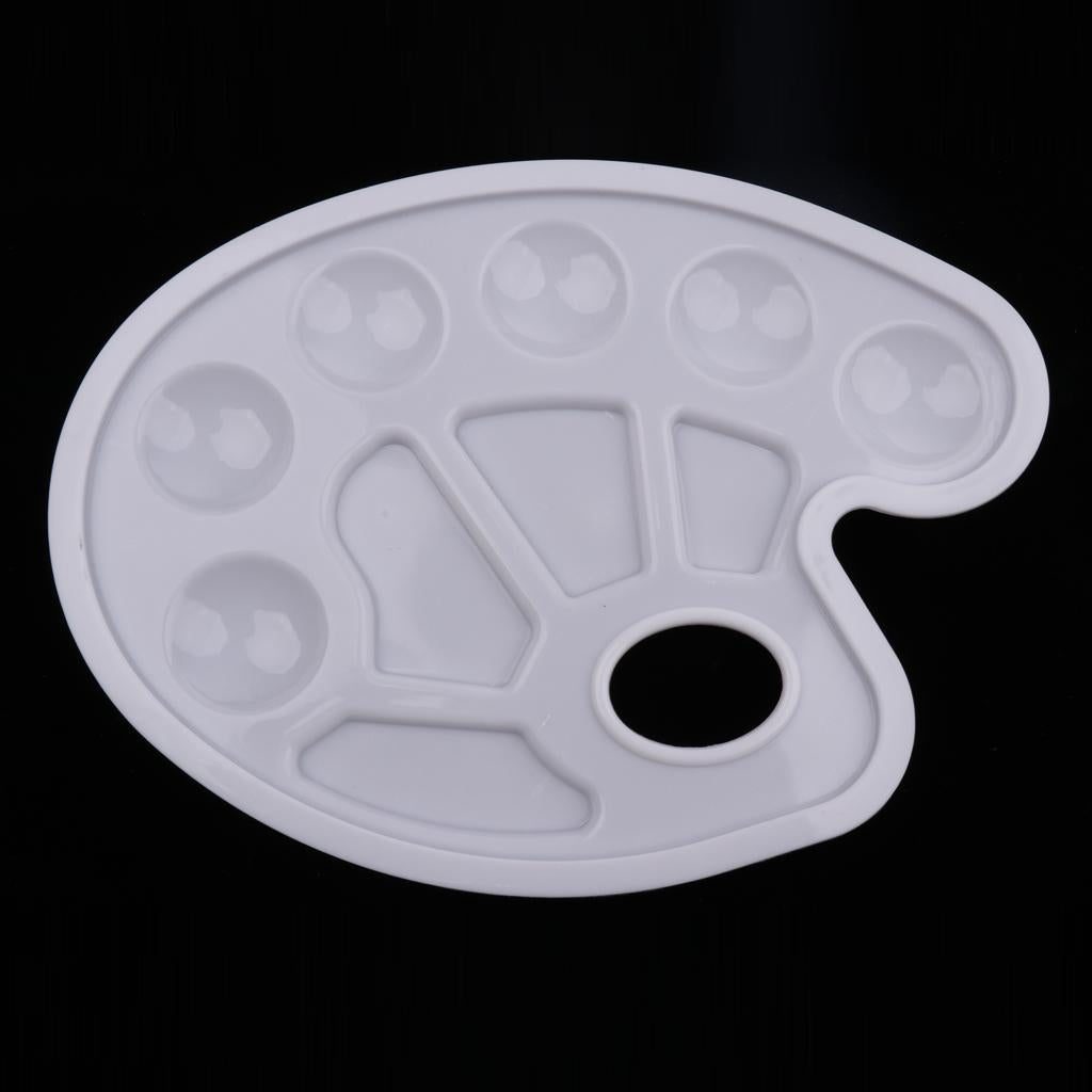 Coming with a palette,made of durable plastic,6 round wells,4 irregular wells and a thumb hole,convenient for mixing watercolor, paint and more.