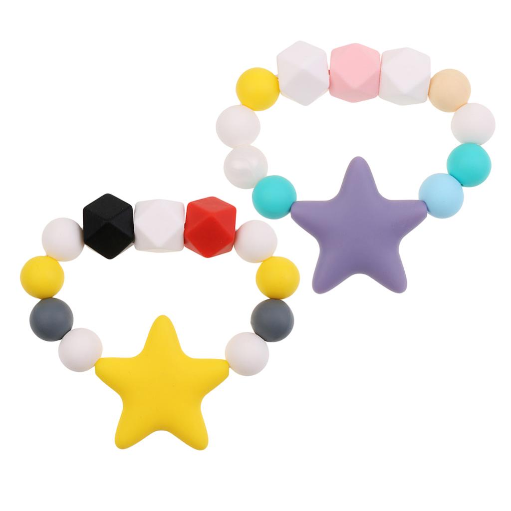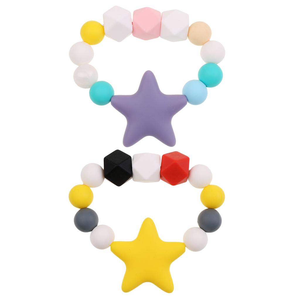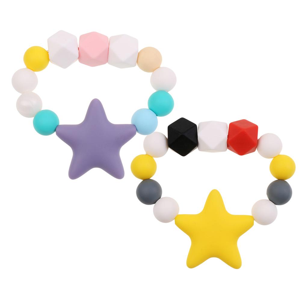 2 Pieces Baby Silicone Teething Chewable Bracelet Toy Teething Beads Chain