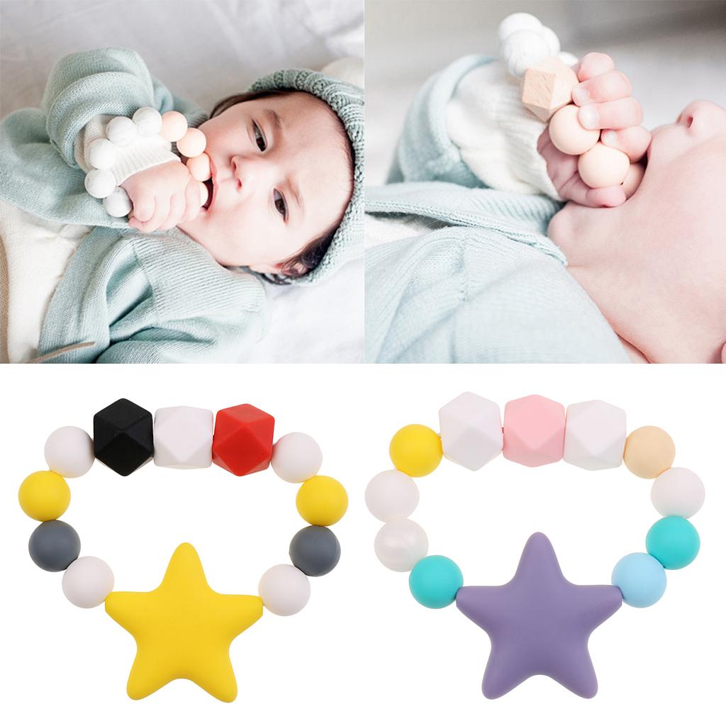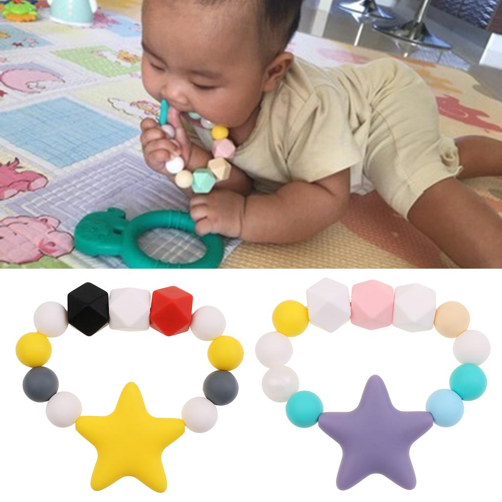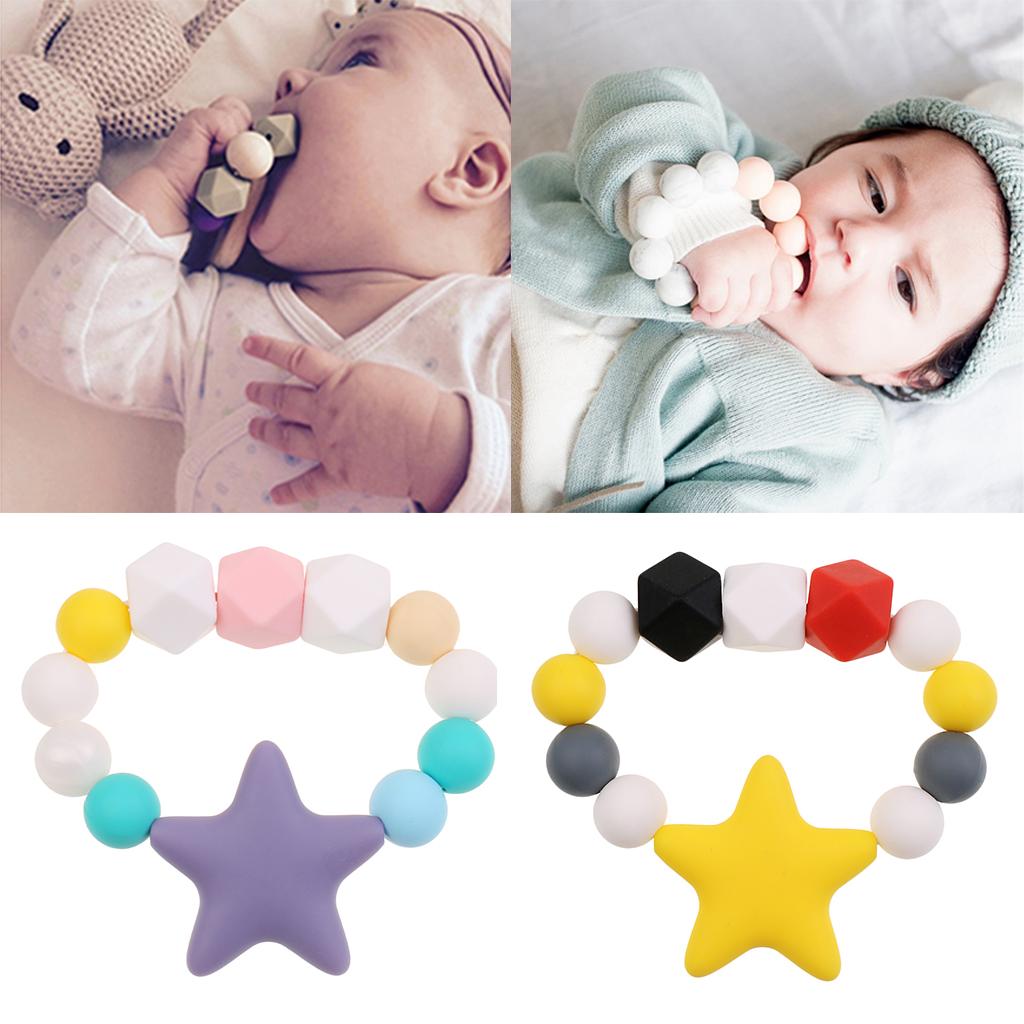 2 Pieces Baby Silicone Teething Chewable Bracelet Toy Teething Beads Chain