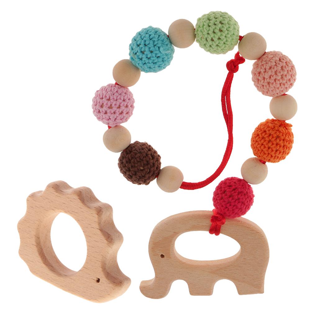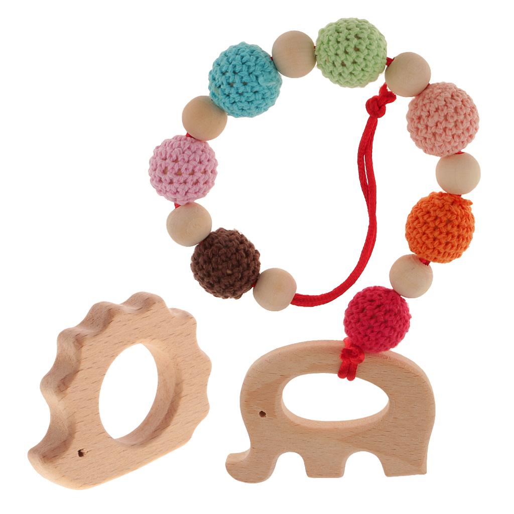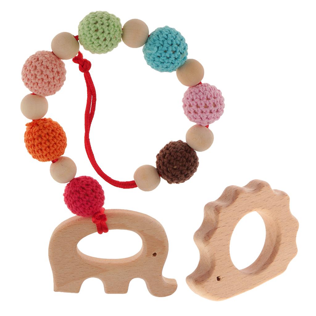 1 Piece baby teether beads elephant bracelet + 1piece hedgehog teether ring