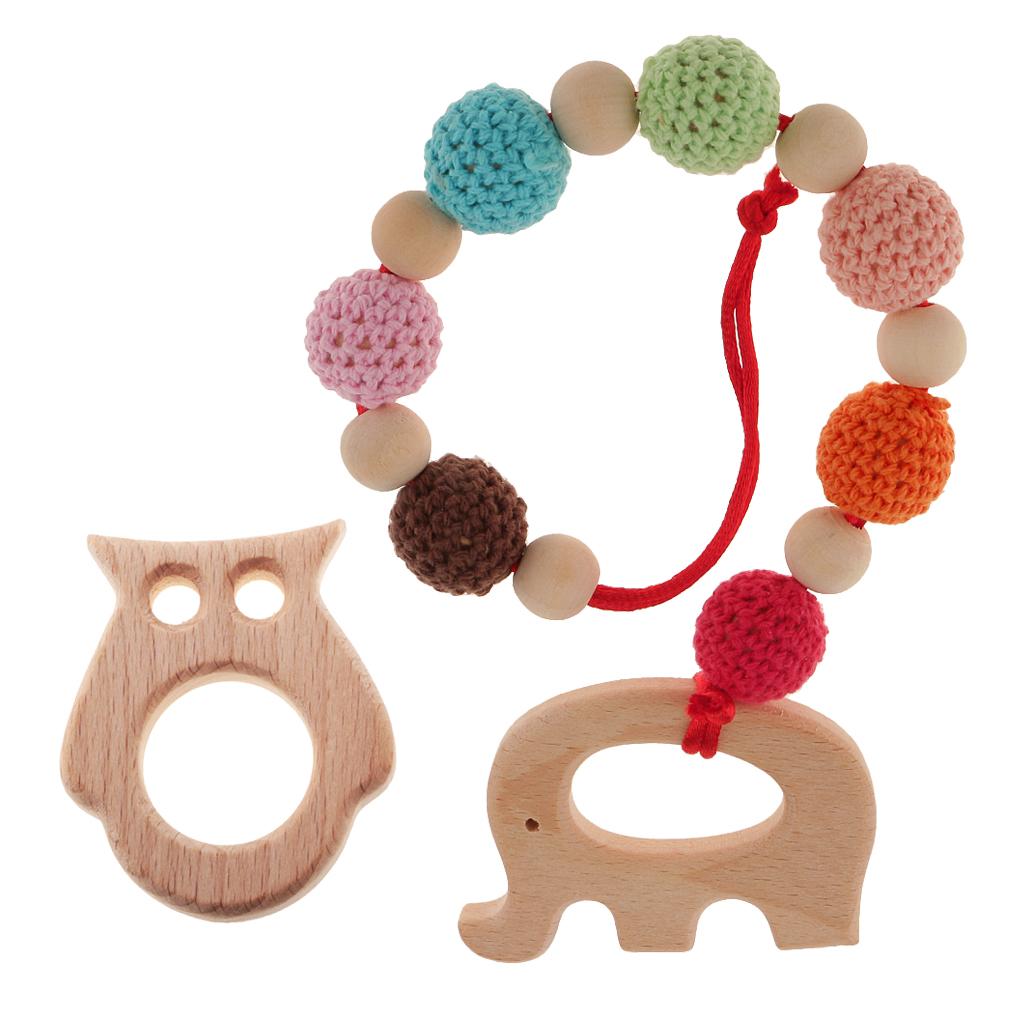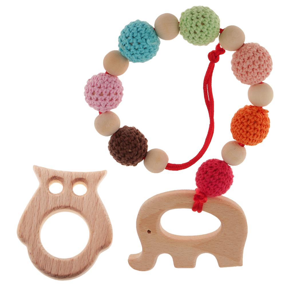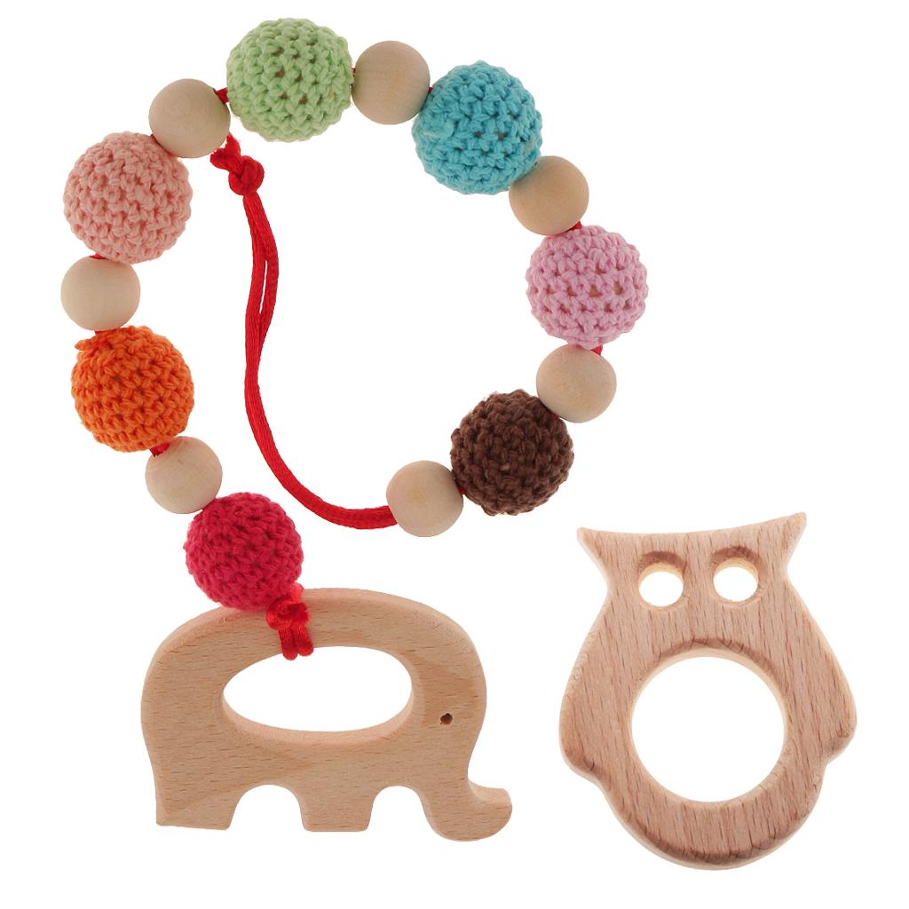 1 Piece baby teether beads elephant bracelet + 1piece owl teether ring