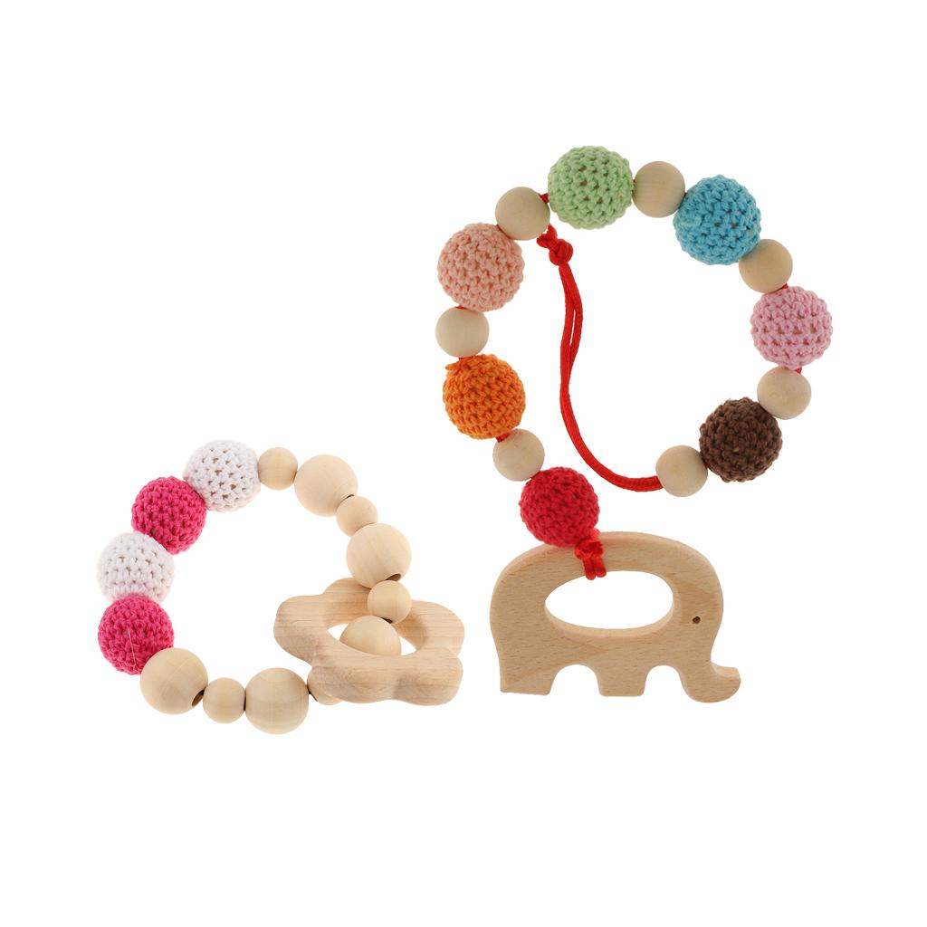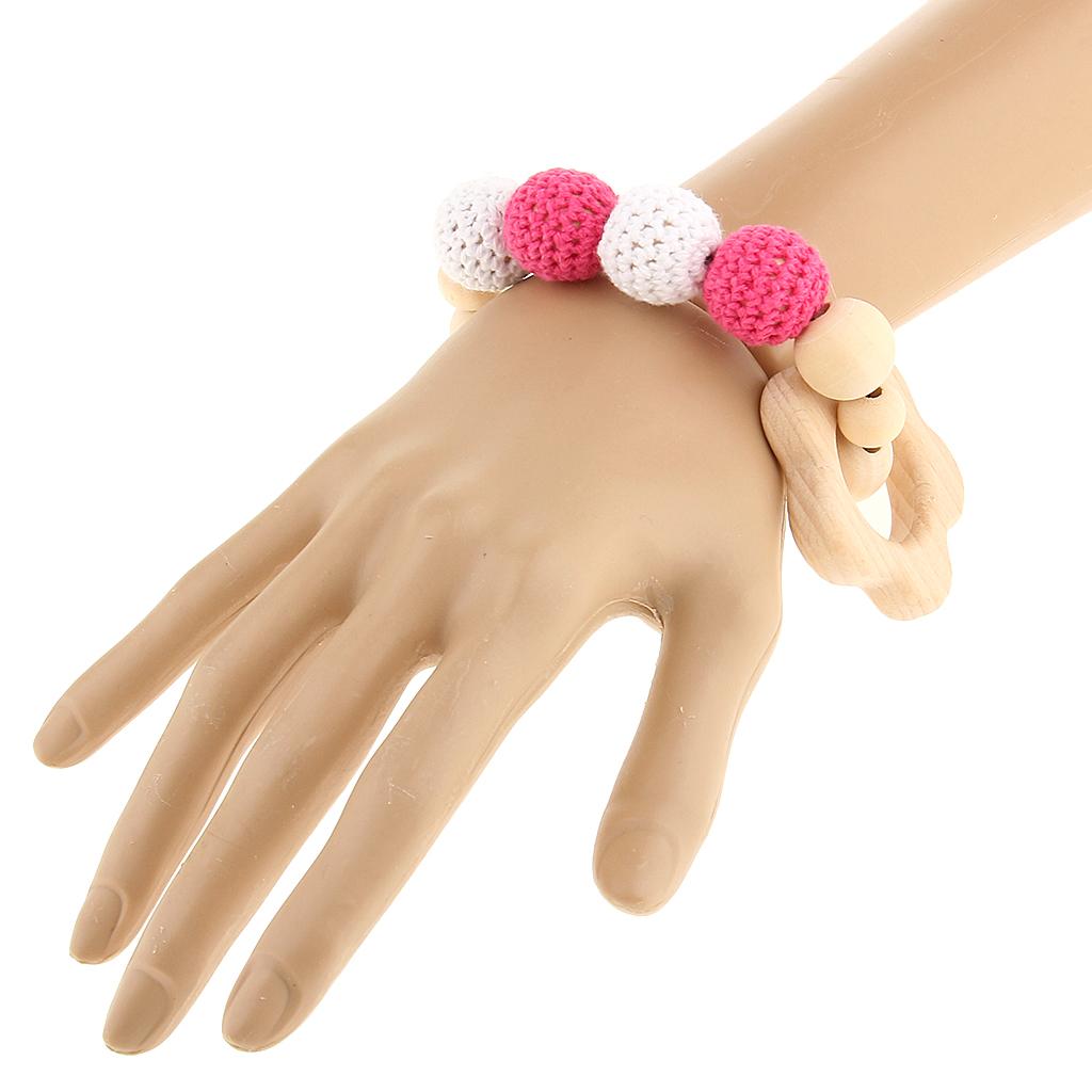 Beautiful crocheted beads have ribbed surface and provide relief for teething infants;