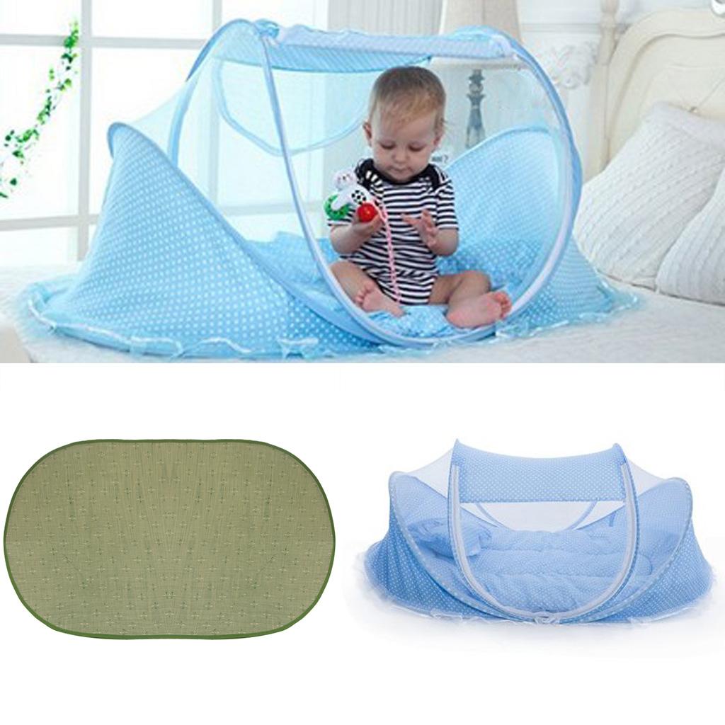 Three piece baby tent bed including mattress, pillow and mosquito. And for the tent, pink color is also available, if you prefer pink, please leave me a message about this.