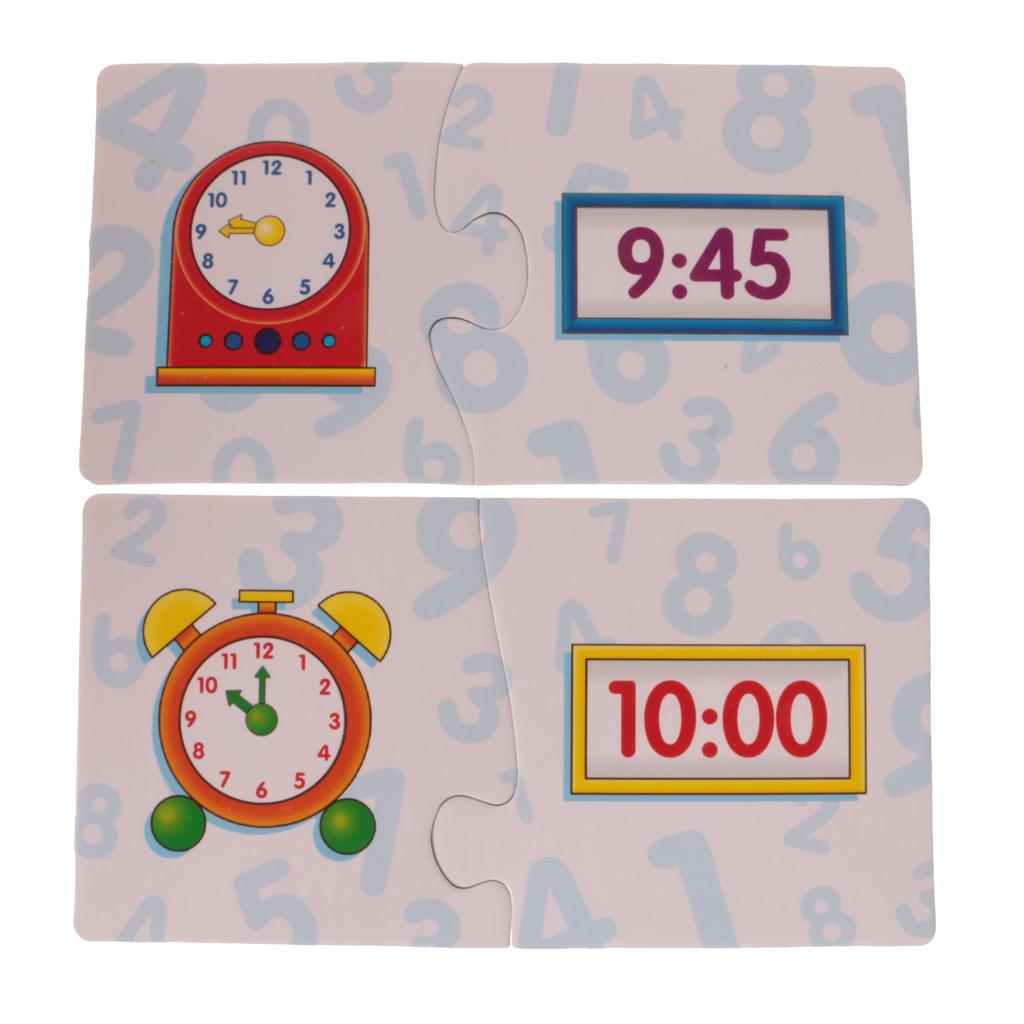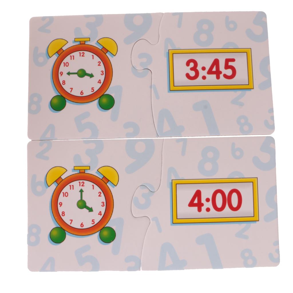 Puzzles contain 60 pieces,30 sets cards.From 0 to 12 o'clock, 3 or 4 pairs of each time.