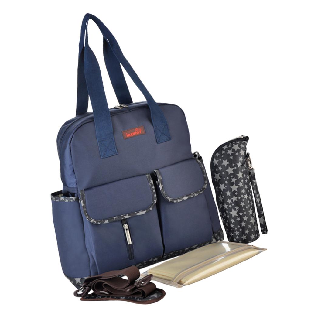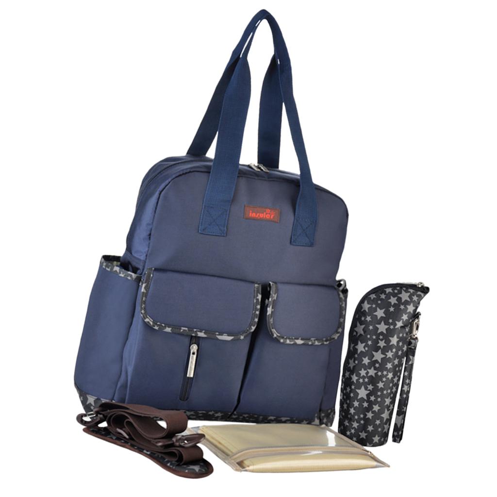 6 pcs Mummy Bags Baby Nappy Diaper Changing Bag Bottle Holder Handbag Blue
