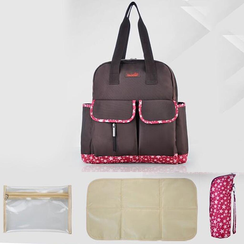 6 pcs Mummy Bags Baby Nappy Diaper Changing Bag Bottle Holder Handbag Brown