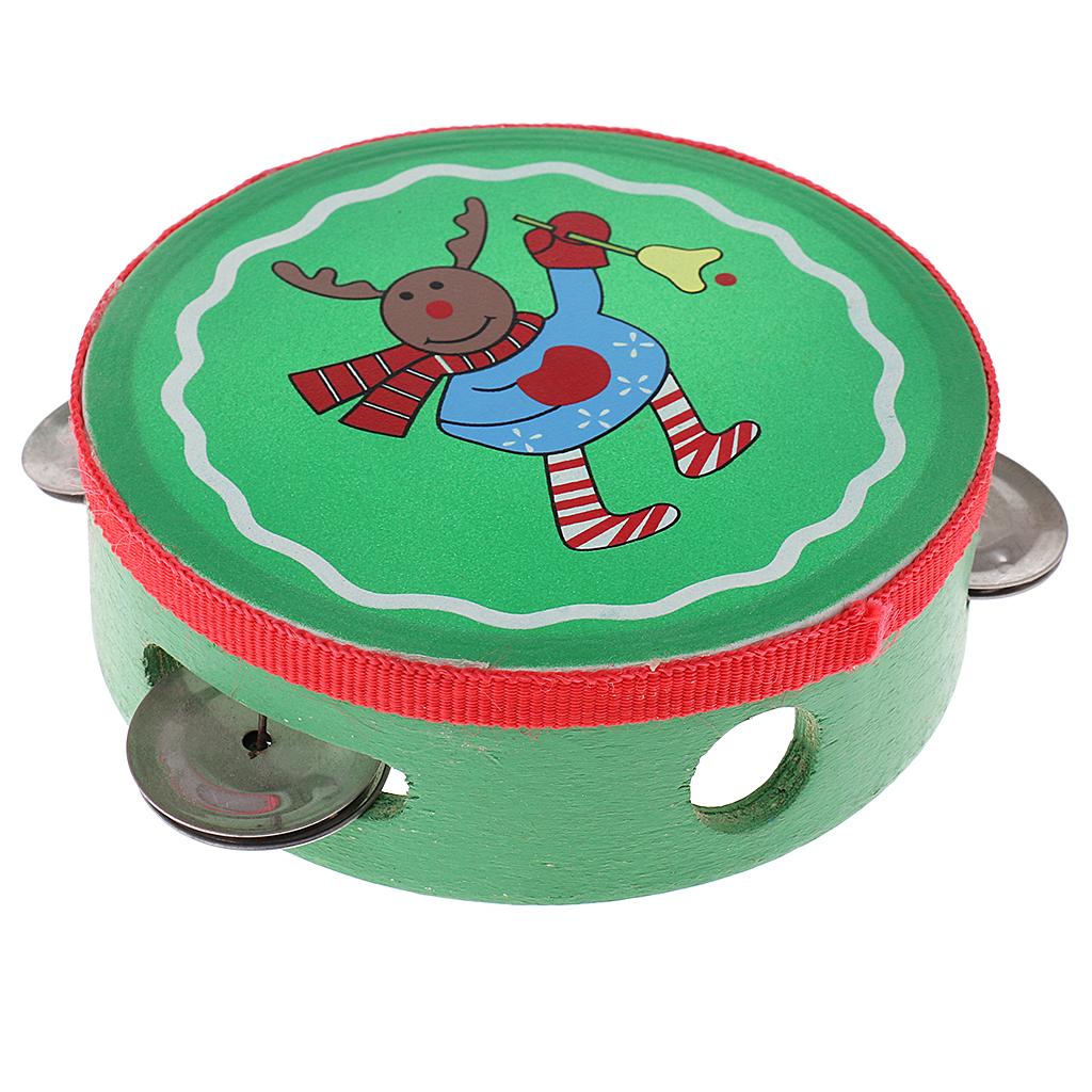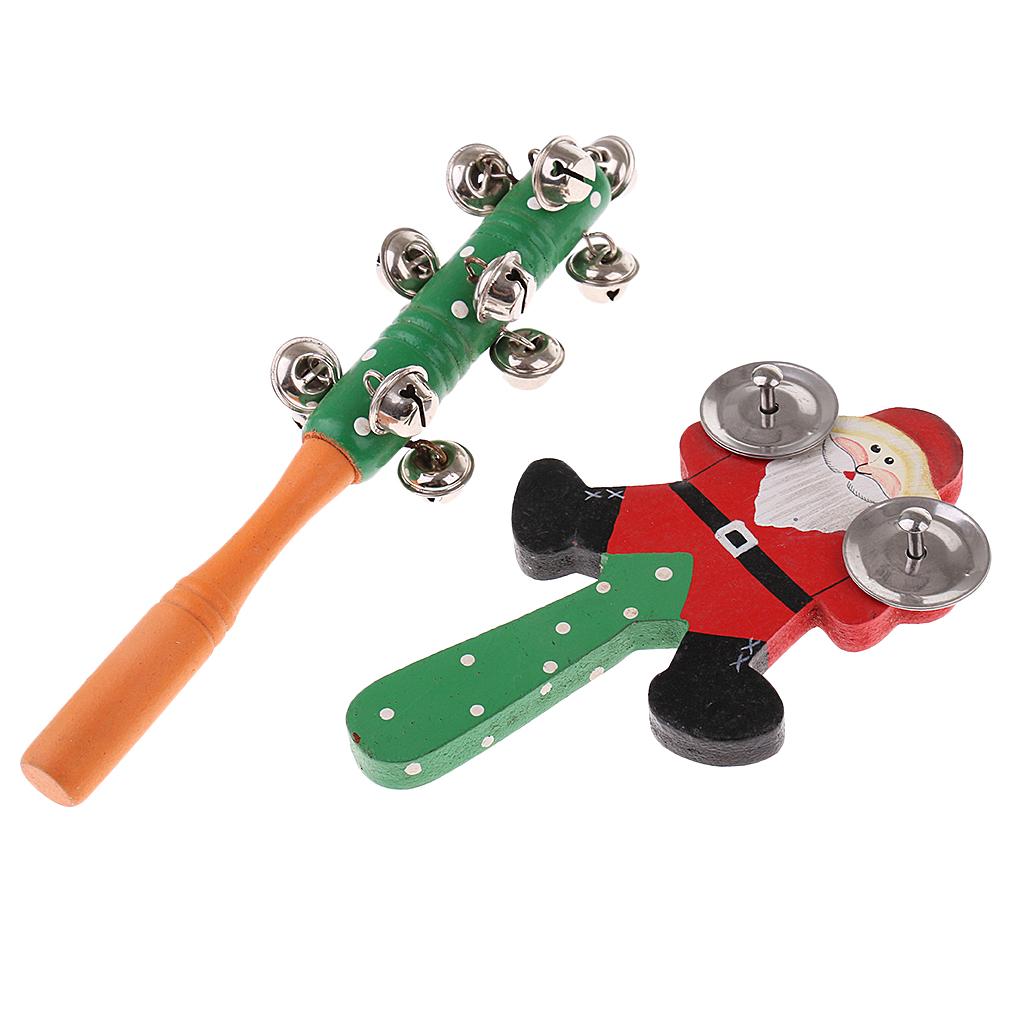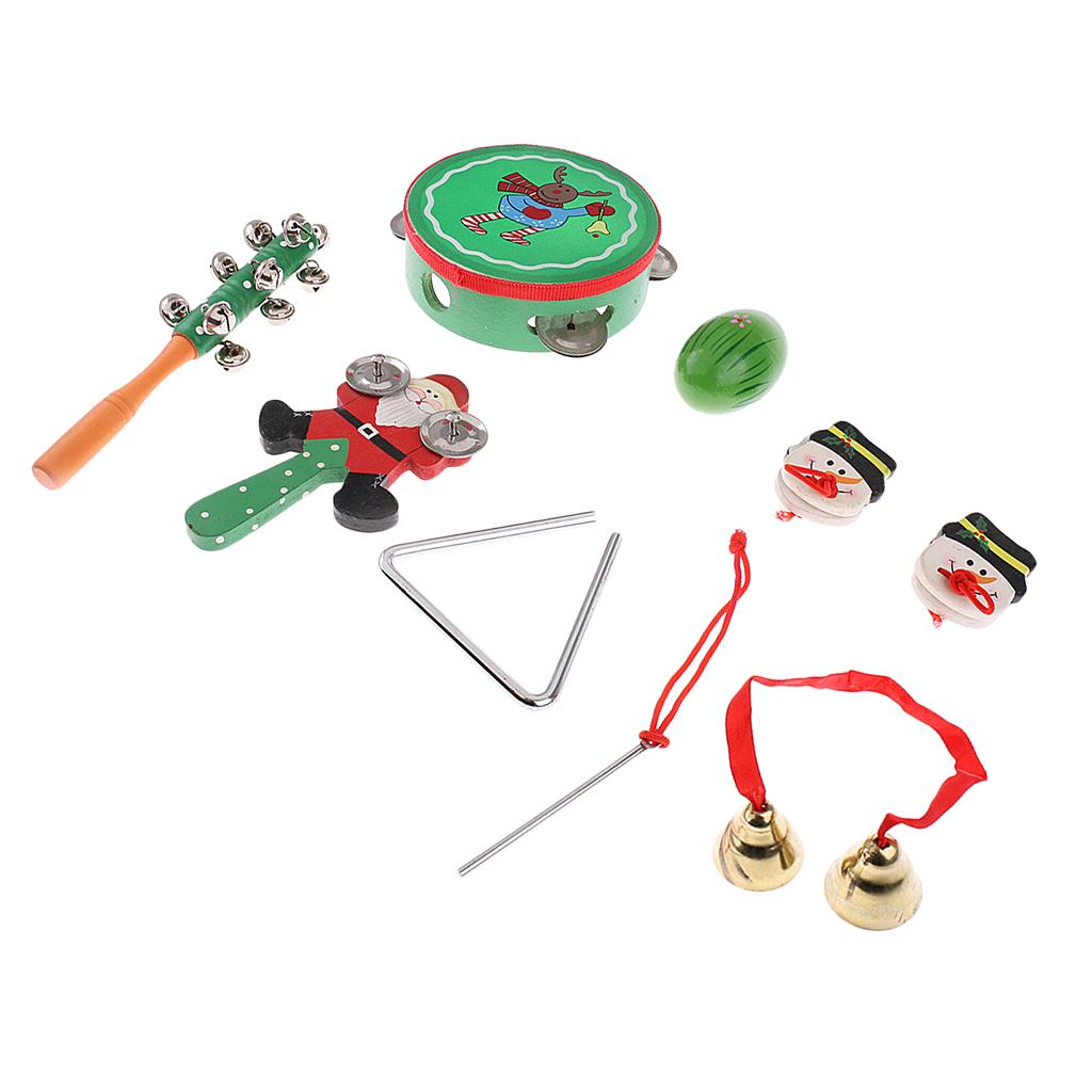 A complete rhythm instrument set in one wooden box, cartoon tambourine sand egg maracas hand bells castanets music educational toys