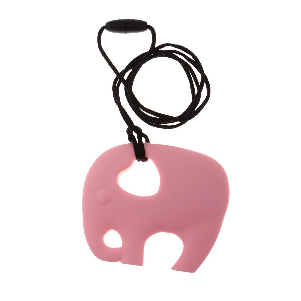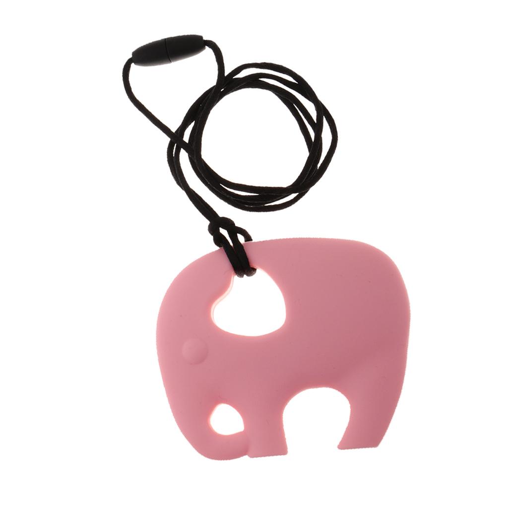 Baby Elephant Silicone Nursing Toy Teether Teething Necklace Pendant Pink