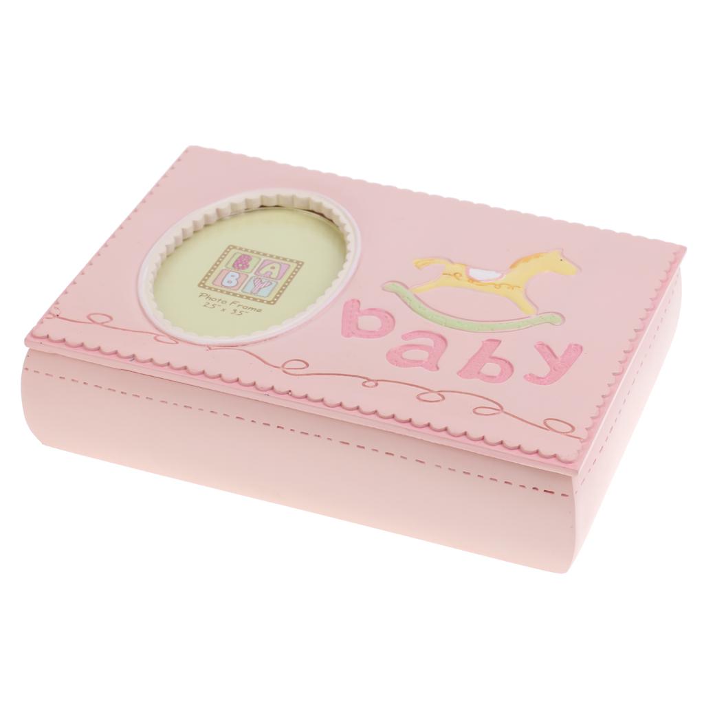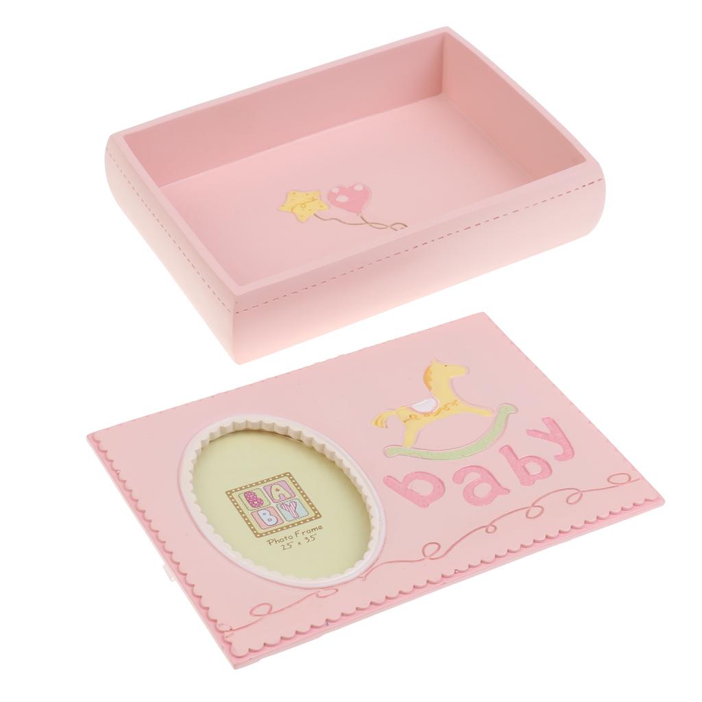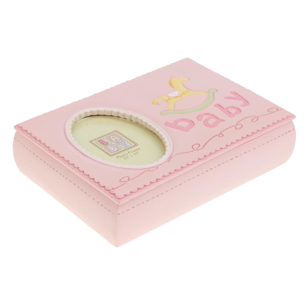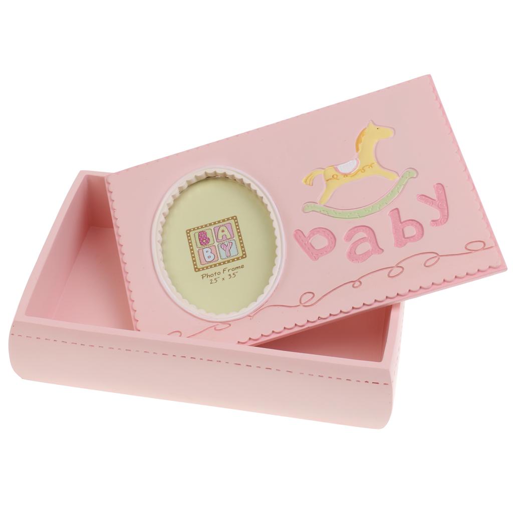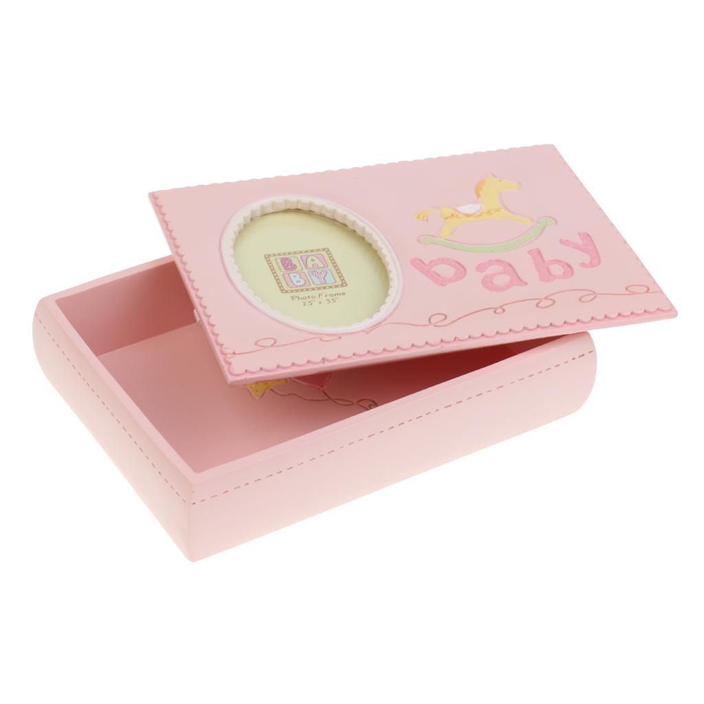 Baby First Curl Trinket Box Hobbyhorse Photo Frame Keepsake Baby Shower pink