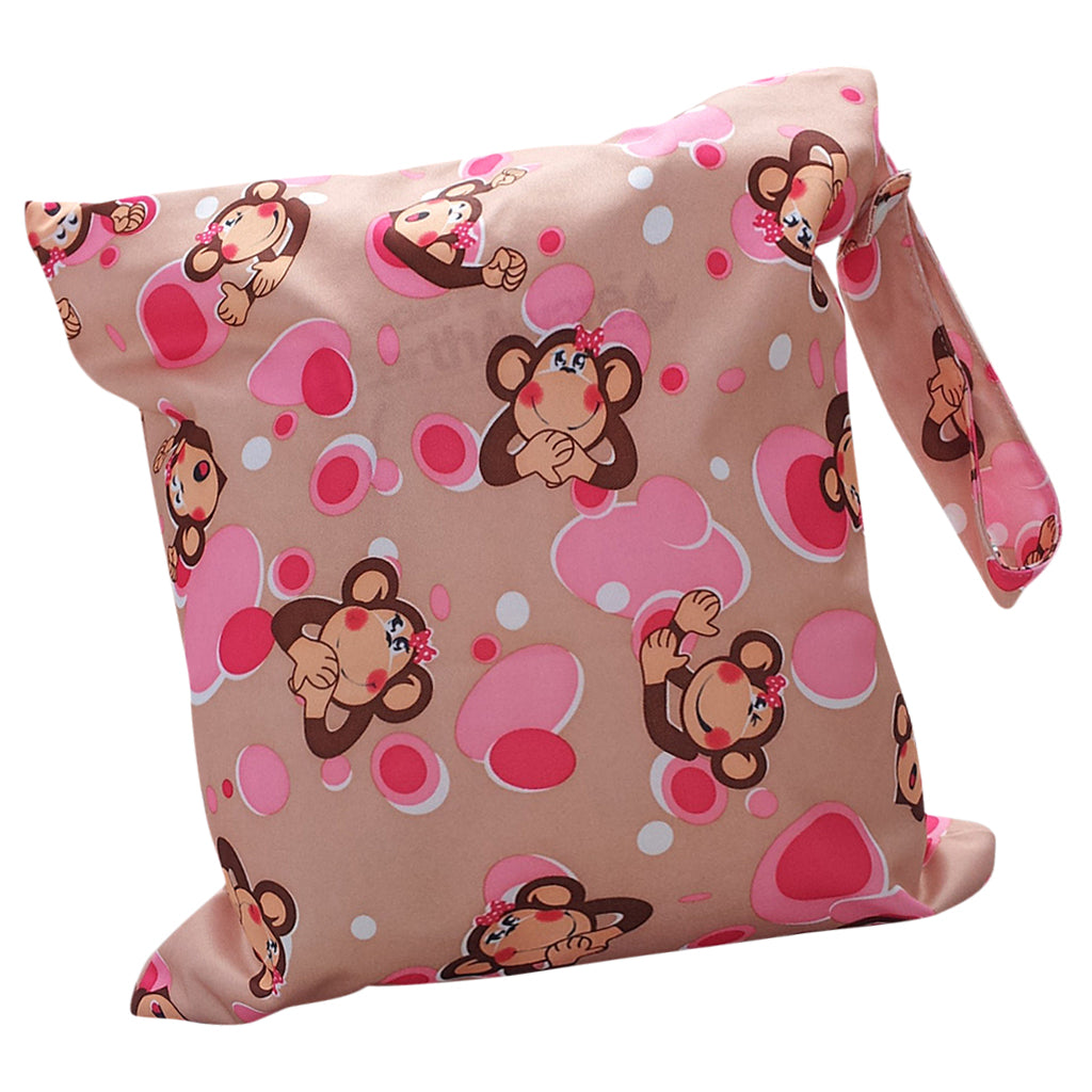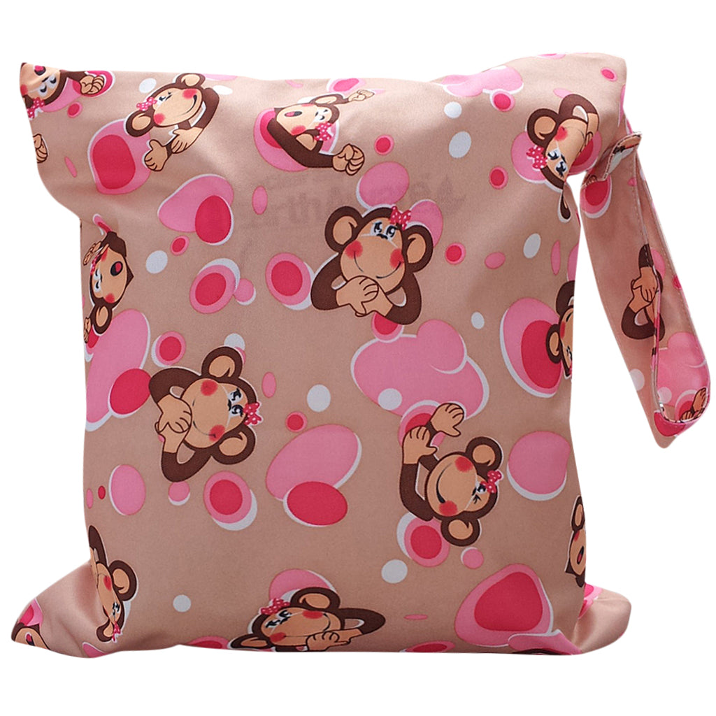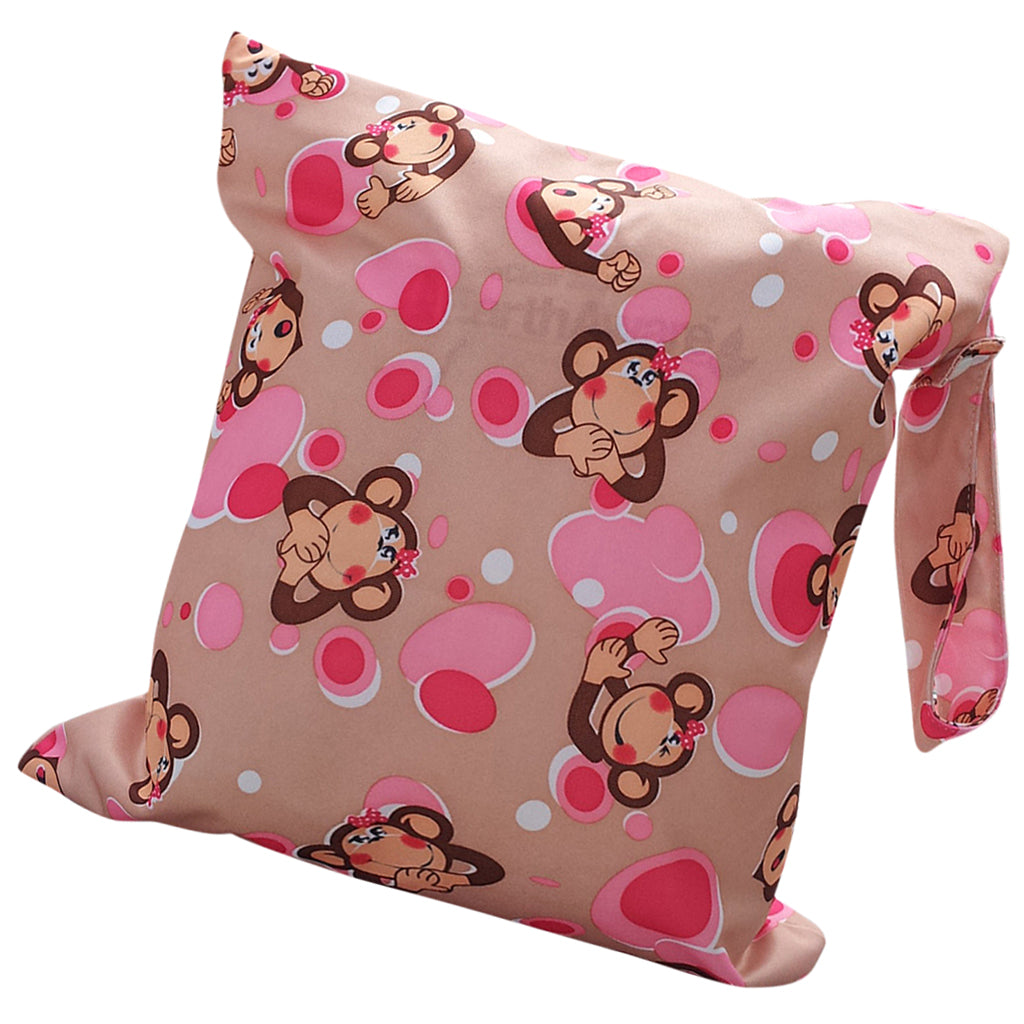 Baby Infants Wet Diaper Nappy Storage Waterproof Zippered Reusable Tote Style Bag Monkey Print Handbag Light Brown