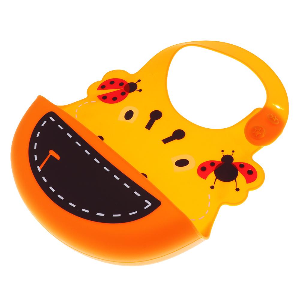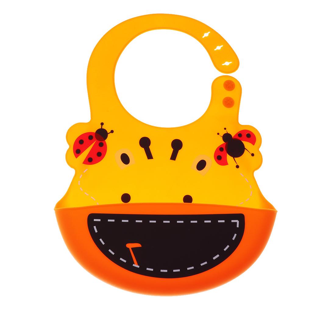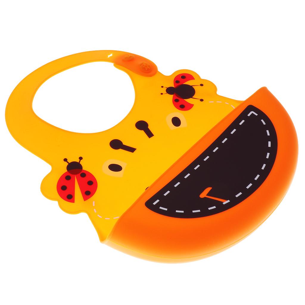 Baby Kid Washable Silicone Feeding Bib Adjustable Bib New Yellow Giraffe