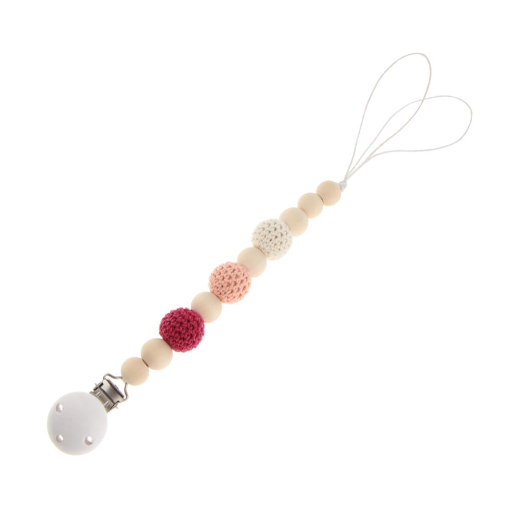 Pacifier chain with pacifier clip prevents pacifiers from dropping.