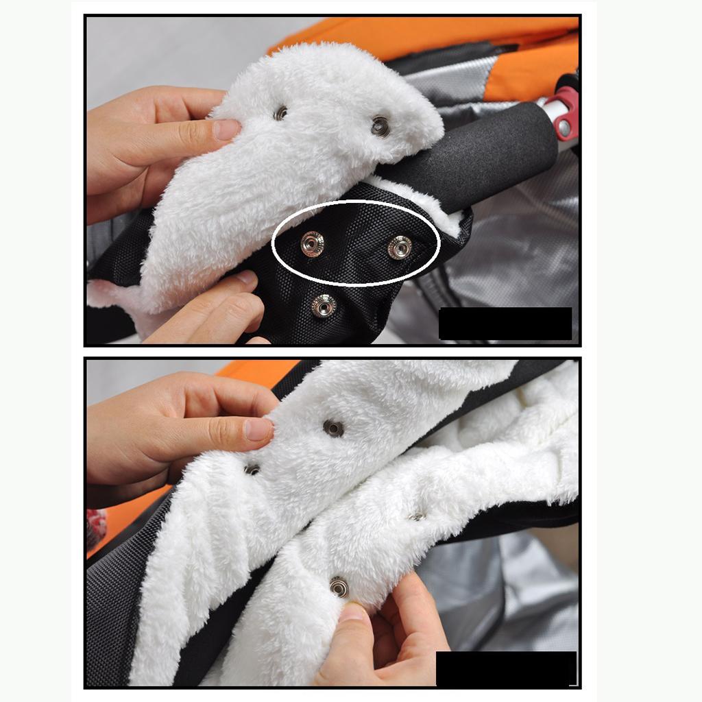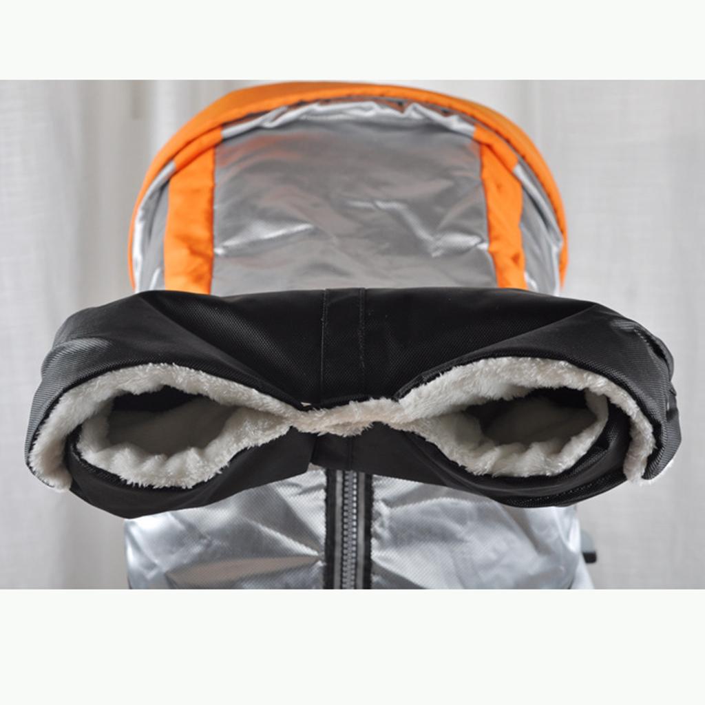 Stroller hand muff made of super soft fleece lining and waterproof cloth outside.
