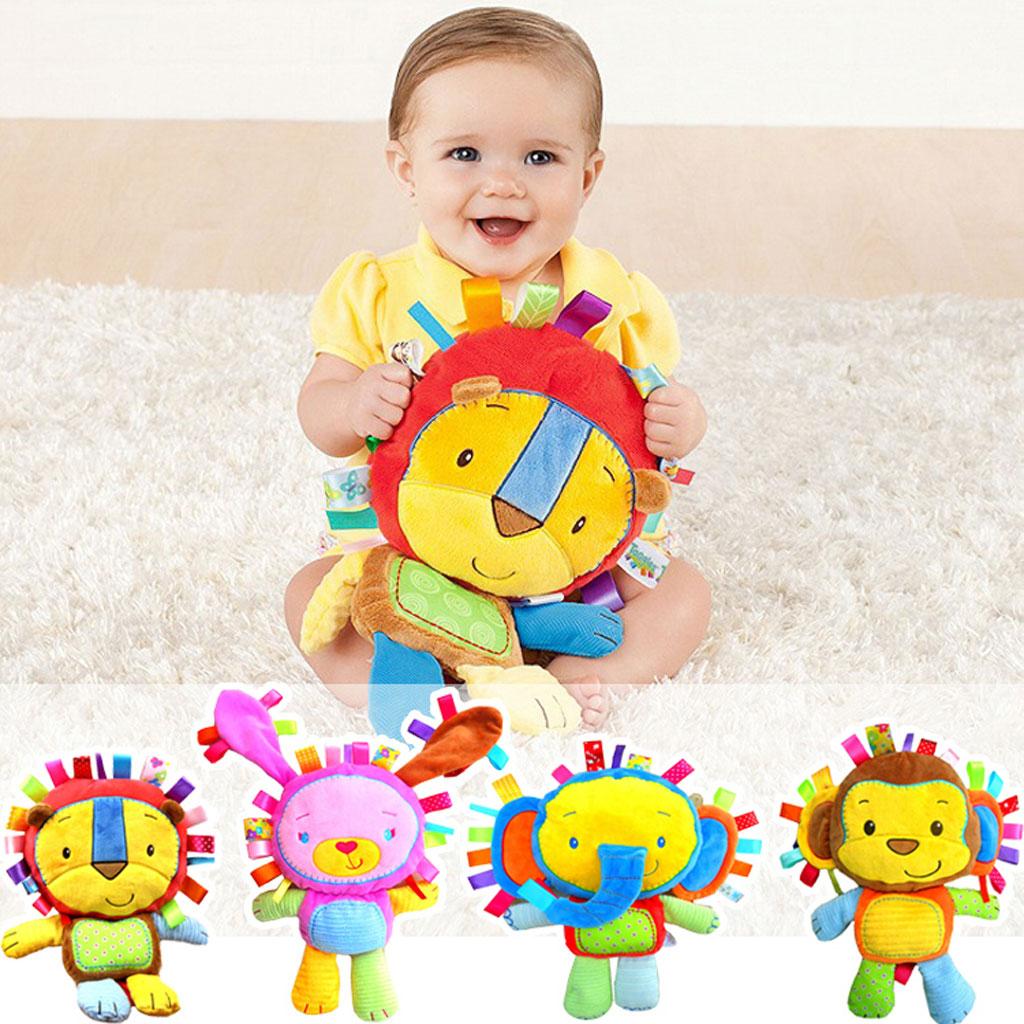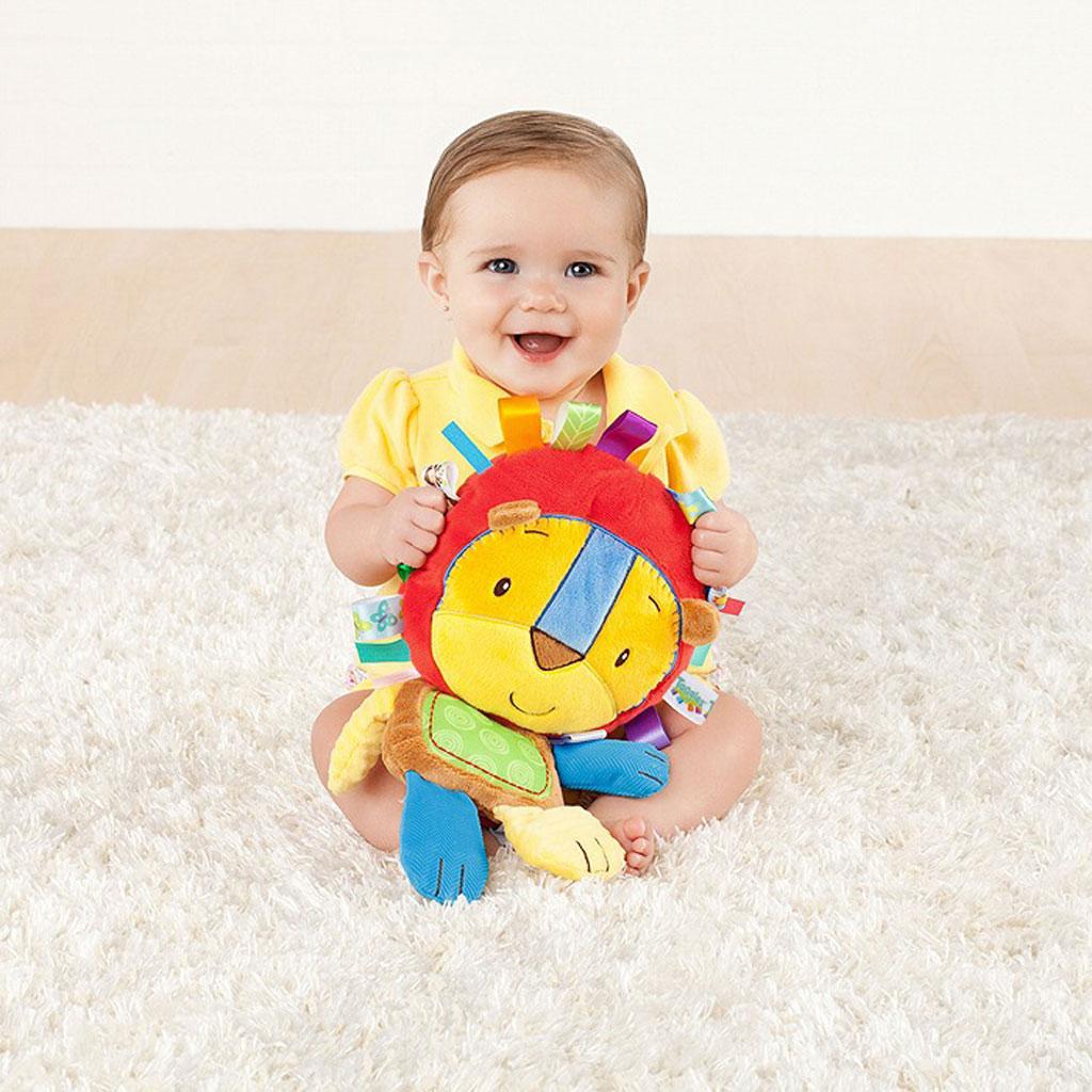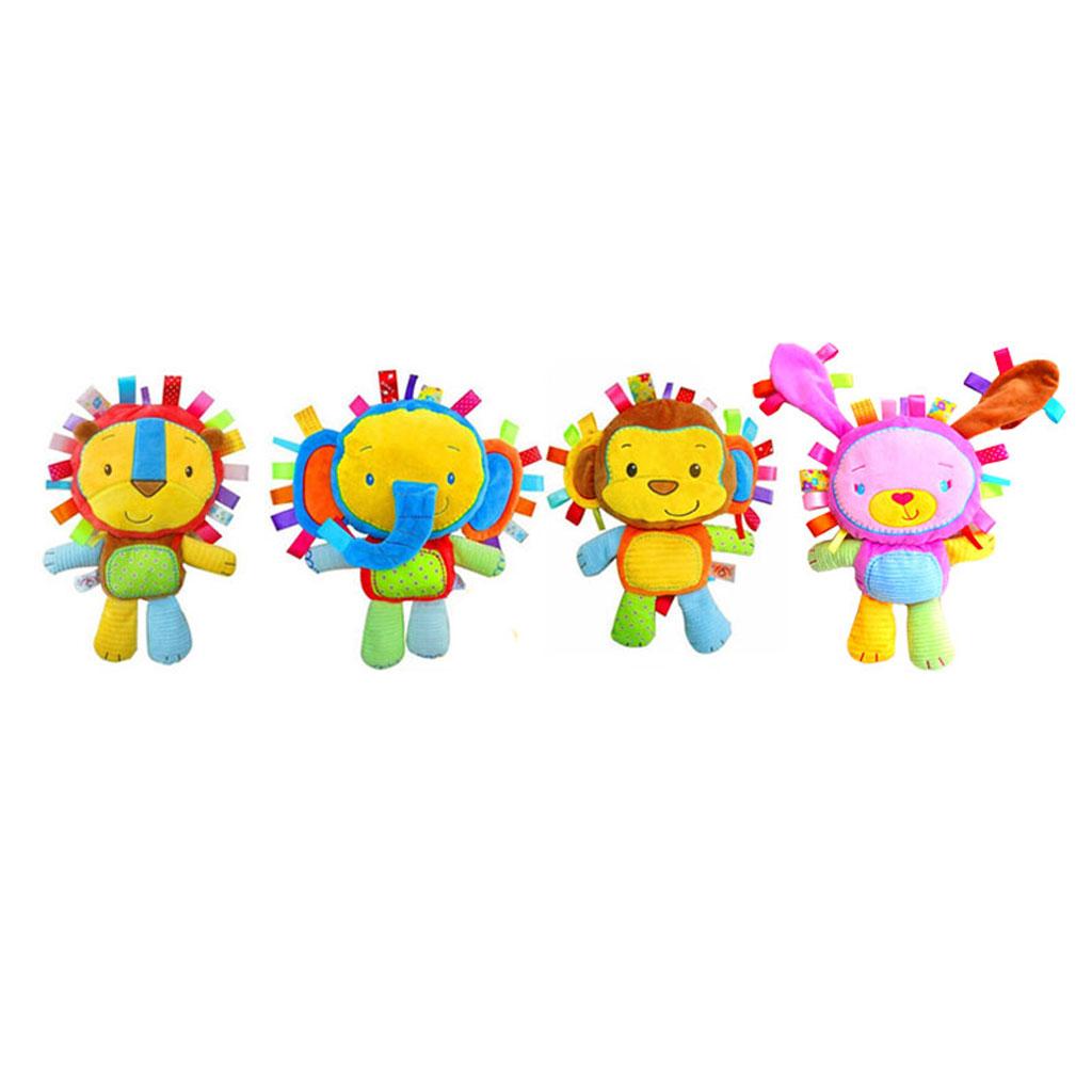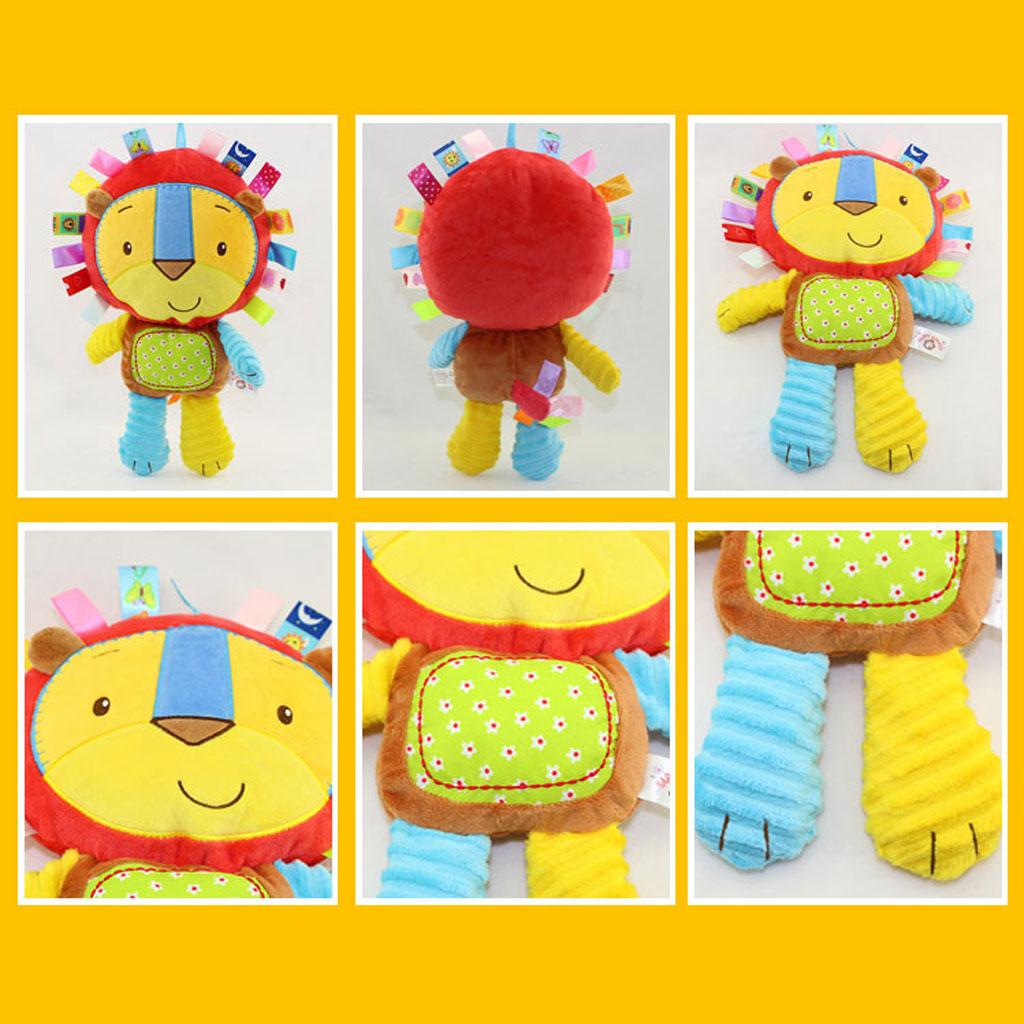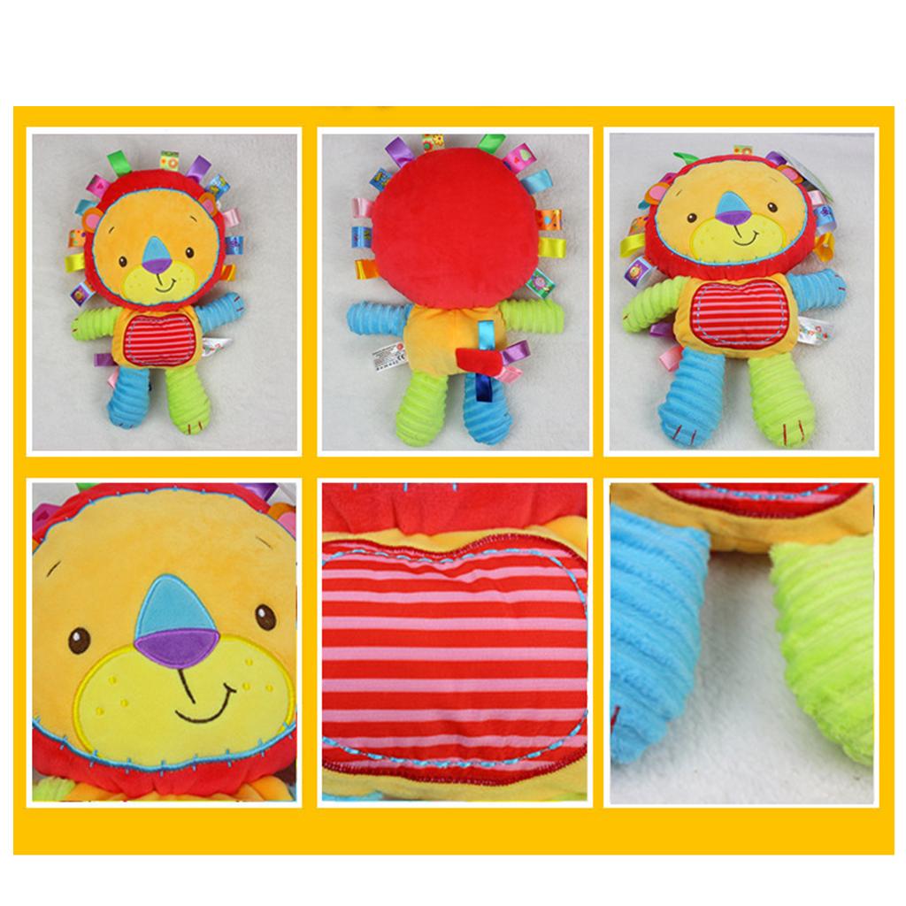 Baby Rattle Ring Squeaky Plush Toy Crib Hanging Comforter Lion