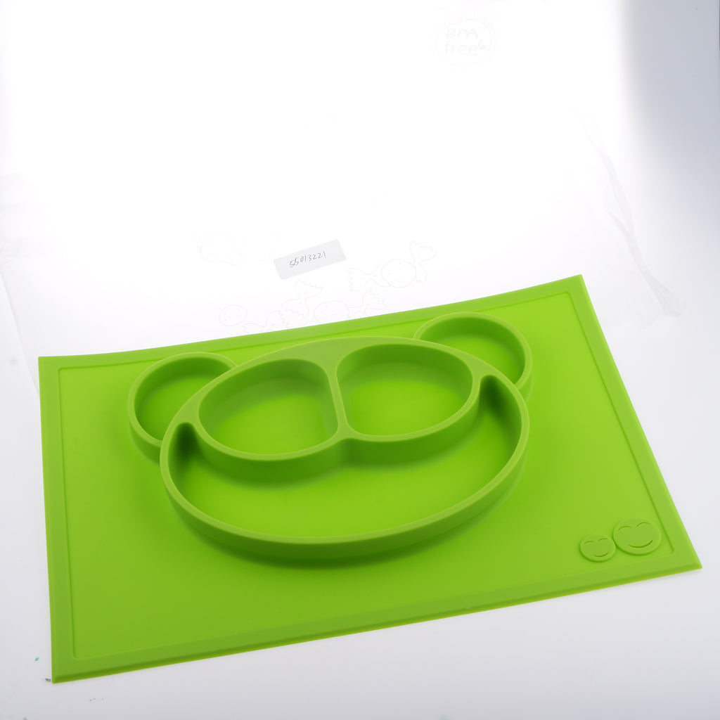 Baby Silica Gel Tray Placemats Panda Sub-grid Plate Tableware Green
