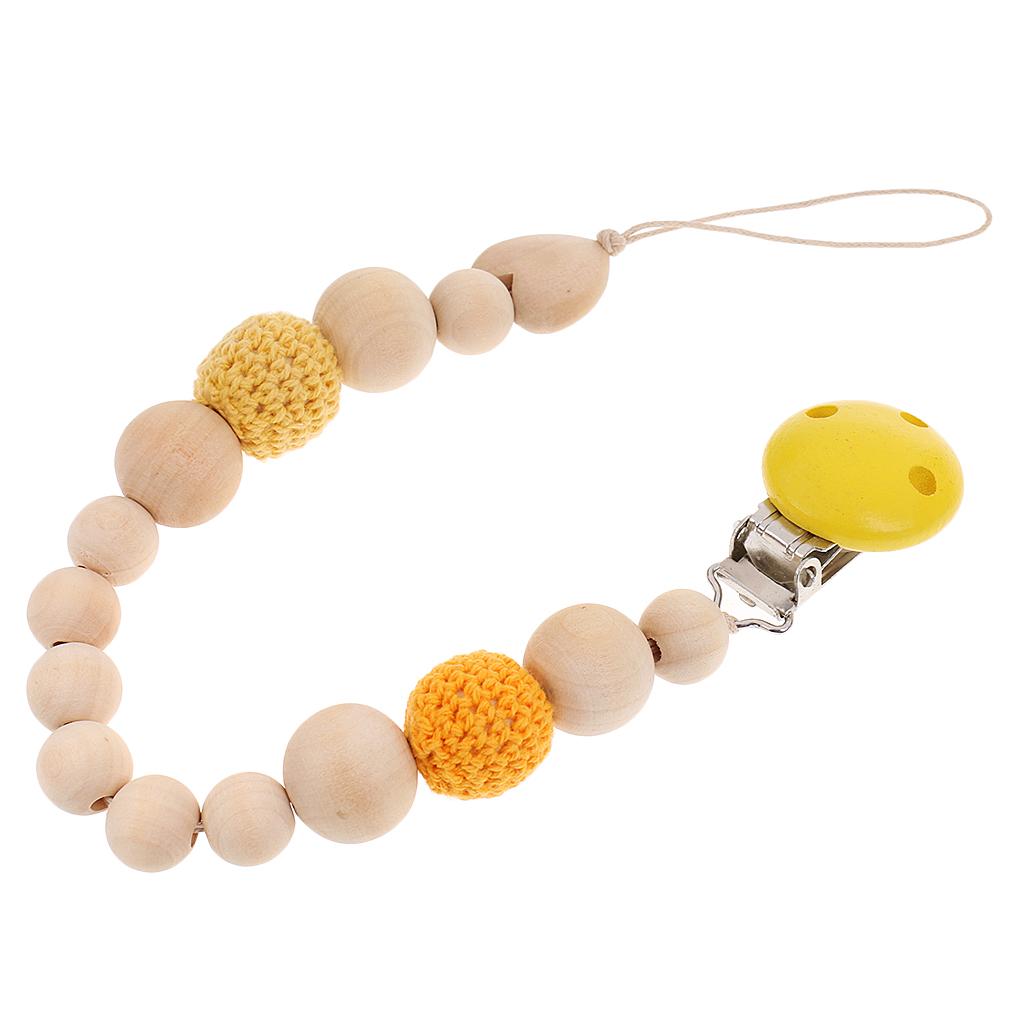 Baby Teether Beads Pacifier Chain Crocheted Wooden Beads -5