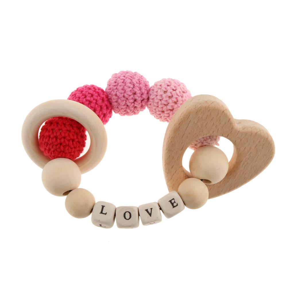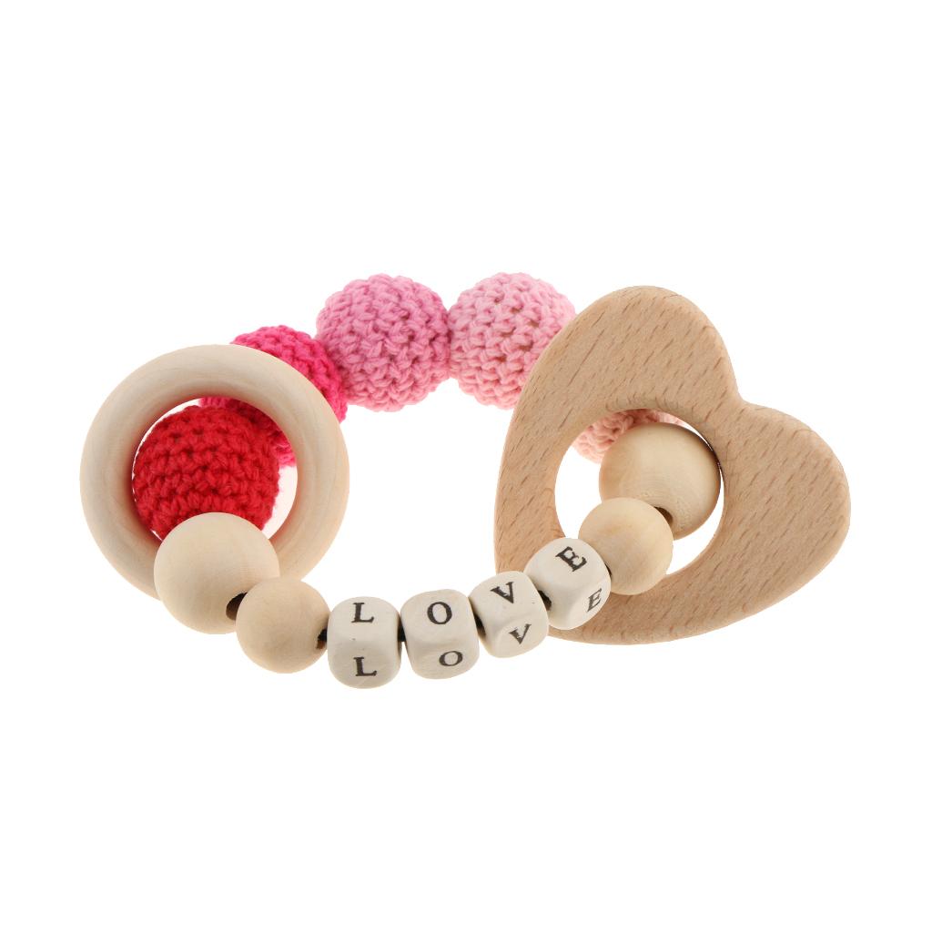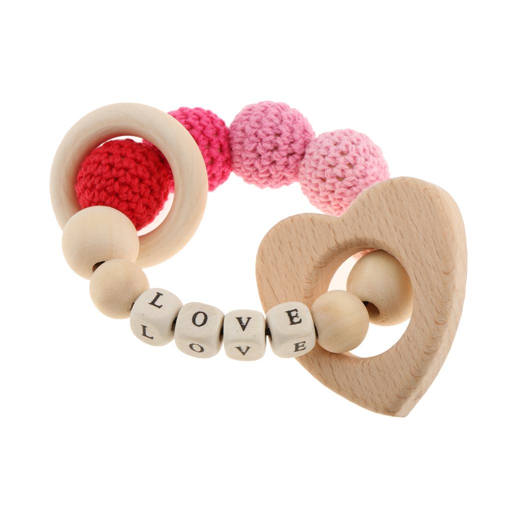 Baby Teether Toy Baby Wooden Nursing Teether Bracelet Multi-color Heart