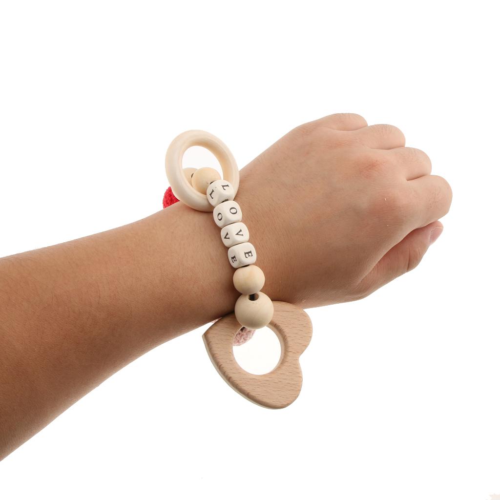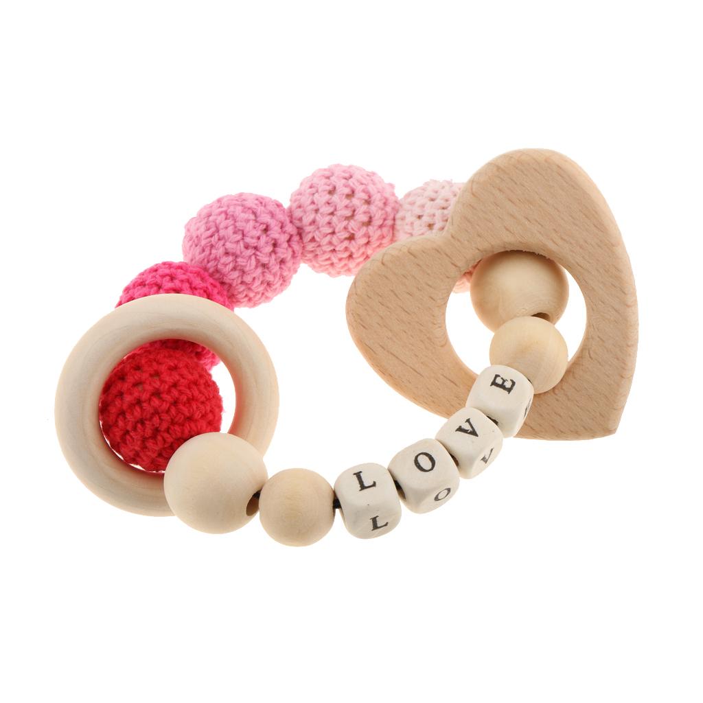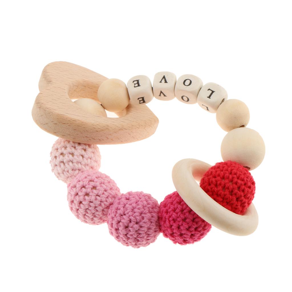 Baby Teether Toy Baby Wooden Nursing Teether Bracelet Multi-color Heart