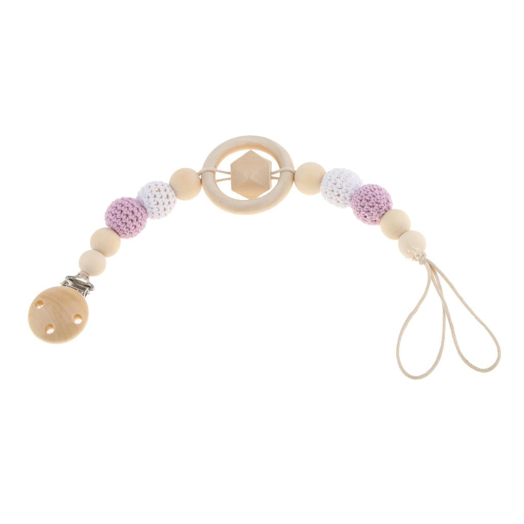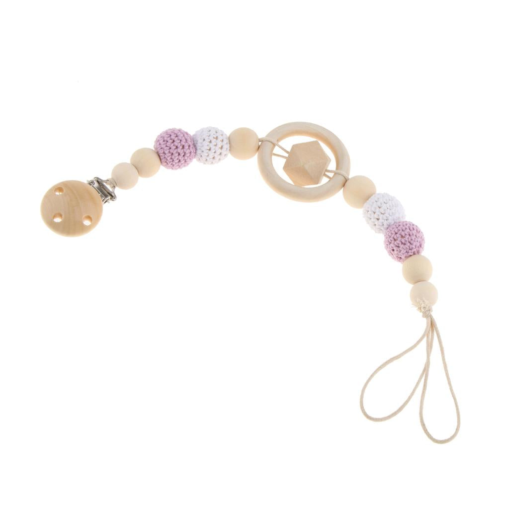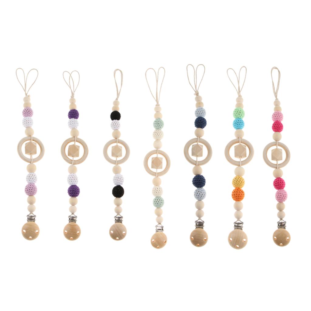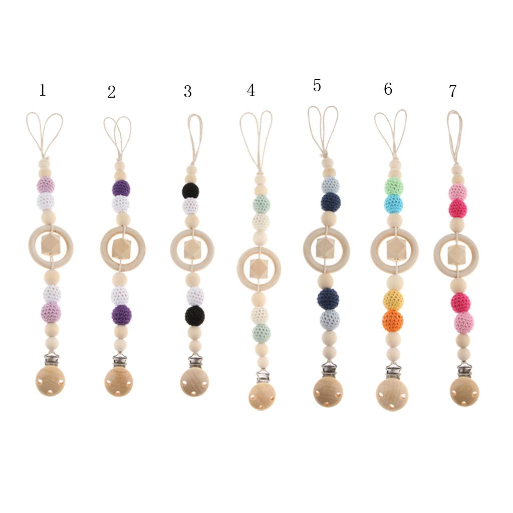 Baby Wood Bead Pacifier Holder Clip Chain Nipple Teether Dummy Strap Style1