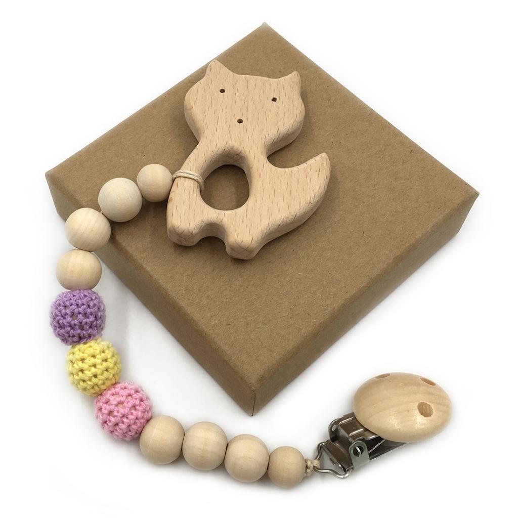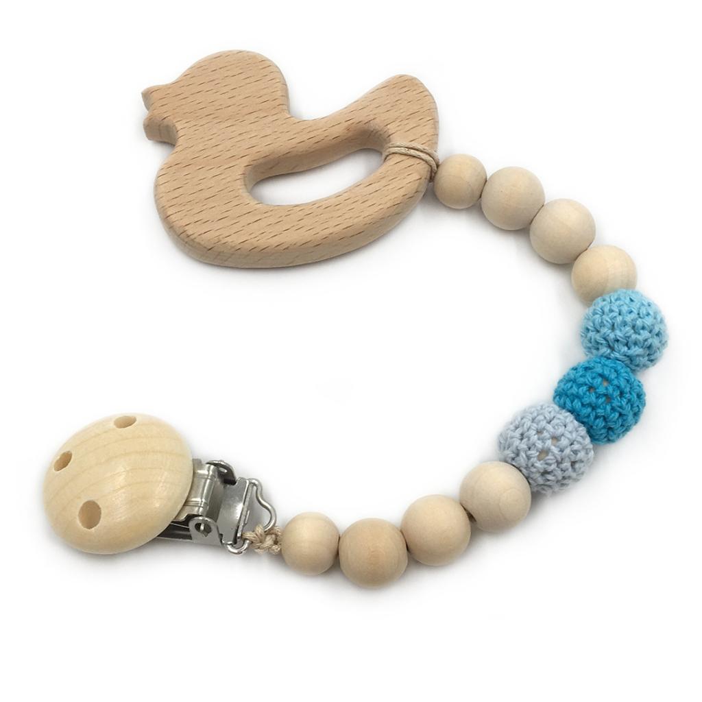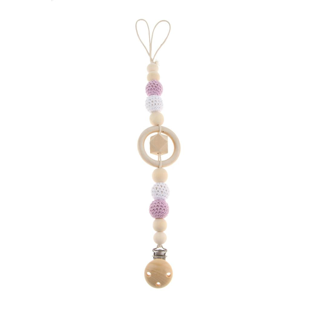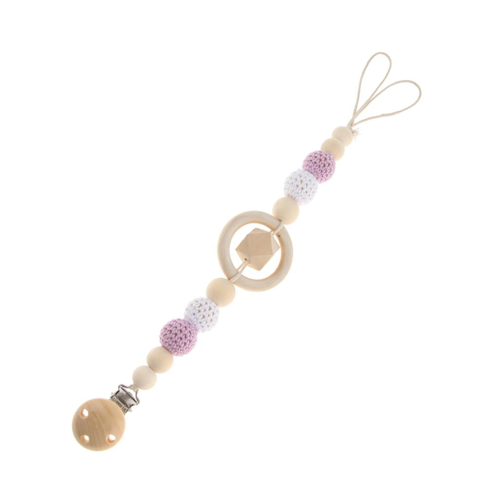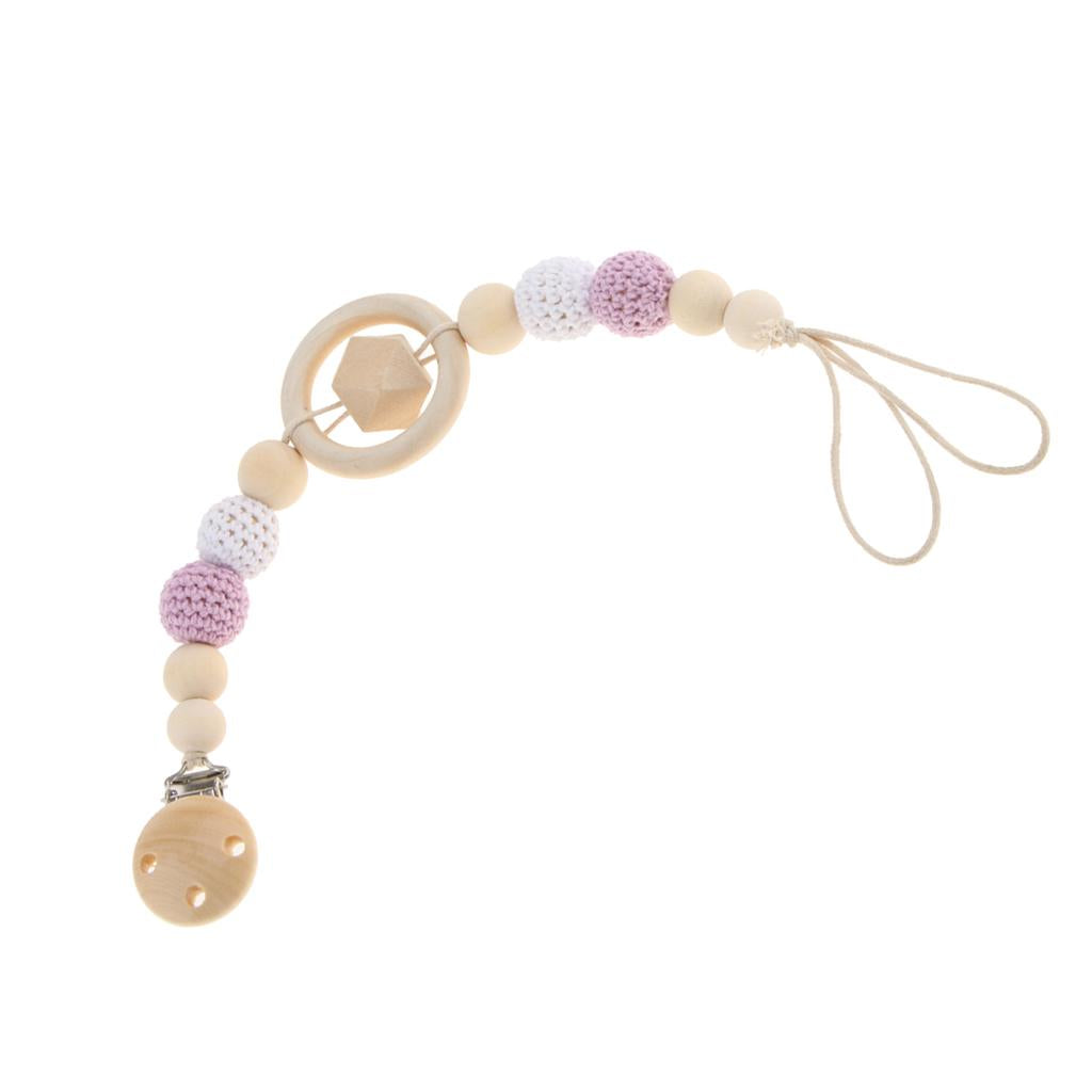 Baby Wood Bead Pacifier Holder Clip Chain Nipple Teether Dummy Strap Style1