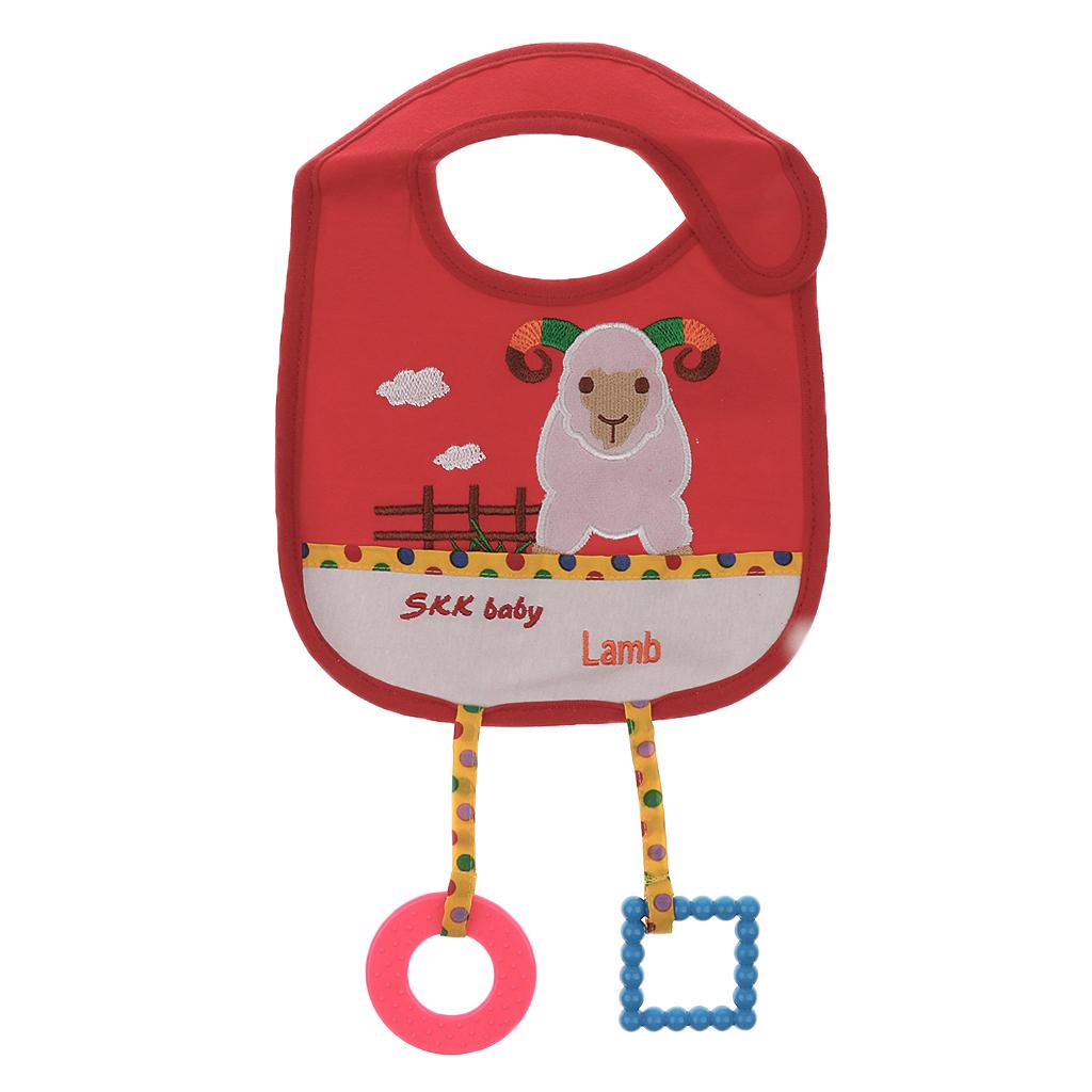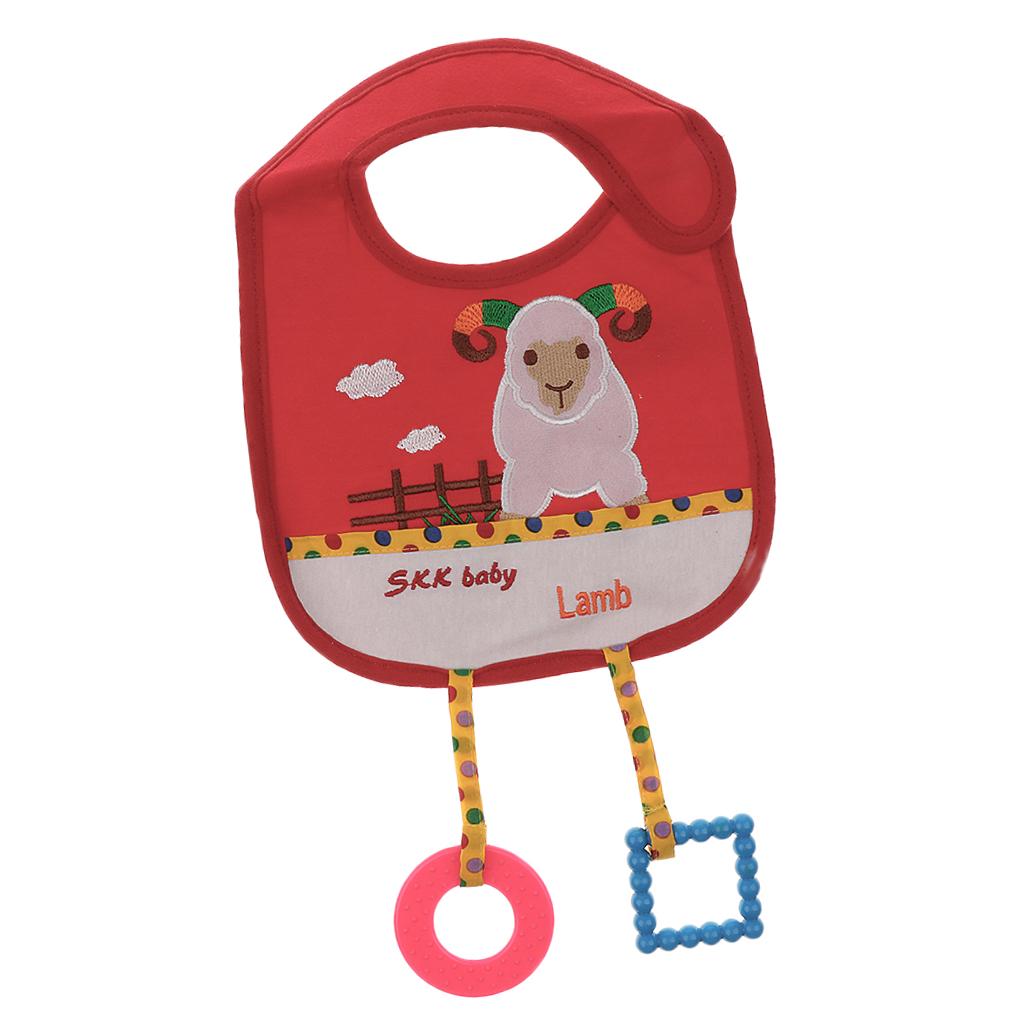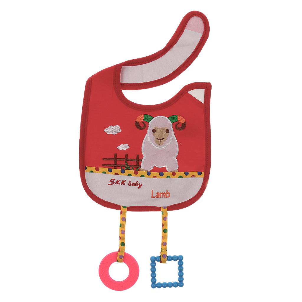 Cotton Toddler Infant Baby Bibs Saliva Pinafore with Teethers Lamb 1