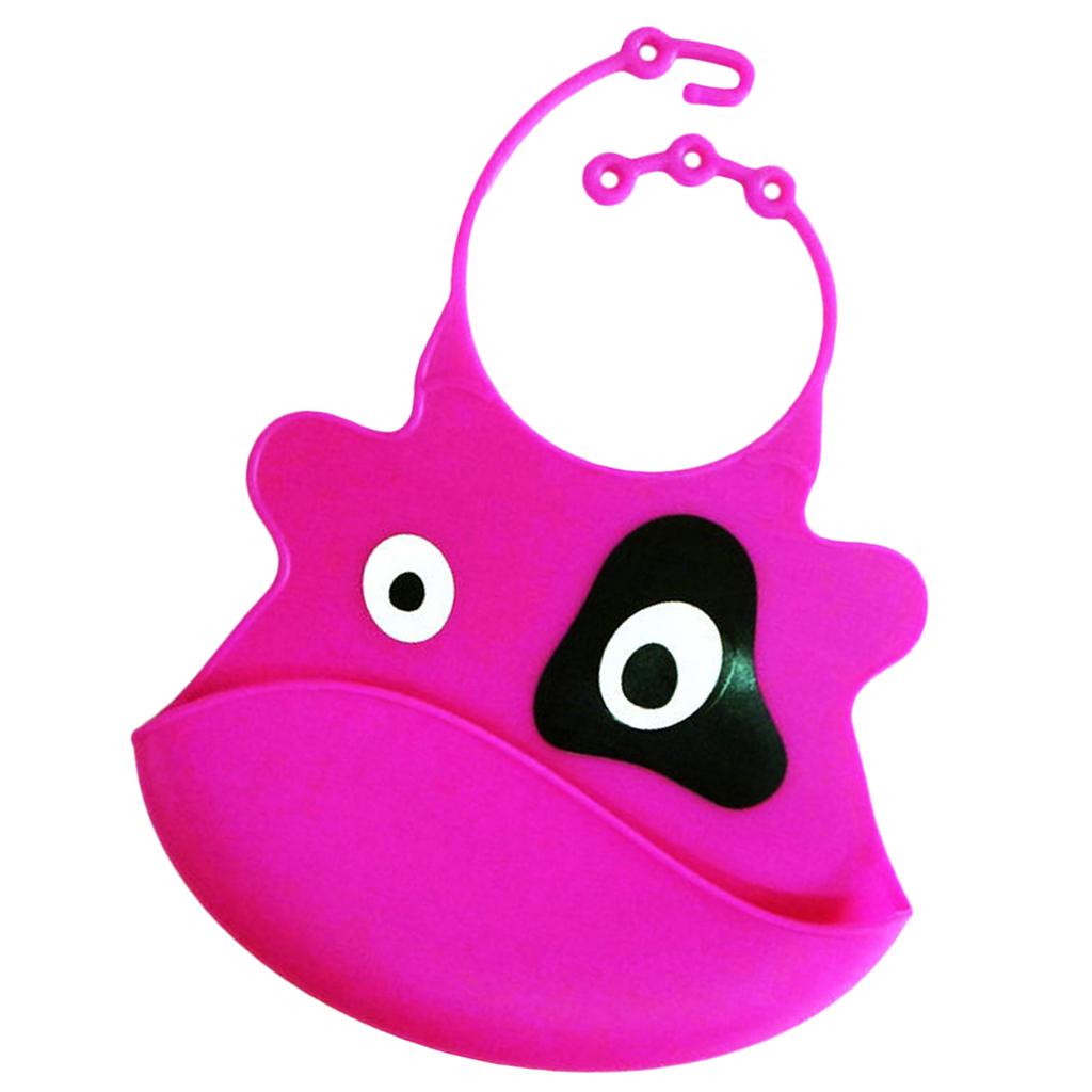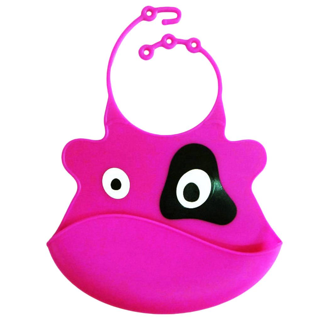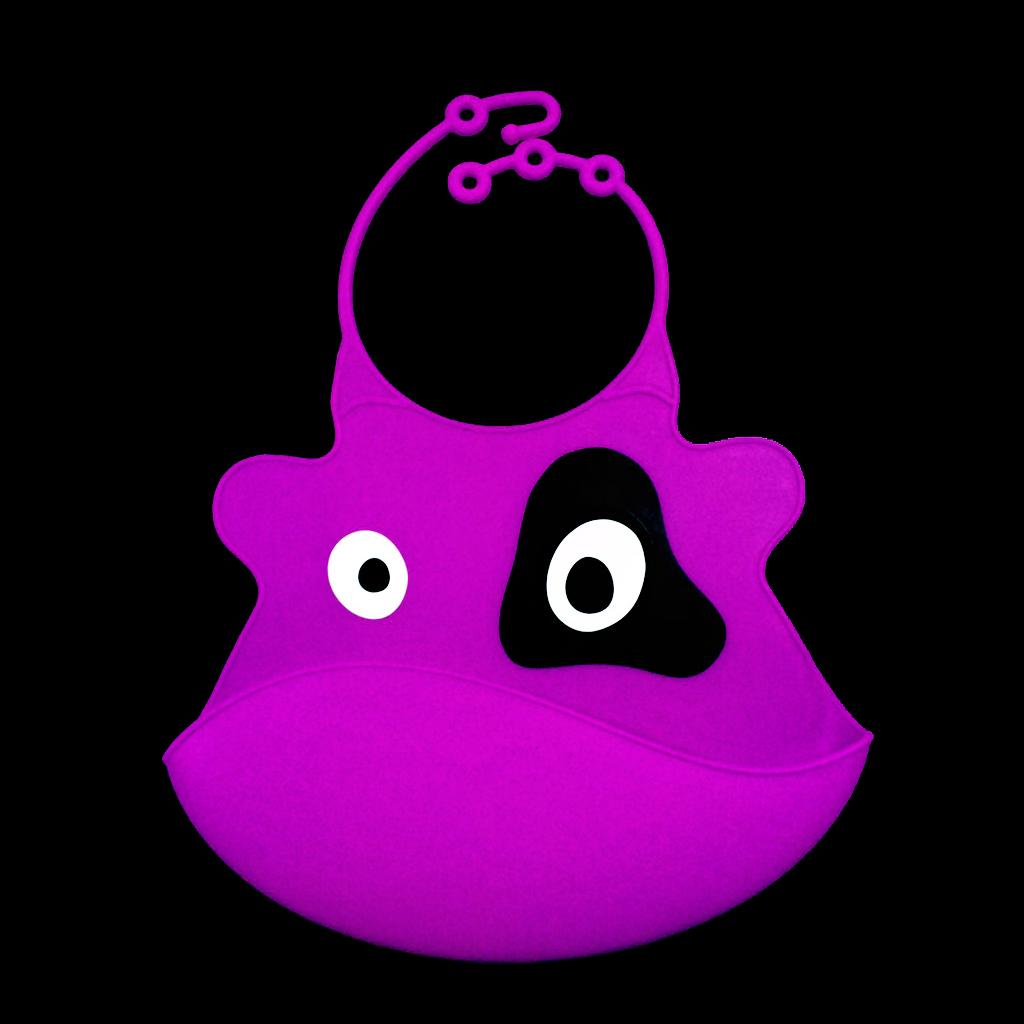Cute Baby Silicone Bib Waterproof Easy Clean Up Crumb Catcher Fushcia Cow Pattern