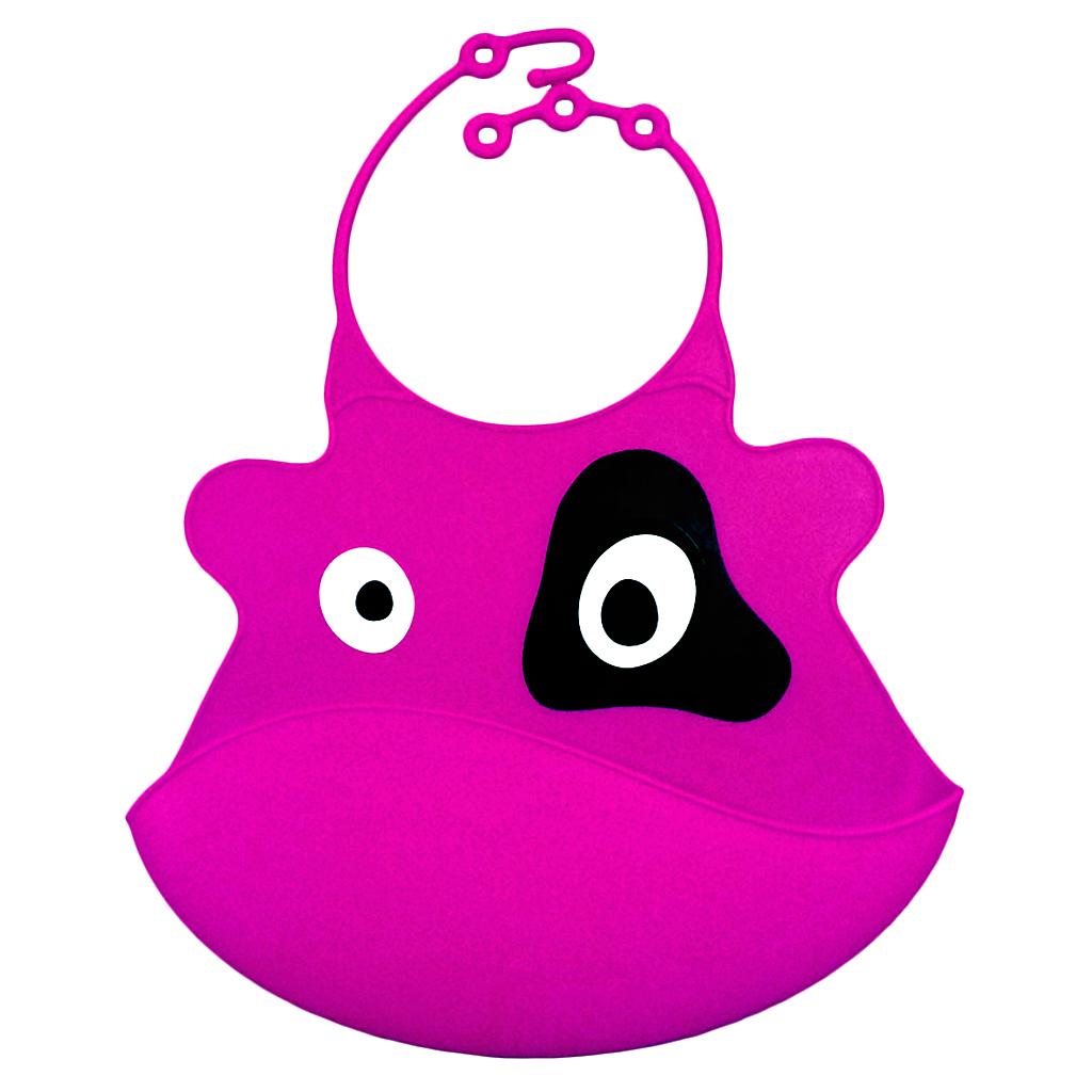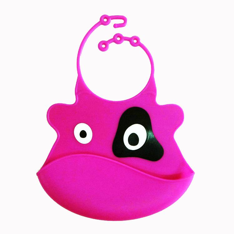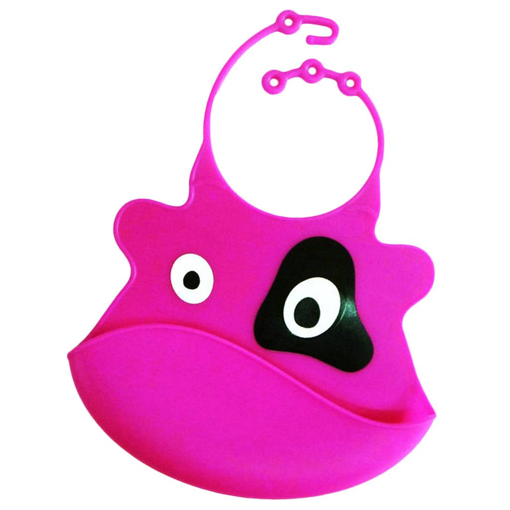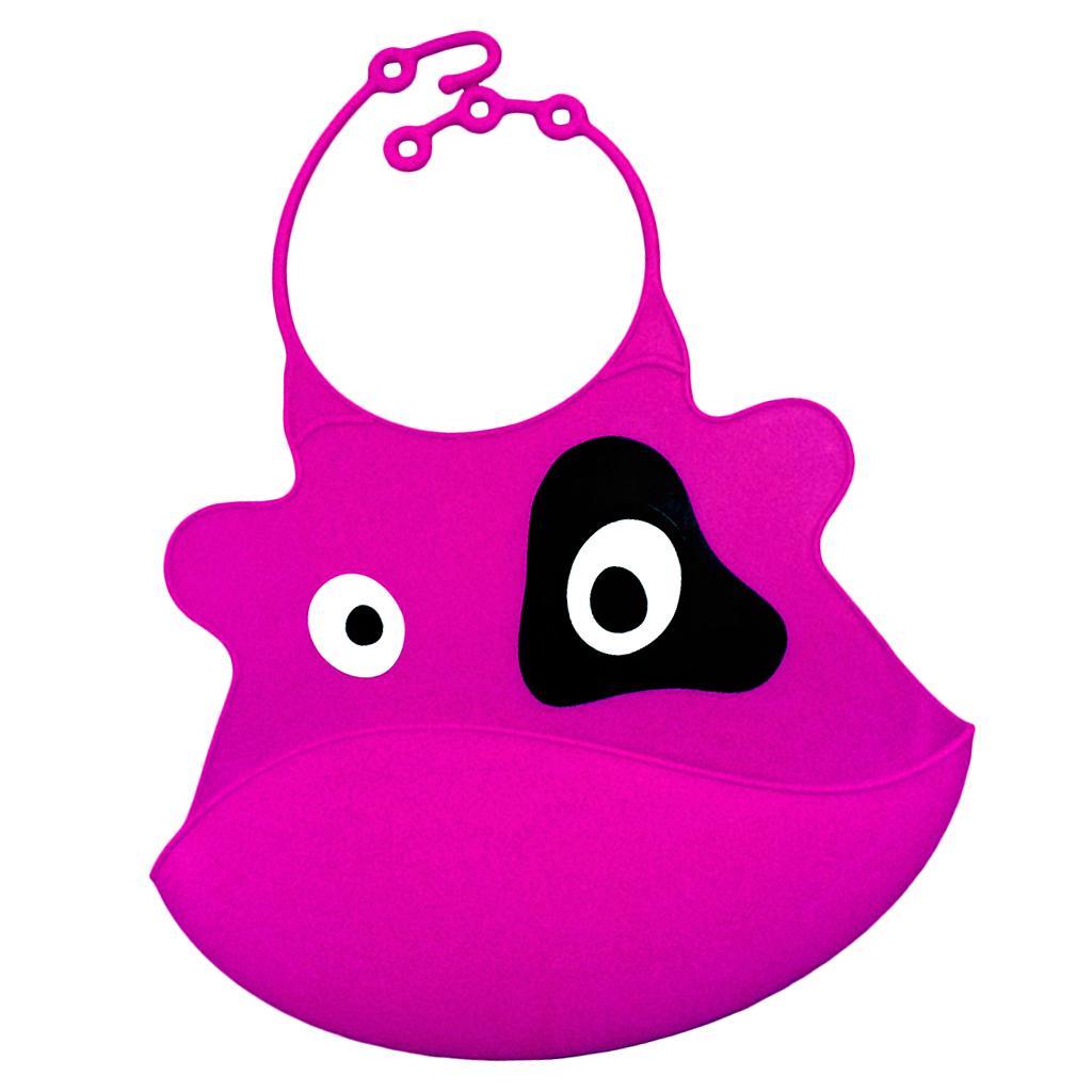 Cute Baby Silicone Bib Waterproof Easy Clean Up Crumb Catcher Fushcia Cow Pattern