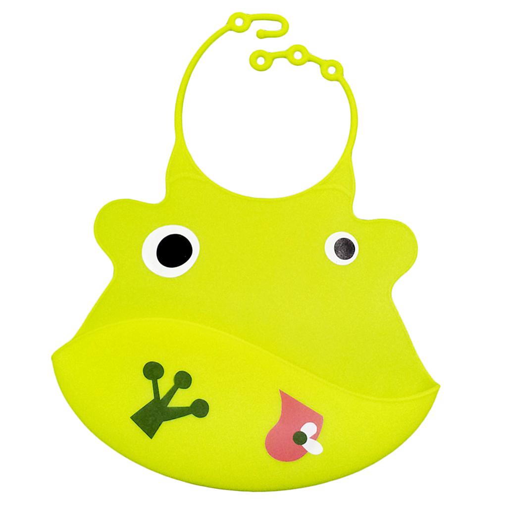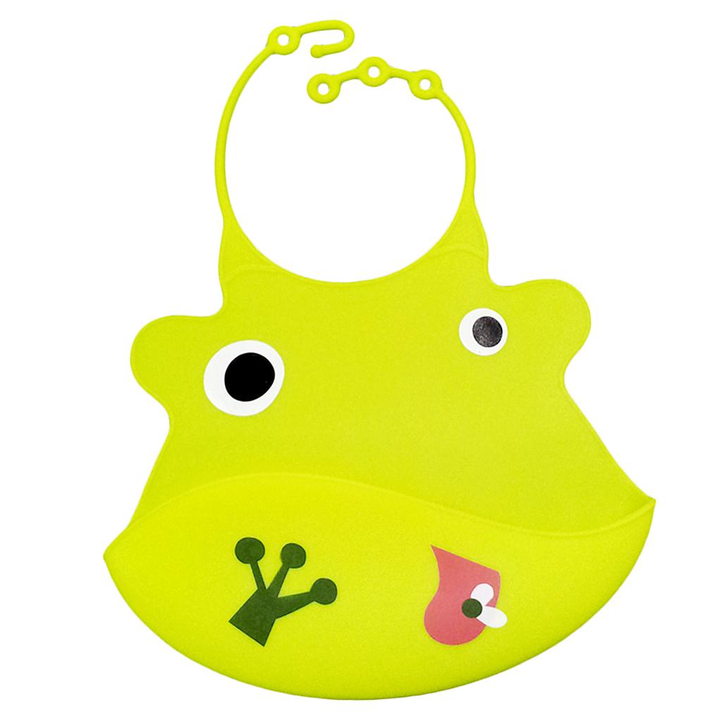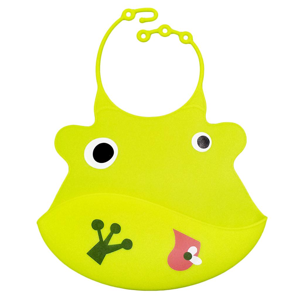 Cute Baby Silicone Bib Waterproof Easy Clean Up Crumb Catcher Lemon Green Frog Pattern