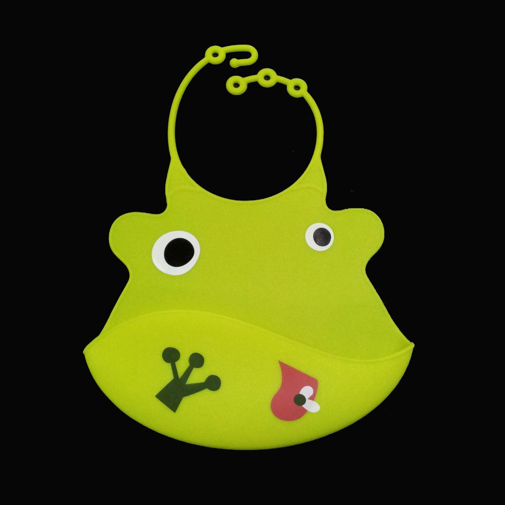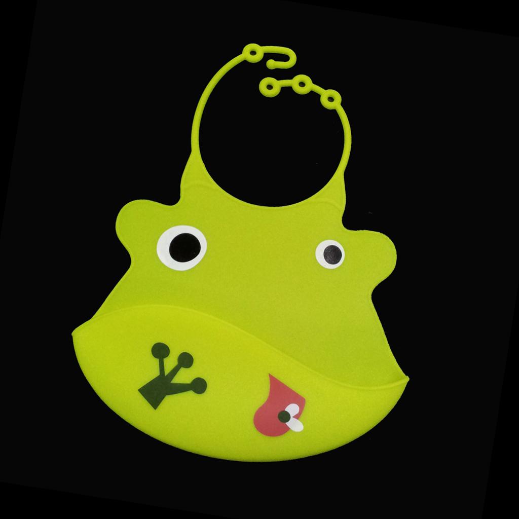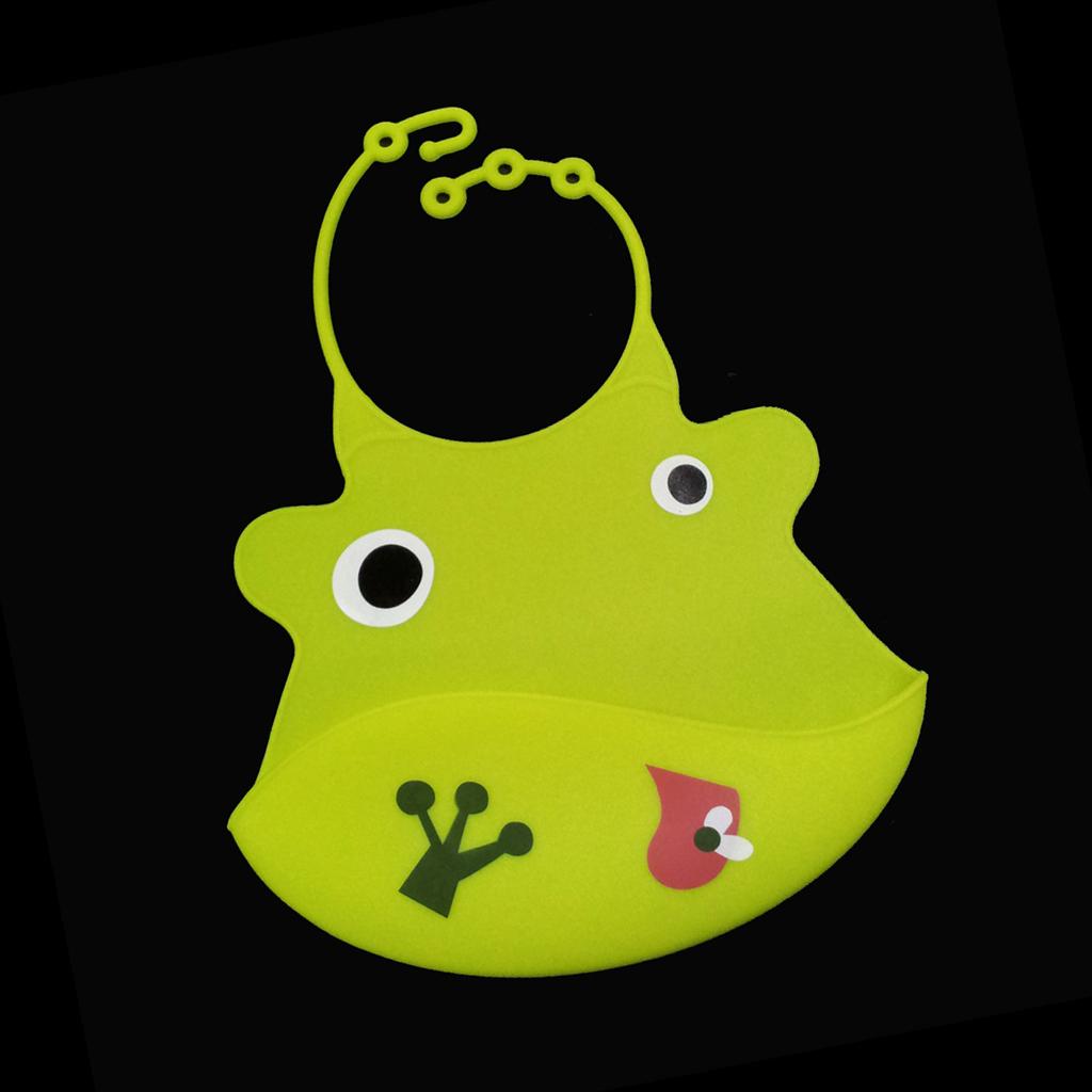 Cute Baby Silicone Bib Waterproof Easy Clean Up Crumb Catcher Lemon Green Frog Pattern