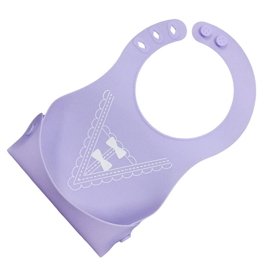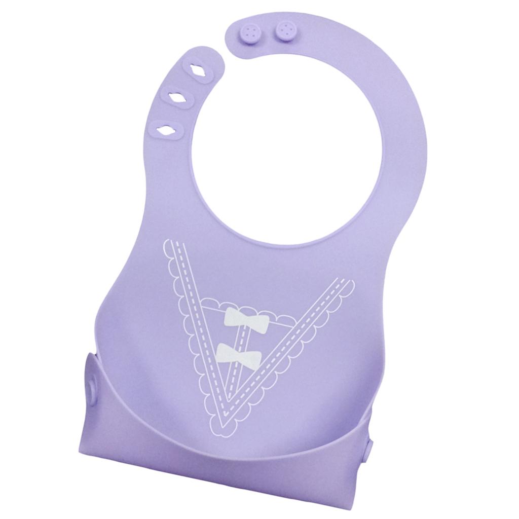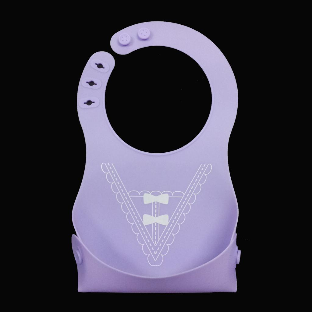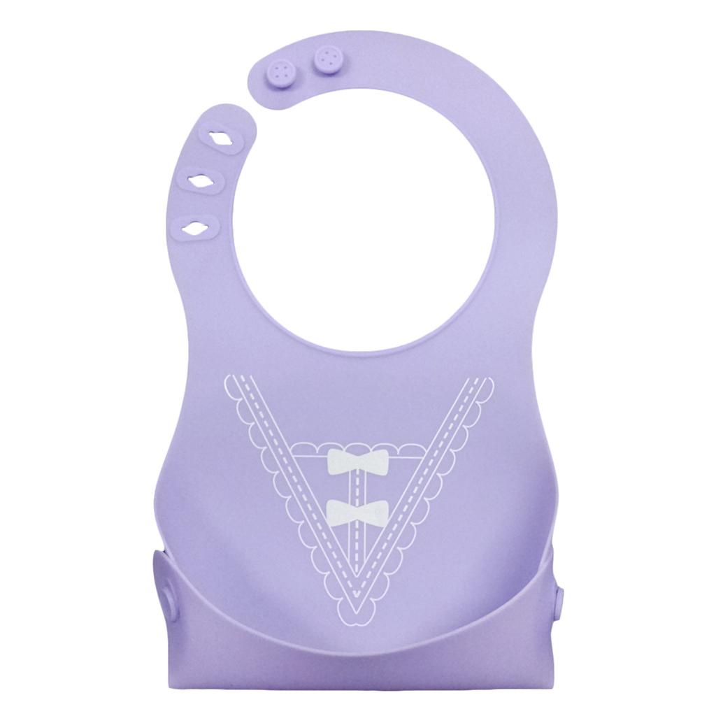 Cute Baby Silicone Bib Waterproof Easy Clean Up Crumb Catcher Purple with Bowknot Pattern