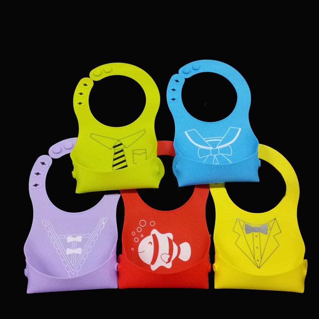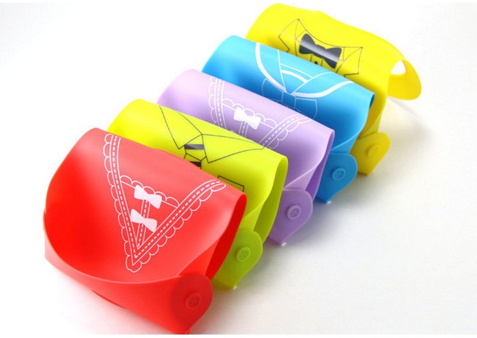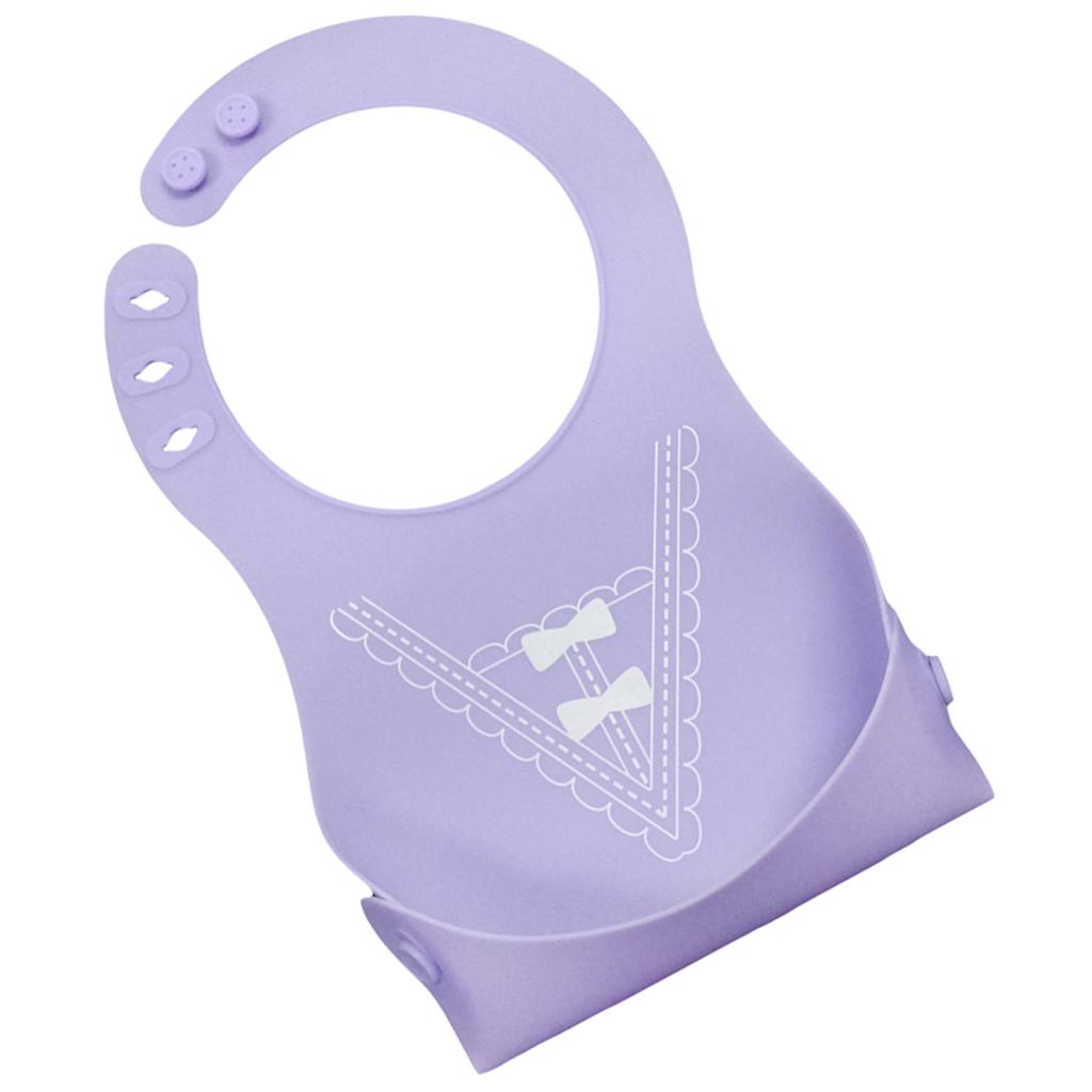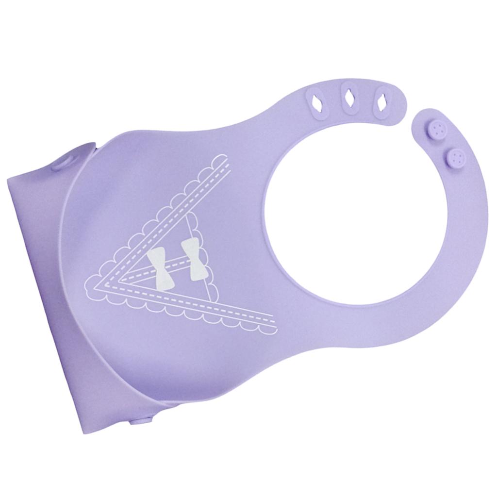 Cute Baby Silicone Bib Waterproof Easy Clean Up Crumb Catcher Purple with Bowknot Pattern