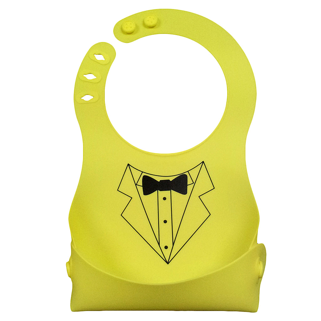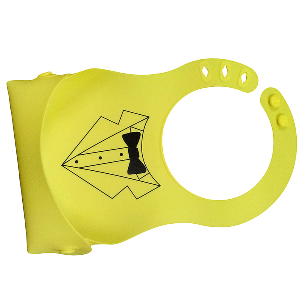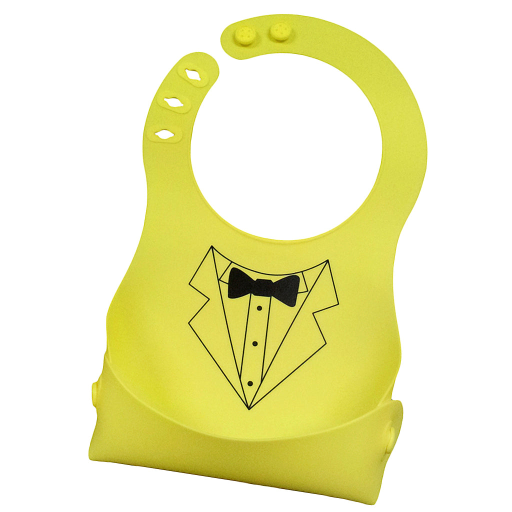 Cute Baby Silicone Bib Waterproof Easy Clean Up Crumb Catcher Yellow with Bowtie Pattern