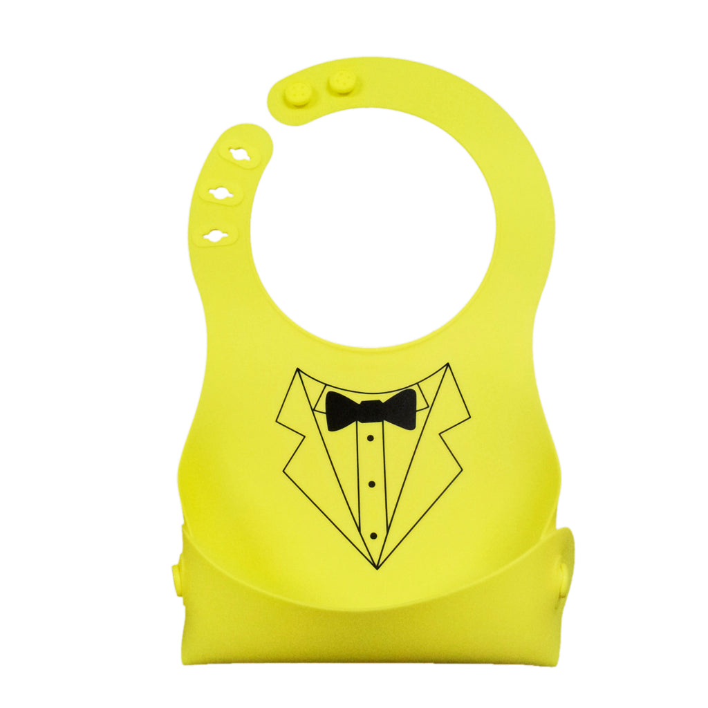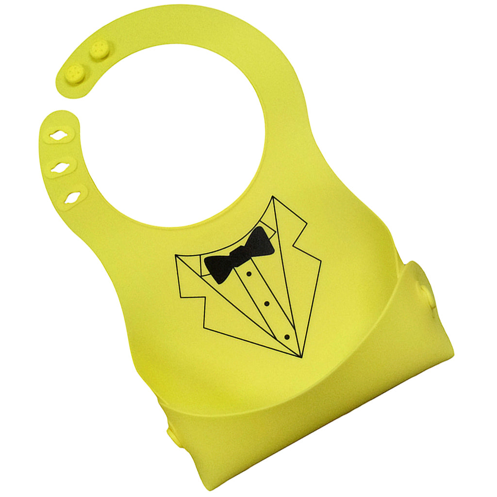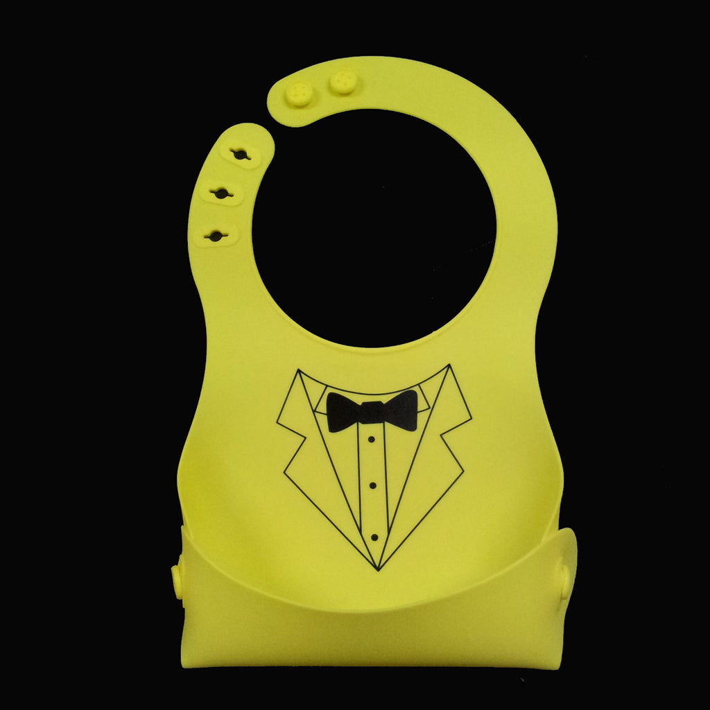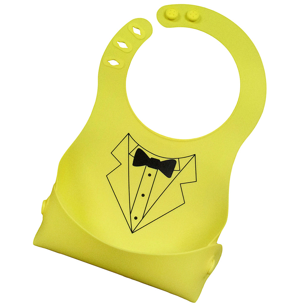 Cute Baby Silicone Bib Waterproof Easy Clean Up Crumb Catcher Yellow with Bowtie Pattern