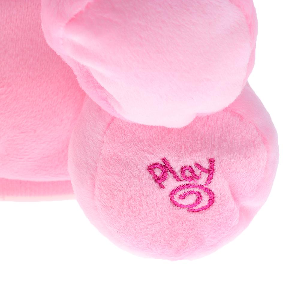 Pressing the left foot plays an interactive game of peek-a-boo. Press the right foot to hear it sing a song in a cute voice that your child will love. Ears move and flap during play which is very entertaining. This makes for a perfect gift for any child!