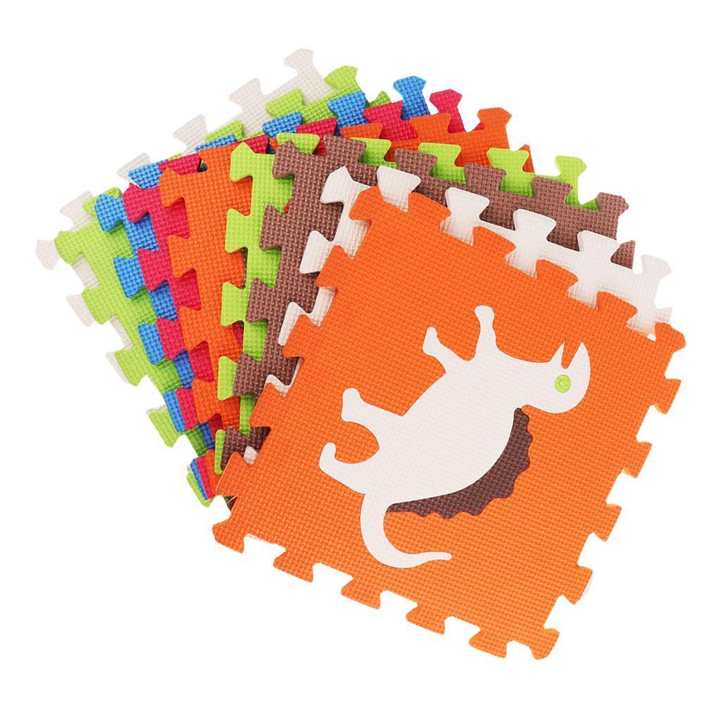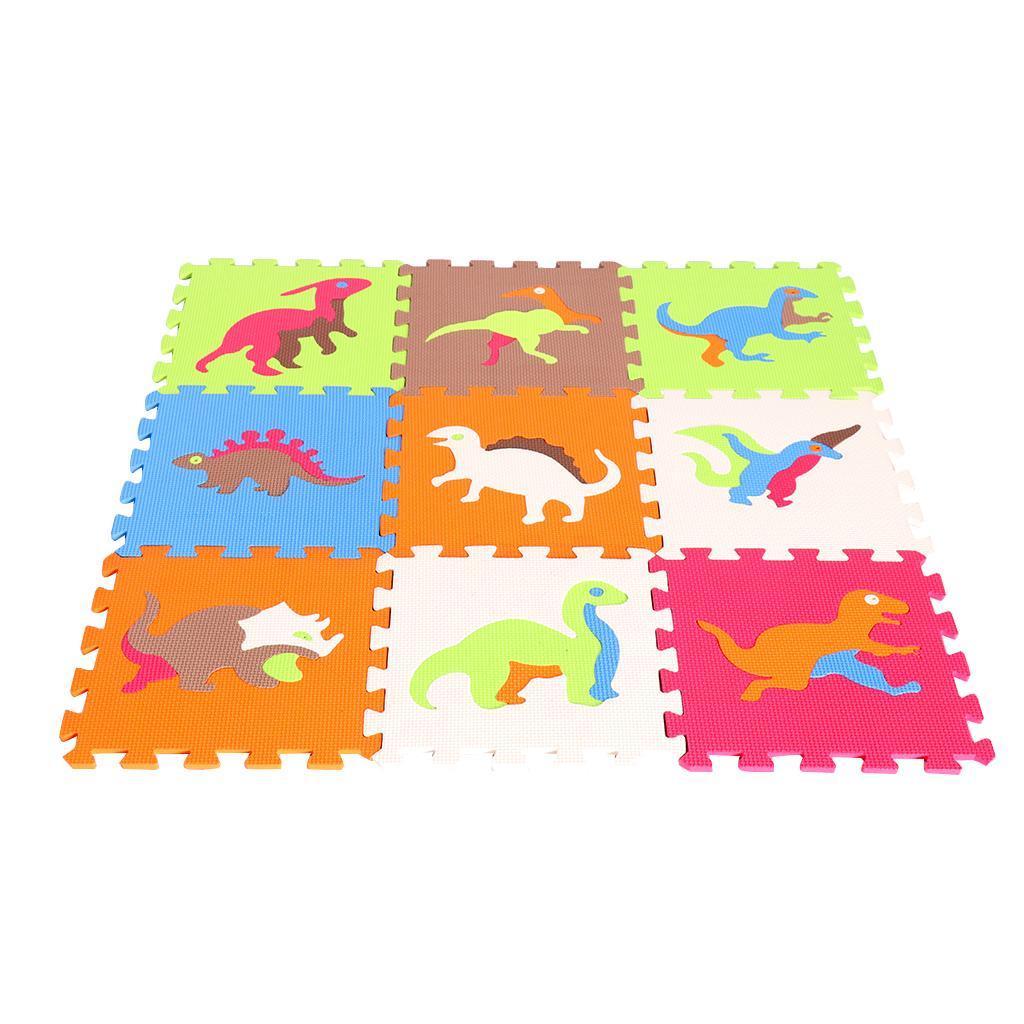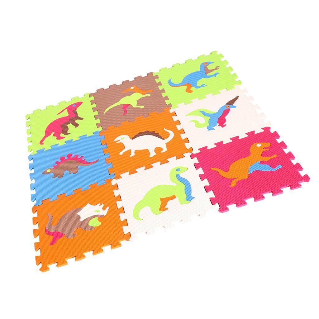 This safe playmat features 9 interlocking puzzle tiles containing vibrant images that help children learn colors and shapes.