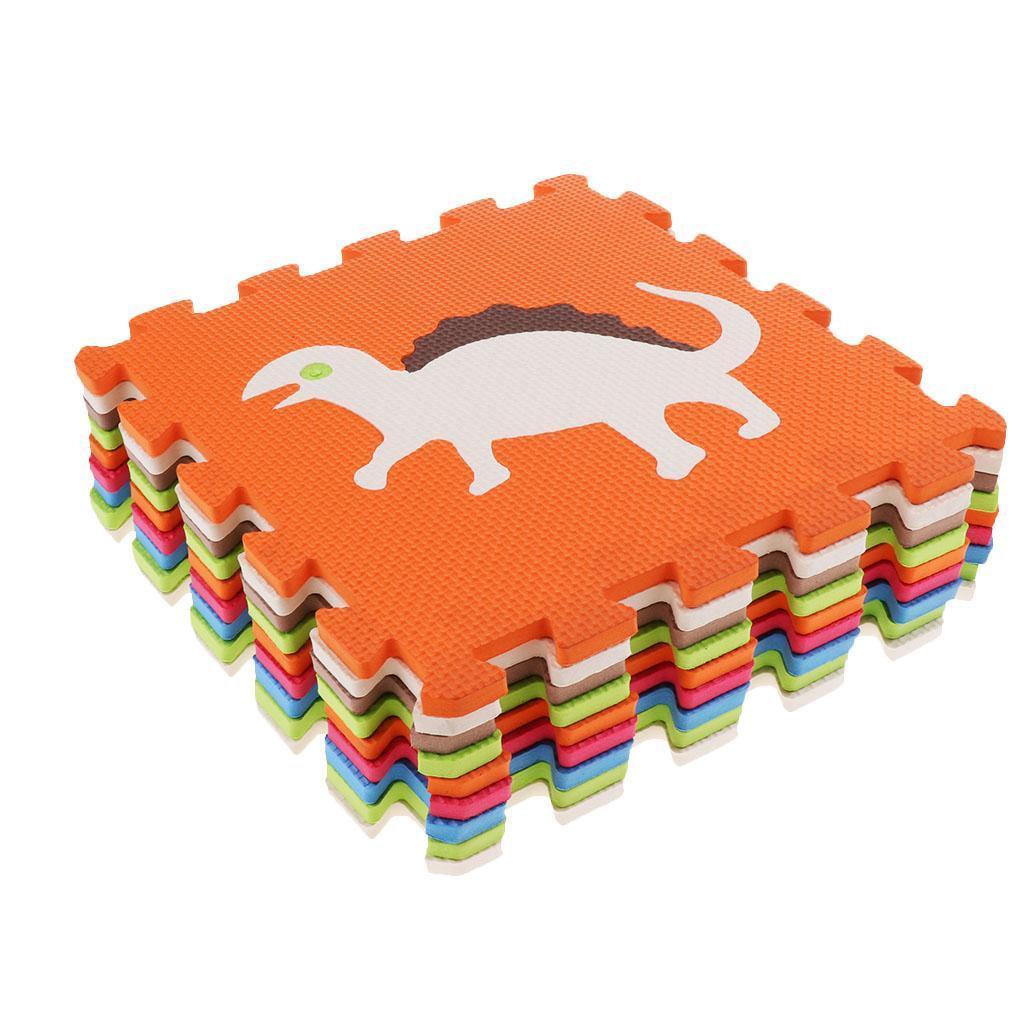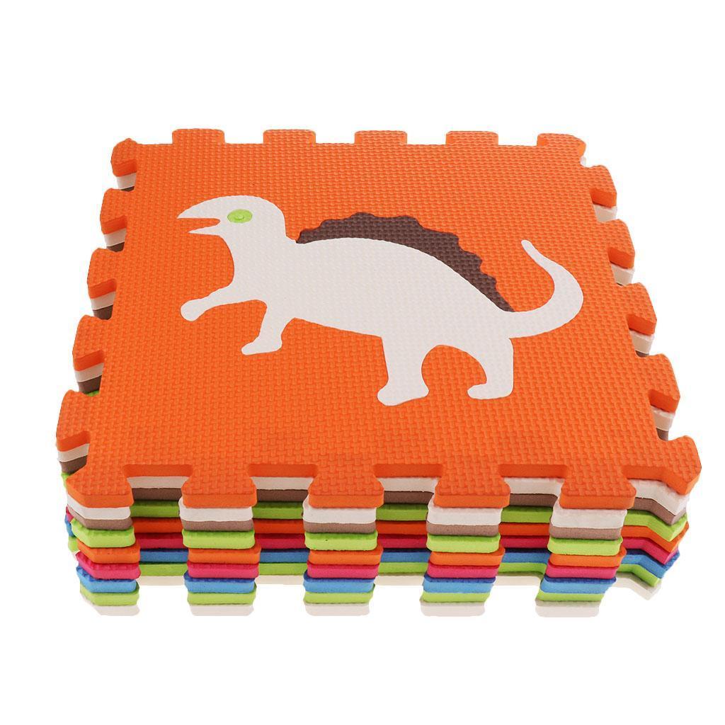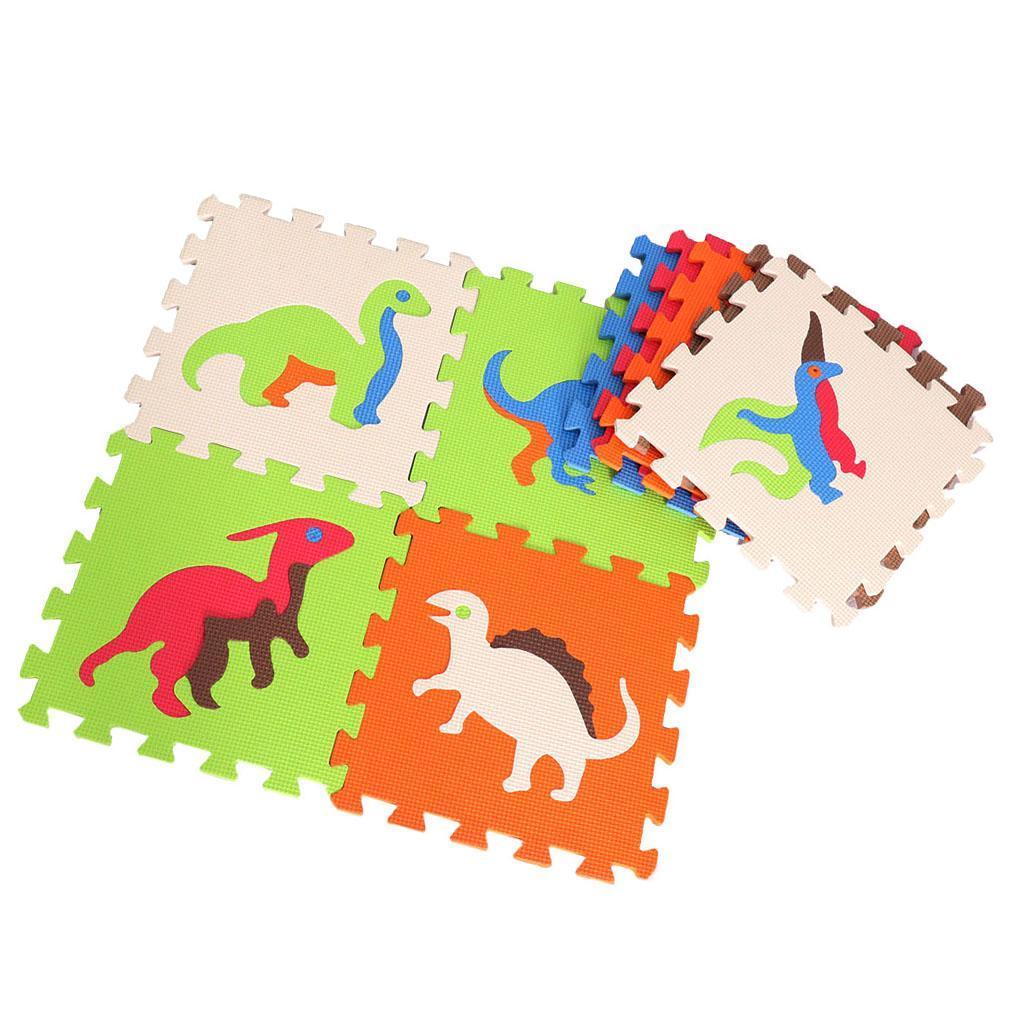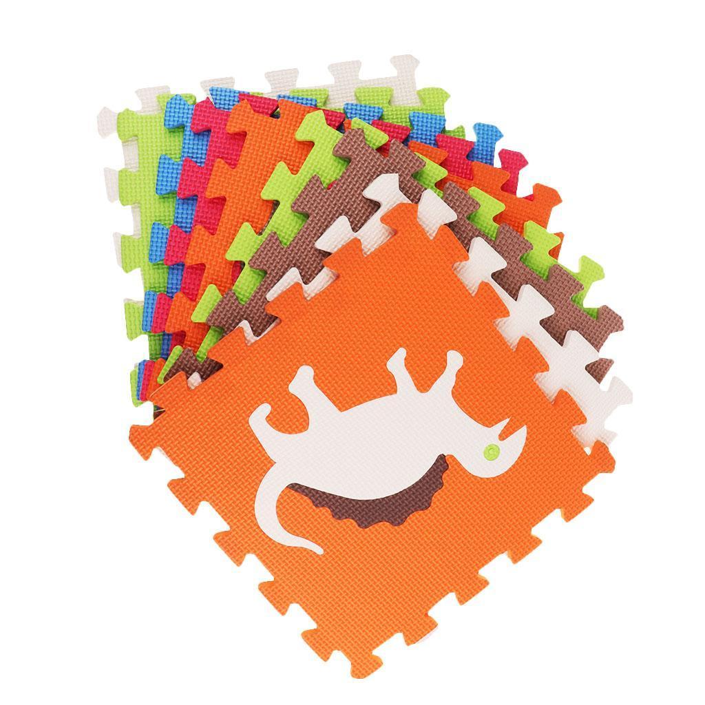 This safe playmat features 9 interlocking puzzle tiles containing vibrant images that help children learn colors and shapes.
