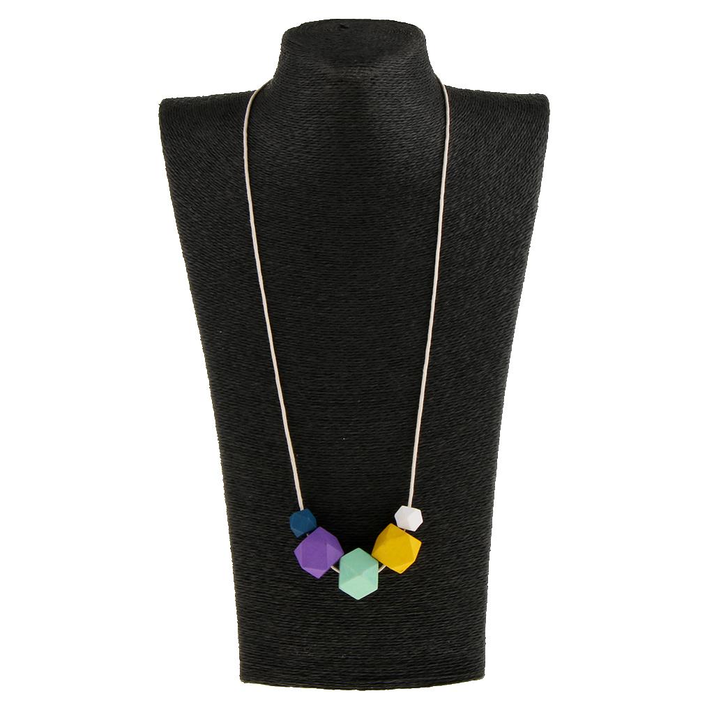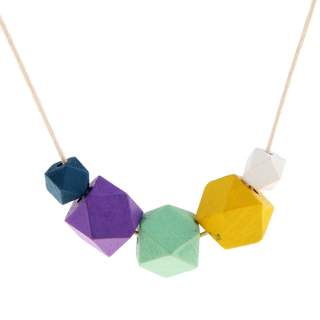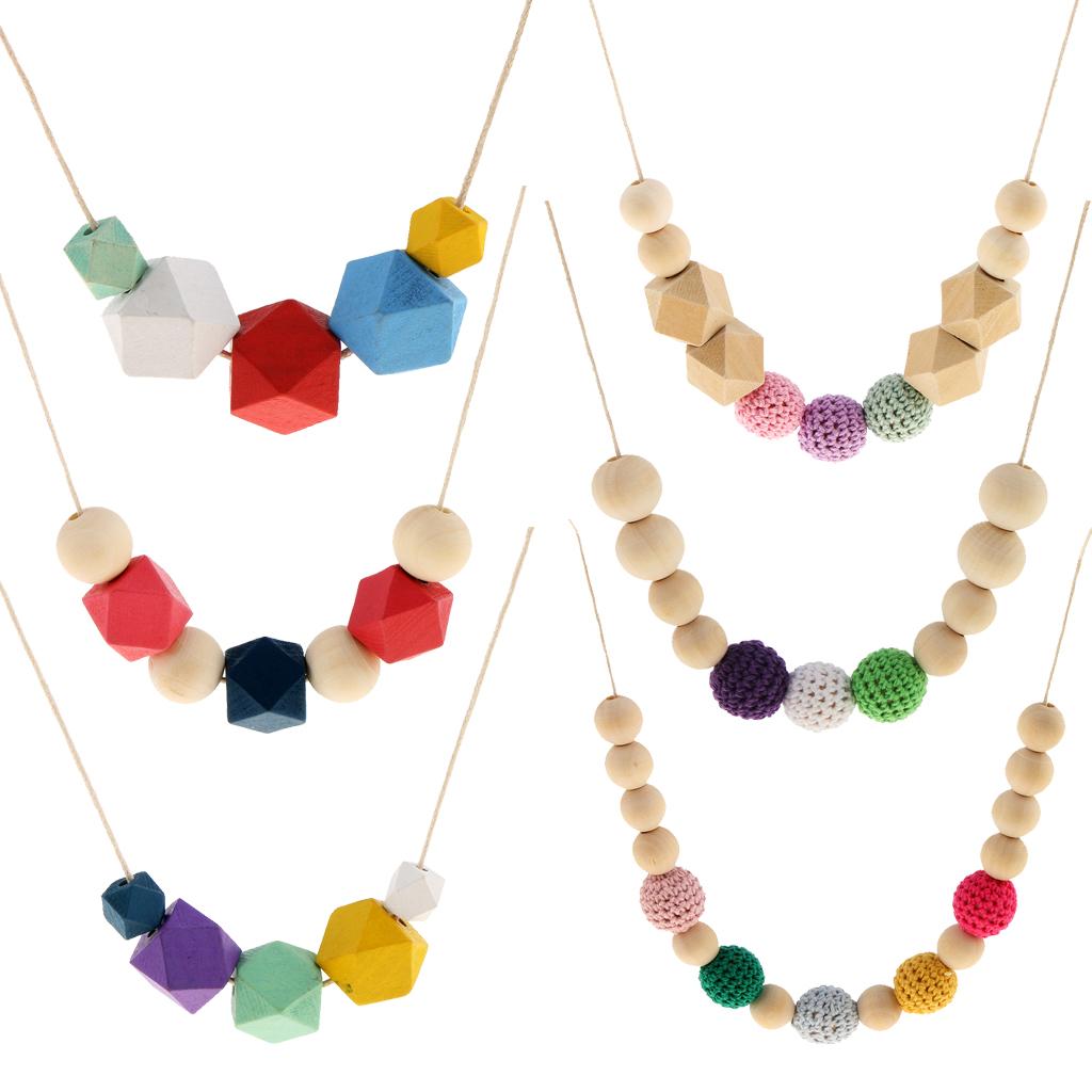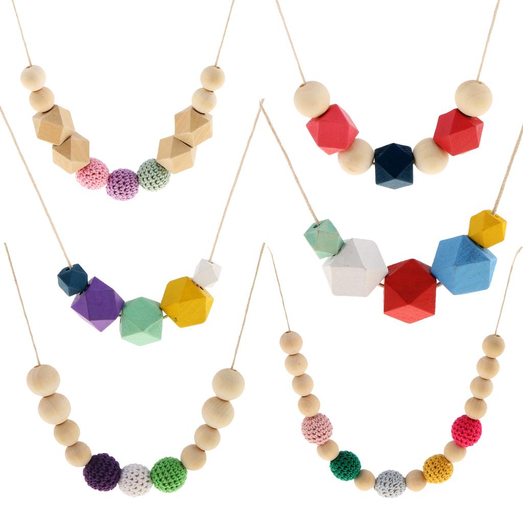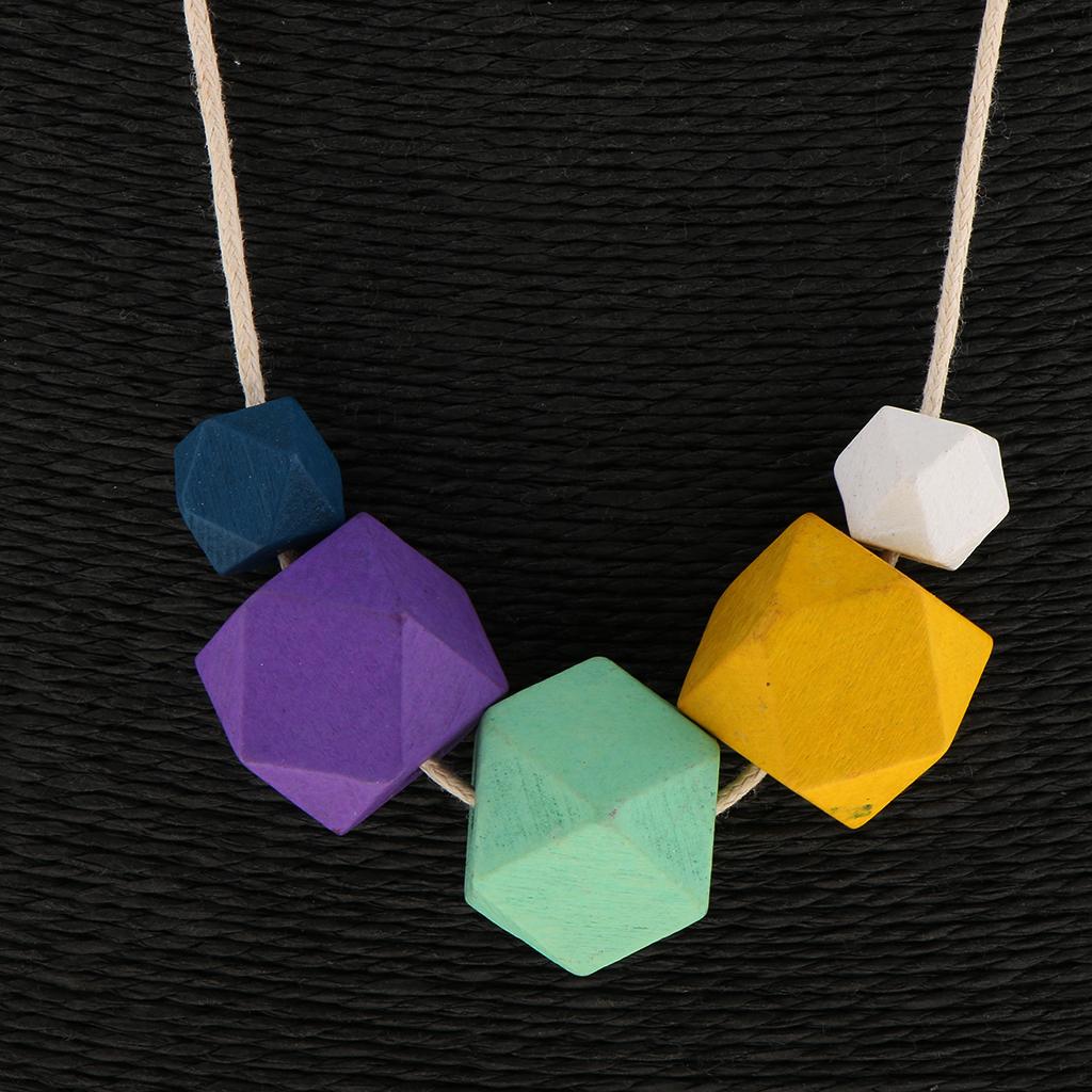 Hexagon Beads Wooden Teething Necklace Baby Chewing Sensory Jewelry Style 6