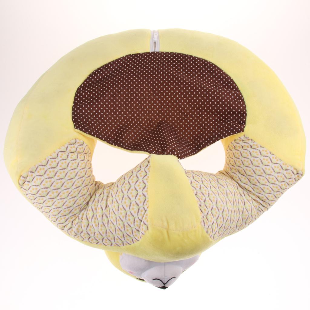 Cartoon animal shape and bright color design for the infants. It helps infants to learn sit up quickly when in it.