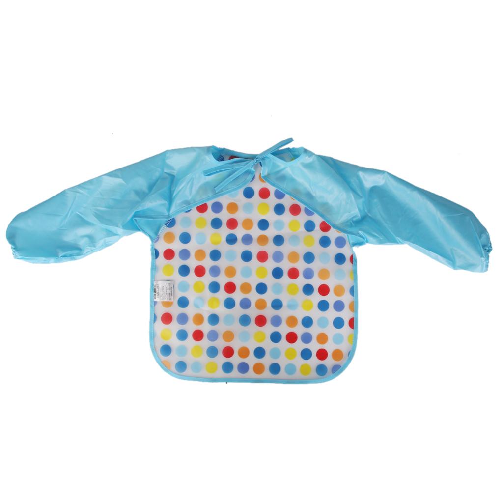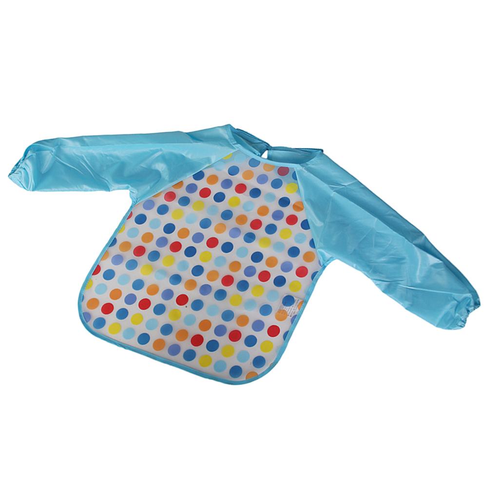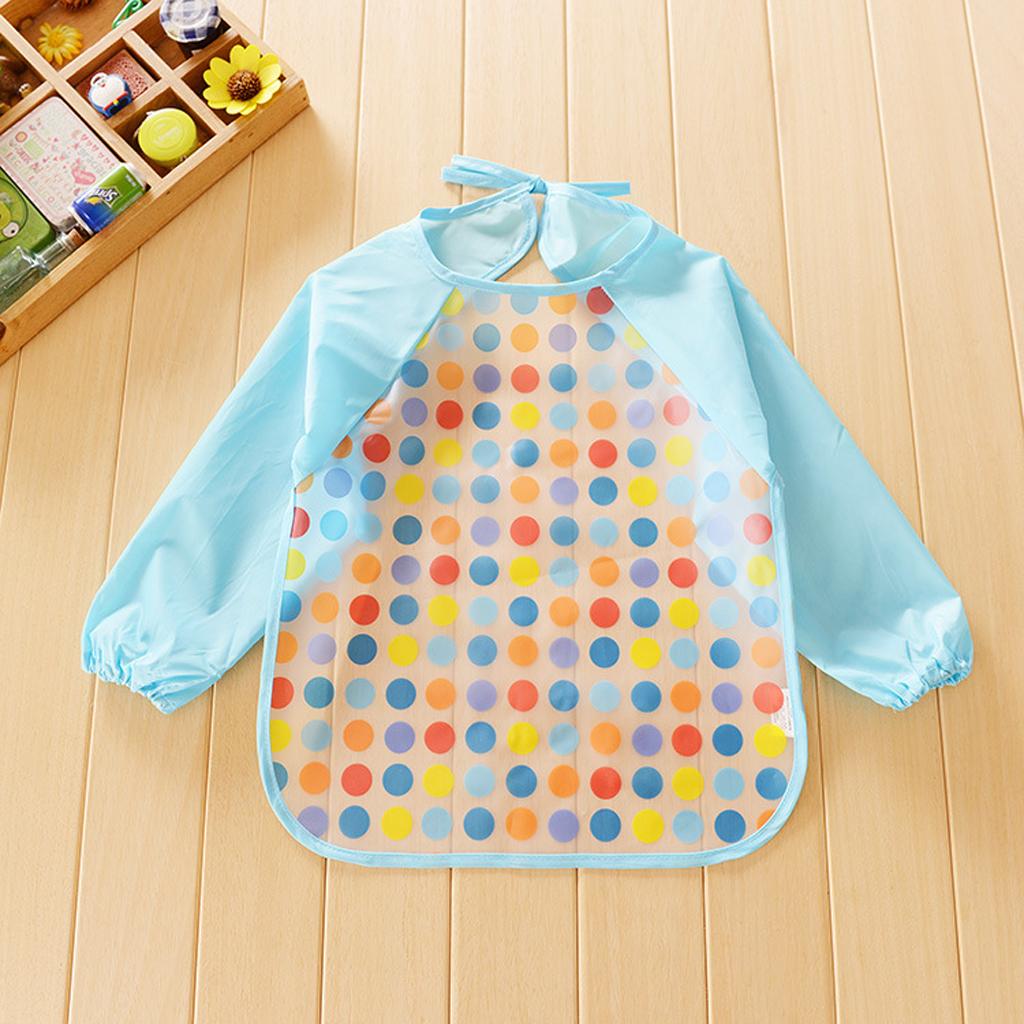 Kids Baby Waterproof Soft Blue Polka Dot Overclothes Feeding Apron