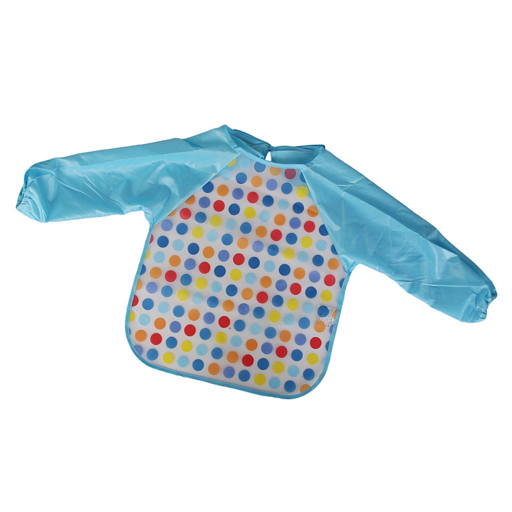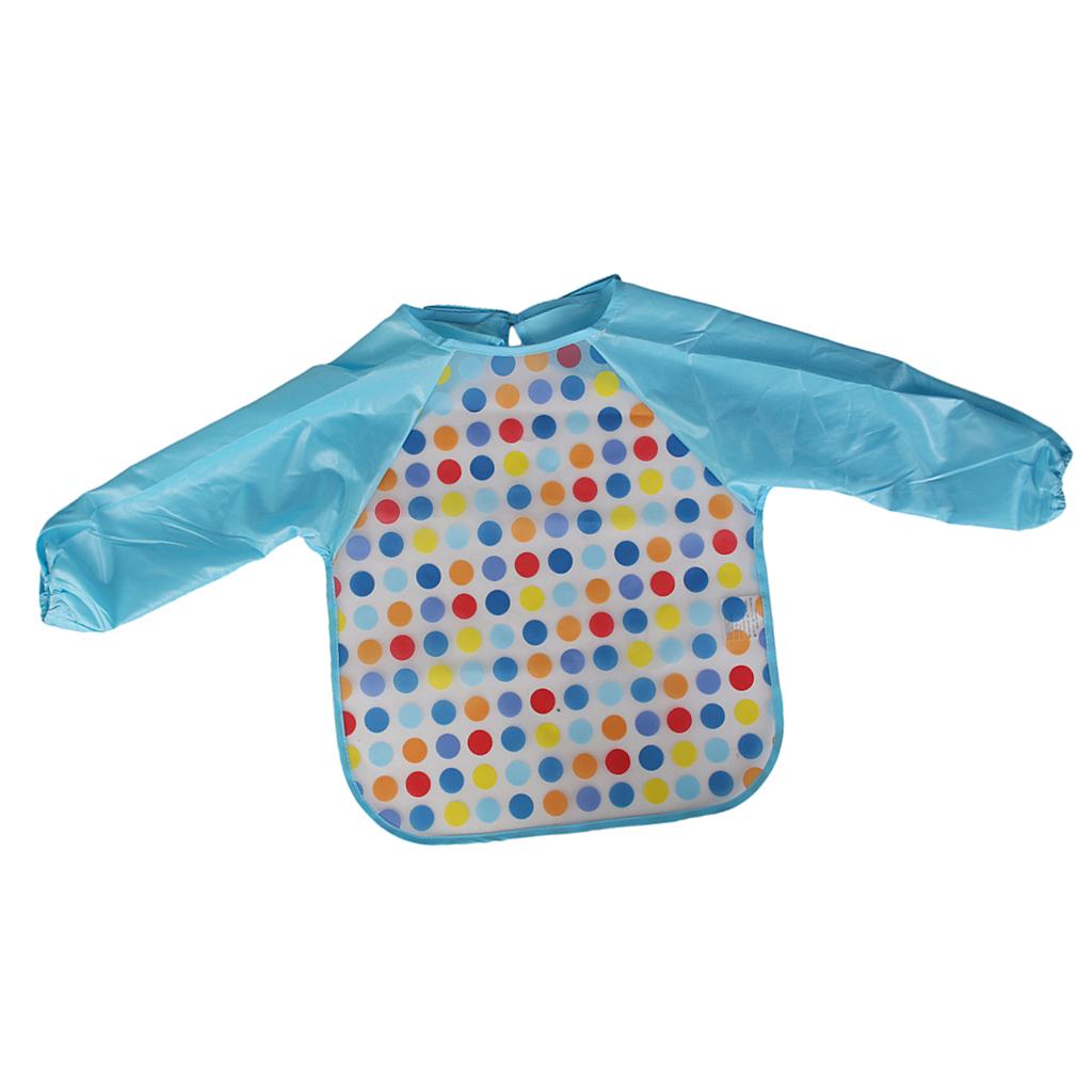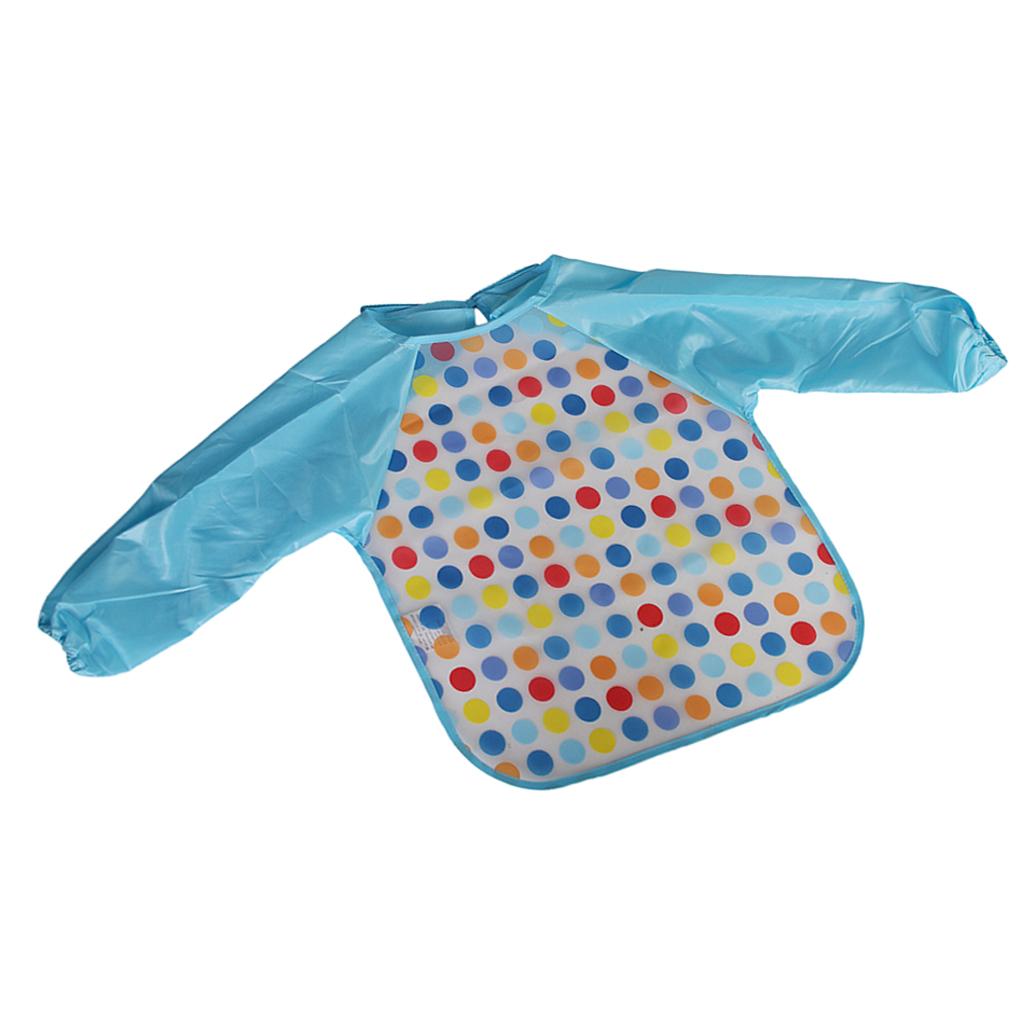 Kids Baby Waterproof Soft Blue Polka Dot Overclothes Feeding Apron
