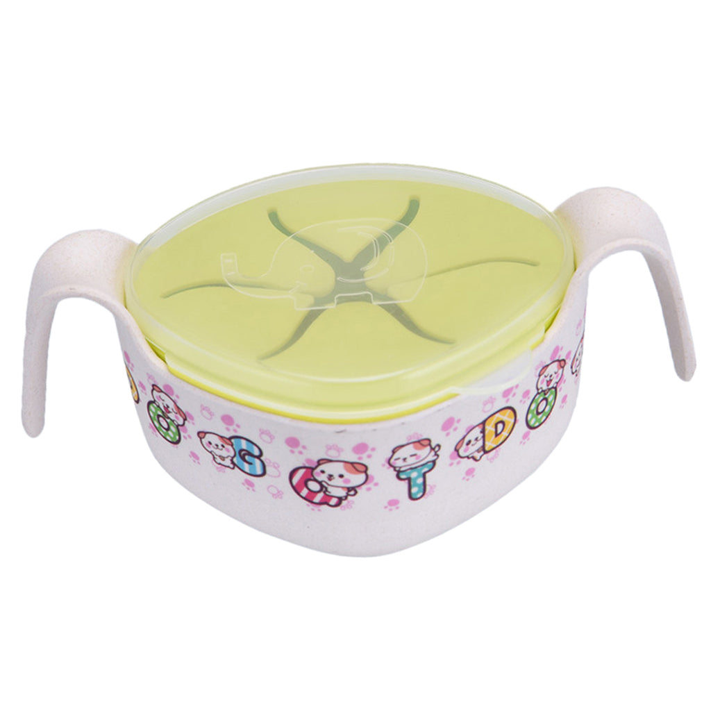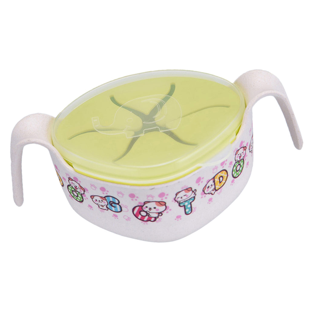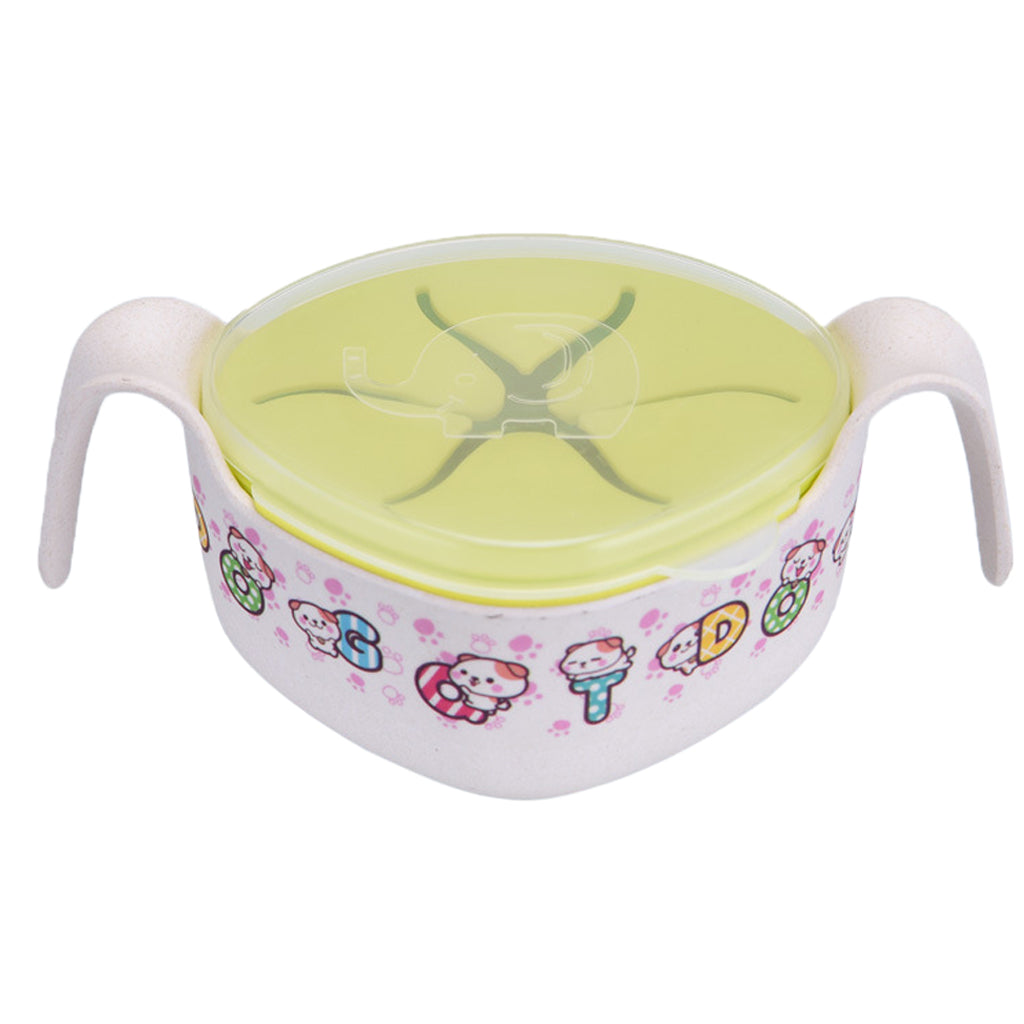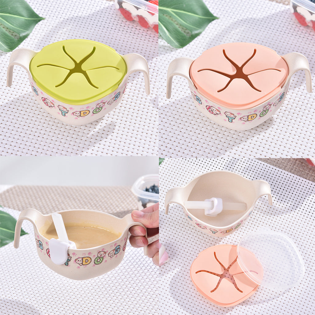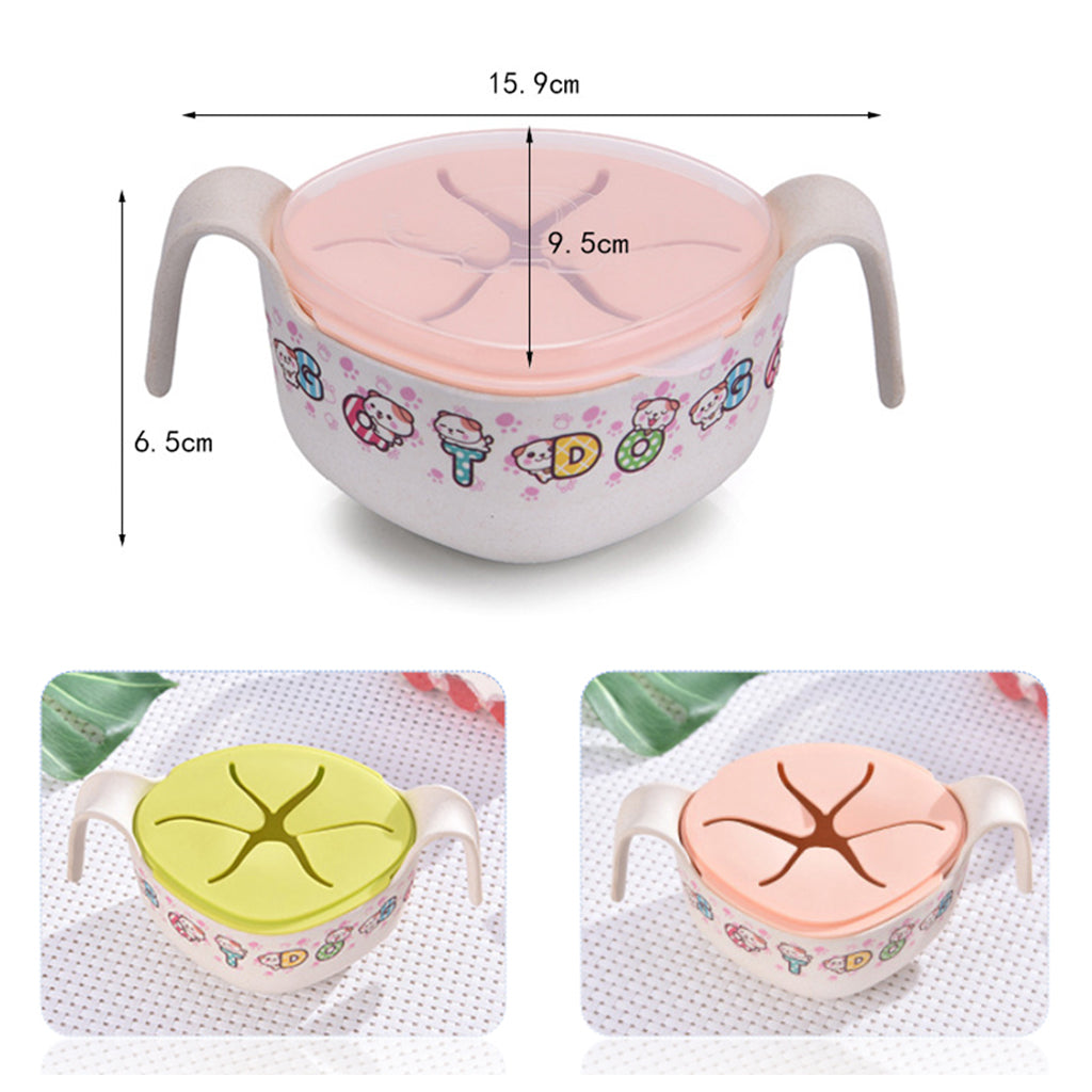 Bowl with inside cover/ straws and Lid and two handle design, can help the baby hold the bowl easily.