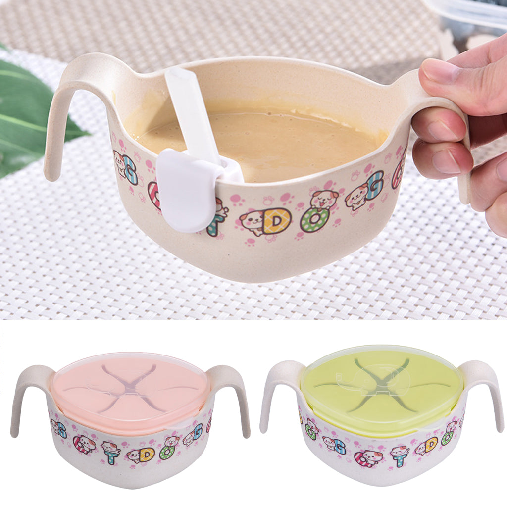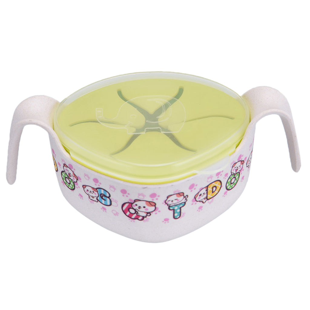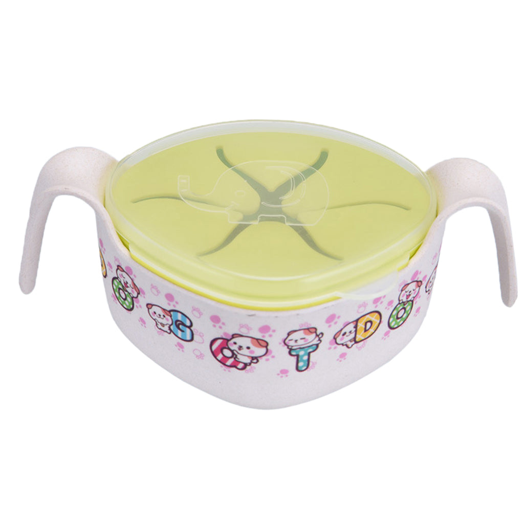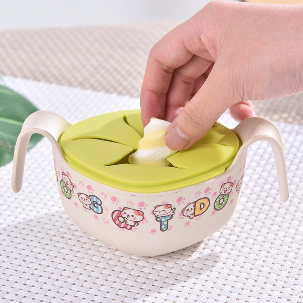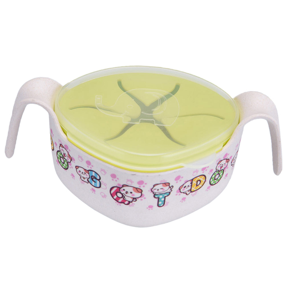 Bowl with inside cover/ straws and Lid and two handle design, can help the baby hold the bowl easily.