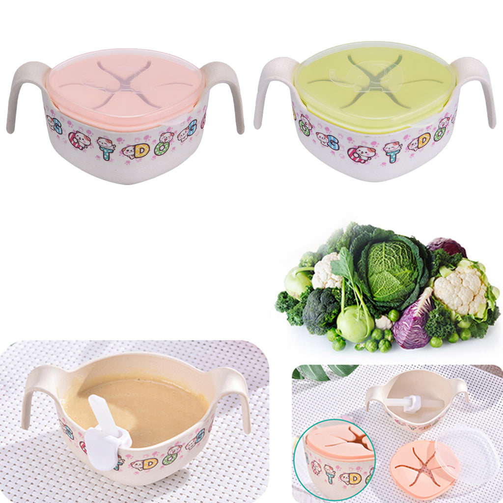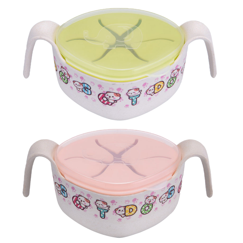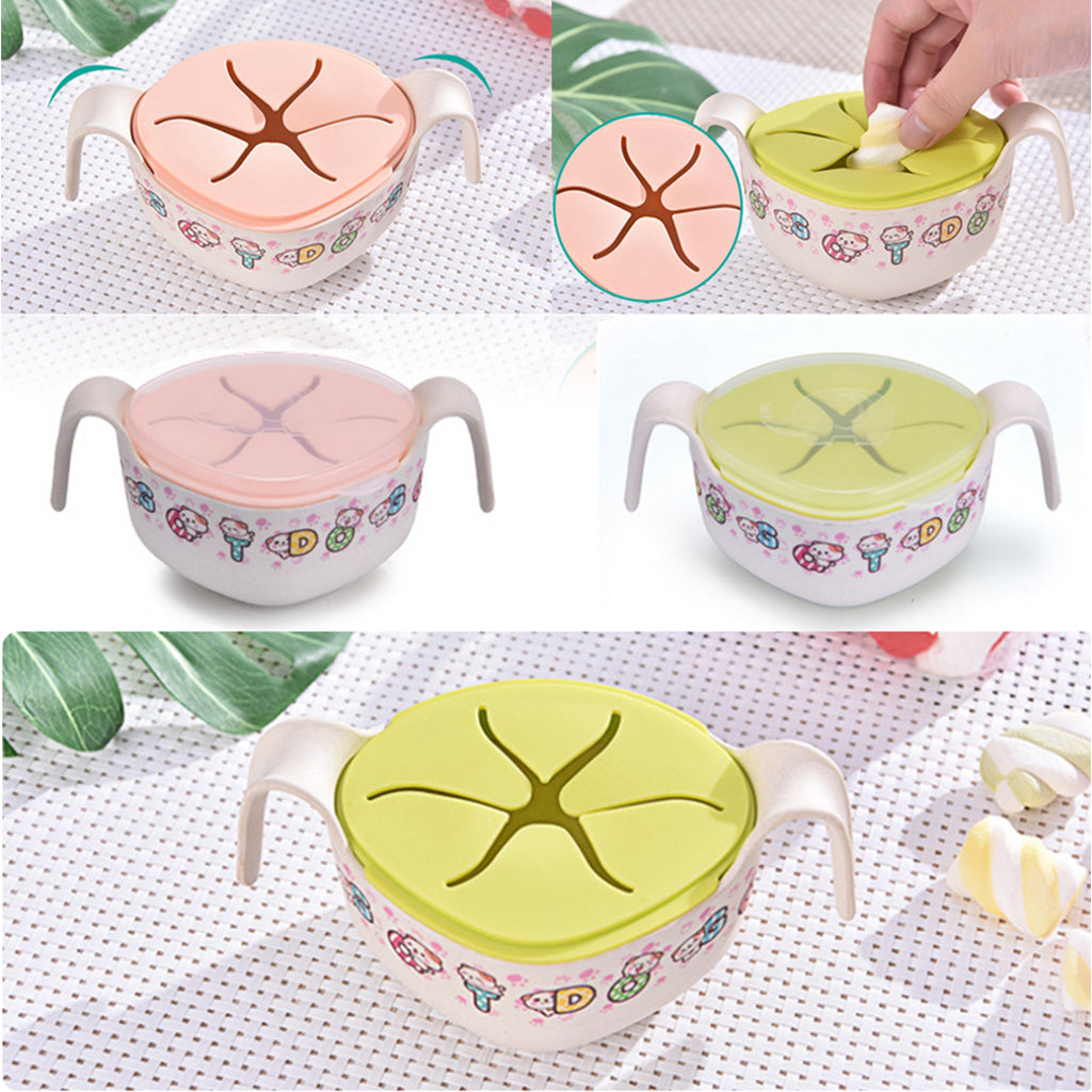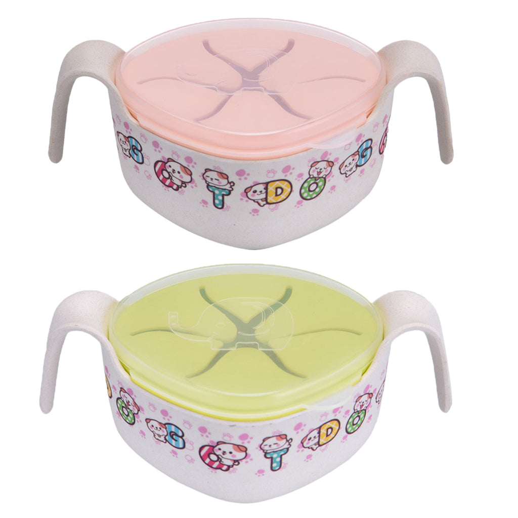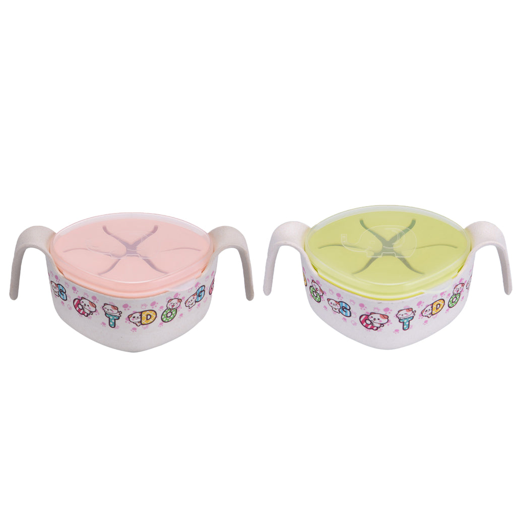 Bowl with inside cover/ straws and Lid and two handle design, can help the baby hold the bowl easily.