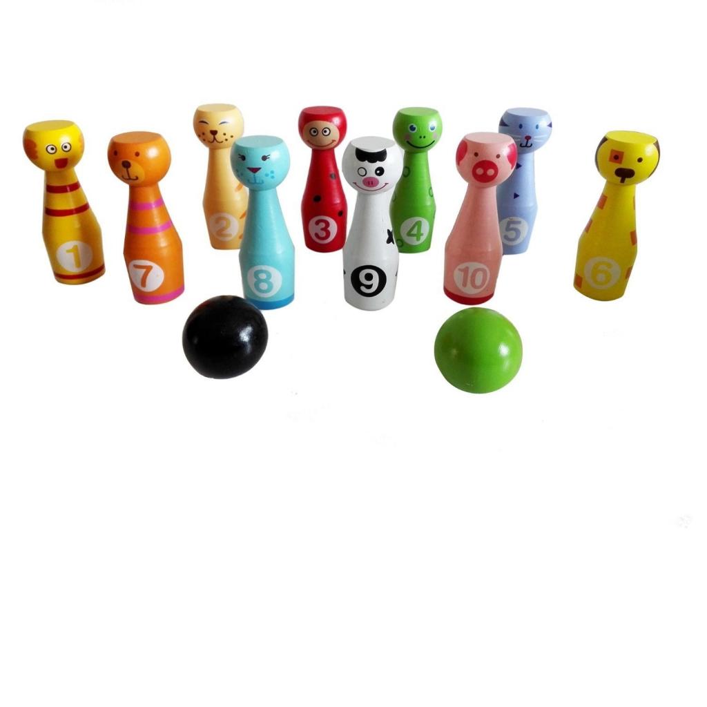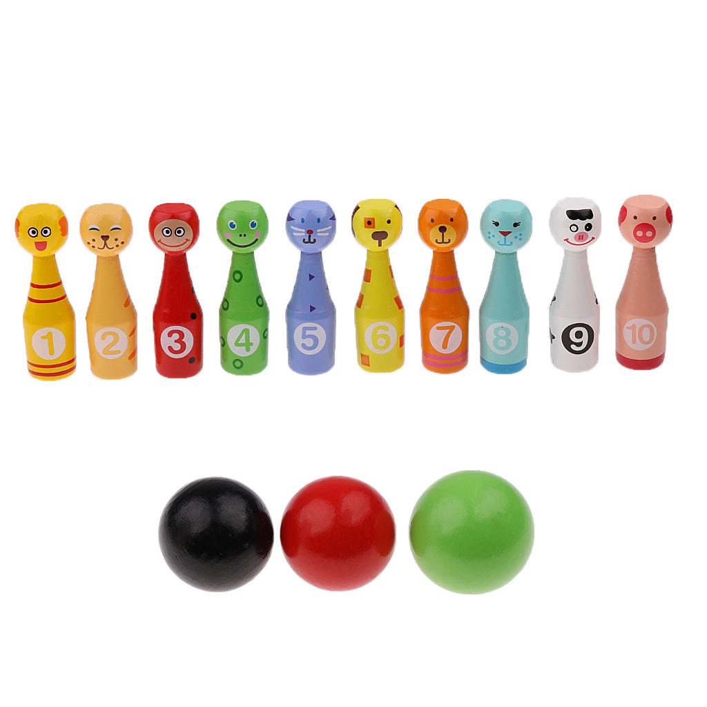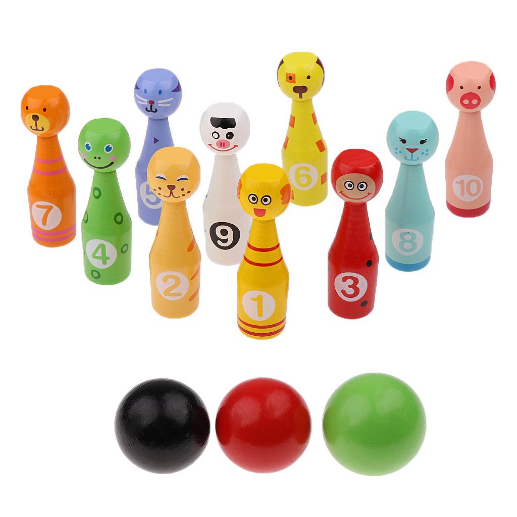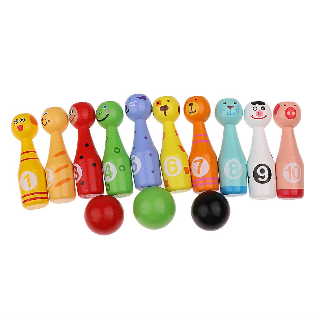 1 Set Wood Bowling(Including 3pcs Balls + 10pcs Cartoon Bowlings)